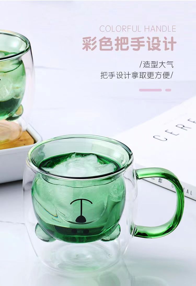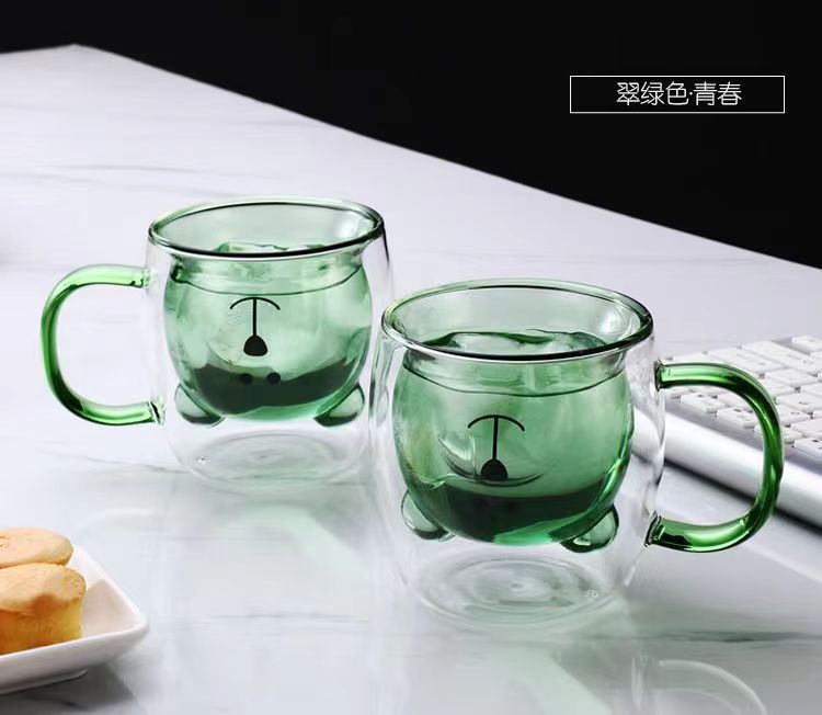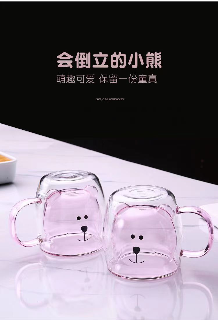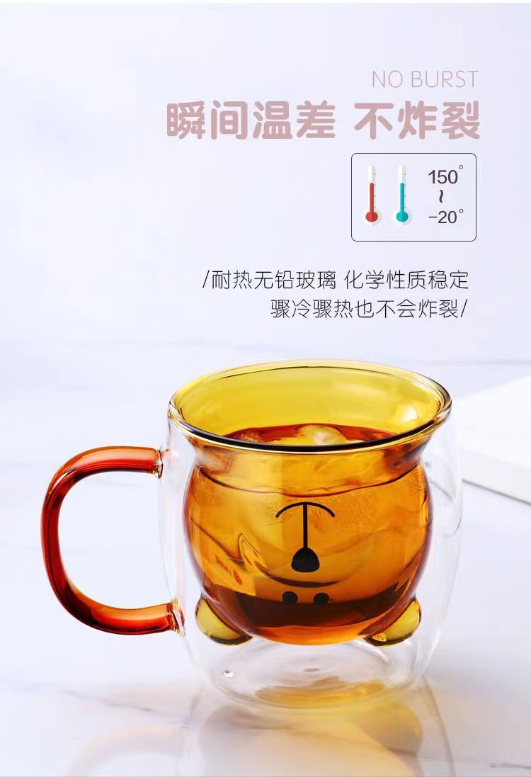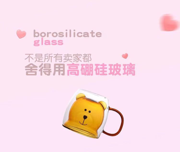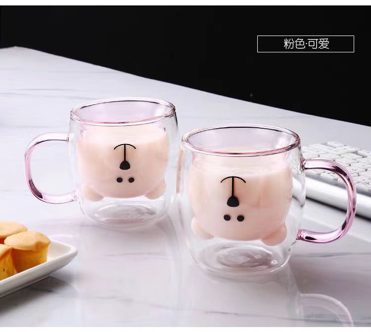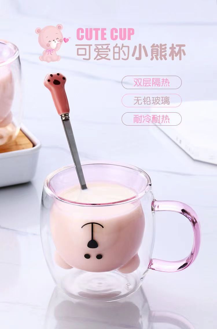 Internet celebridad lindo ins doble capa de vidrio con mango oso taza de café del hogar taza de beber taza de jugo de leche