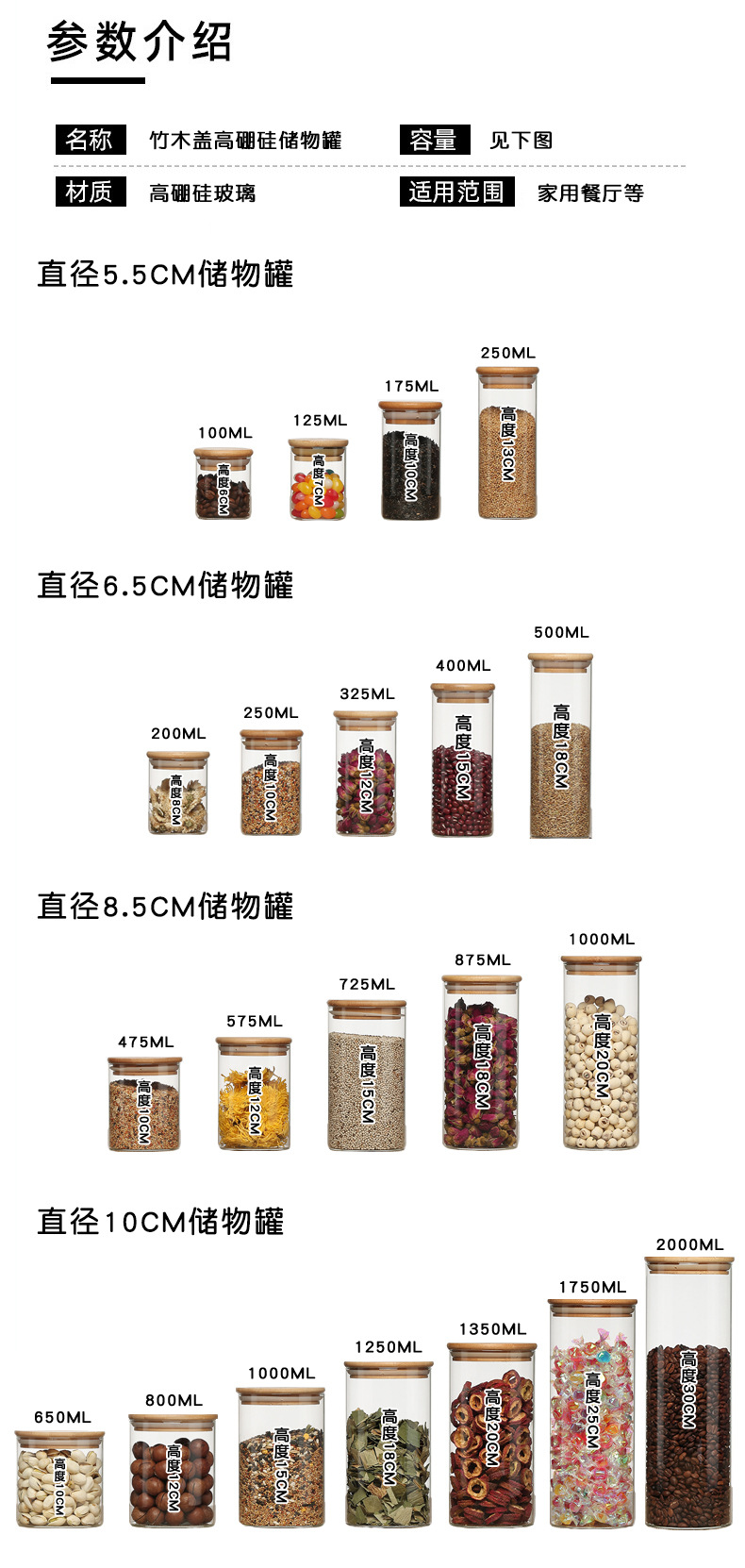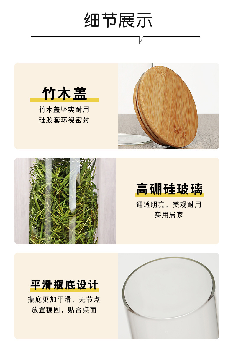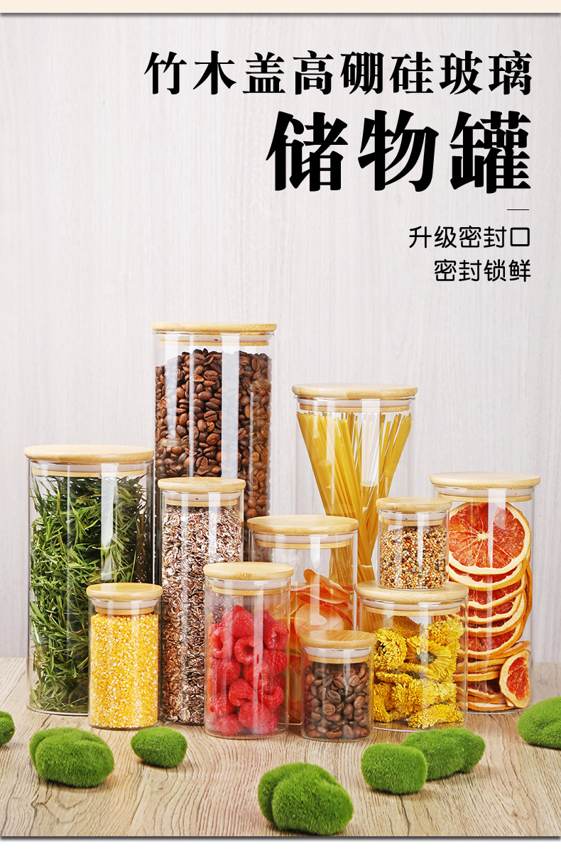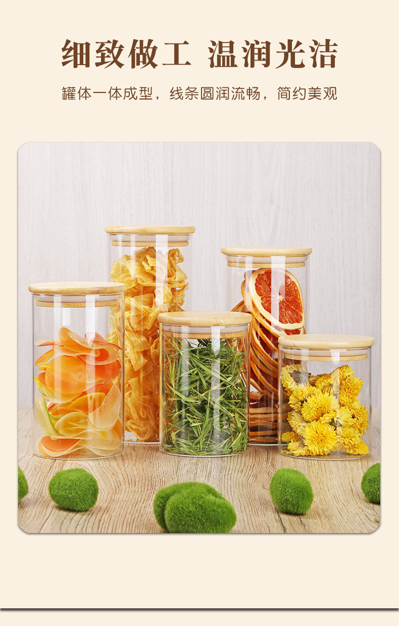 Tanque de almacenamiento con tapa de bambú y madera Tanque de almacenamiento de vidrio Tanque de té sellado Tanque de almacenamiento transparente Tanque de almacenamiento de clasificación de cocina