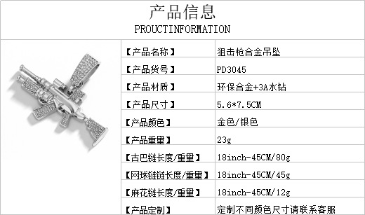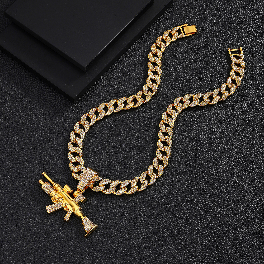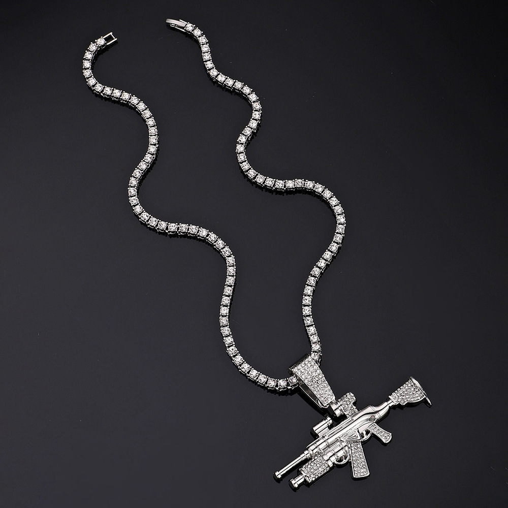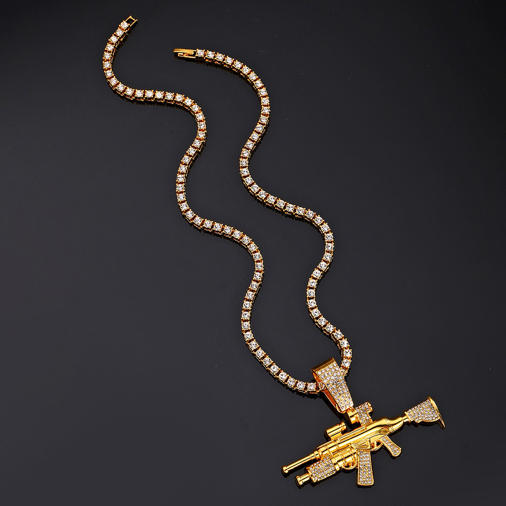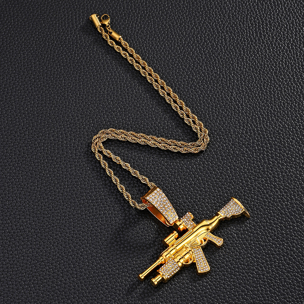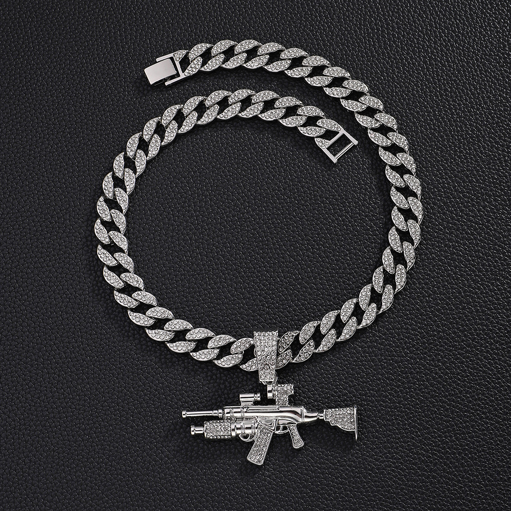 Nuevo estilo transfronterizo joyería de pistola de diamantes simulación de aleación modelo de arma AK joyería de diamantes flash collar de hombre de hip-hop