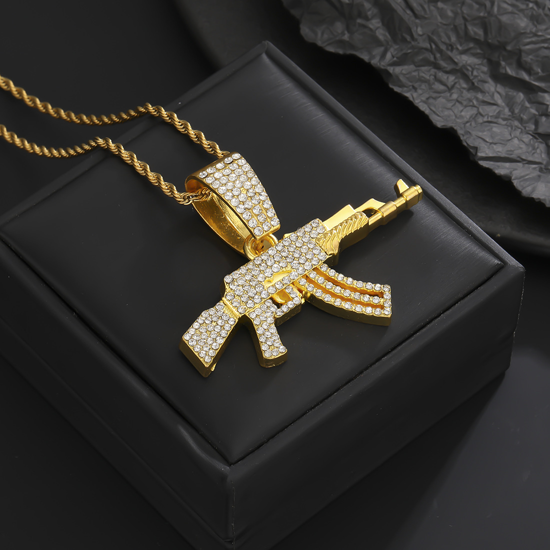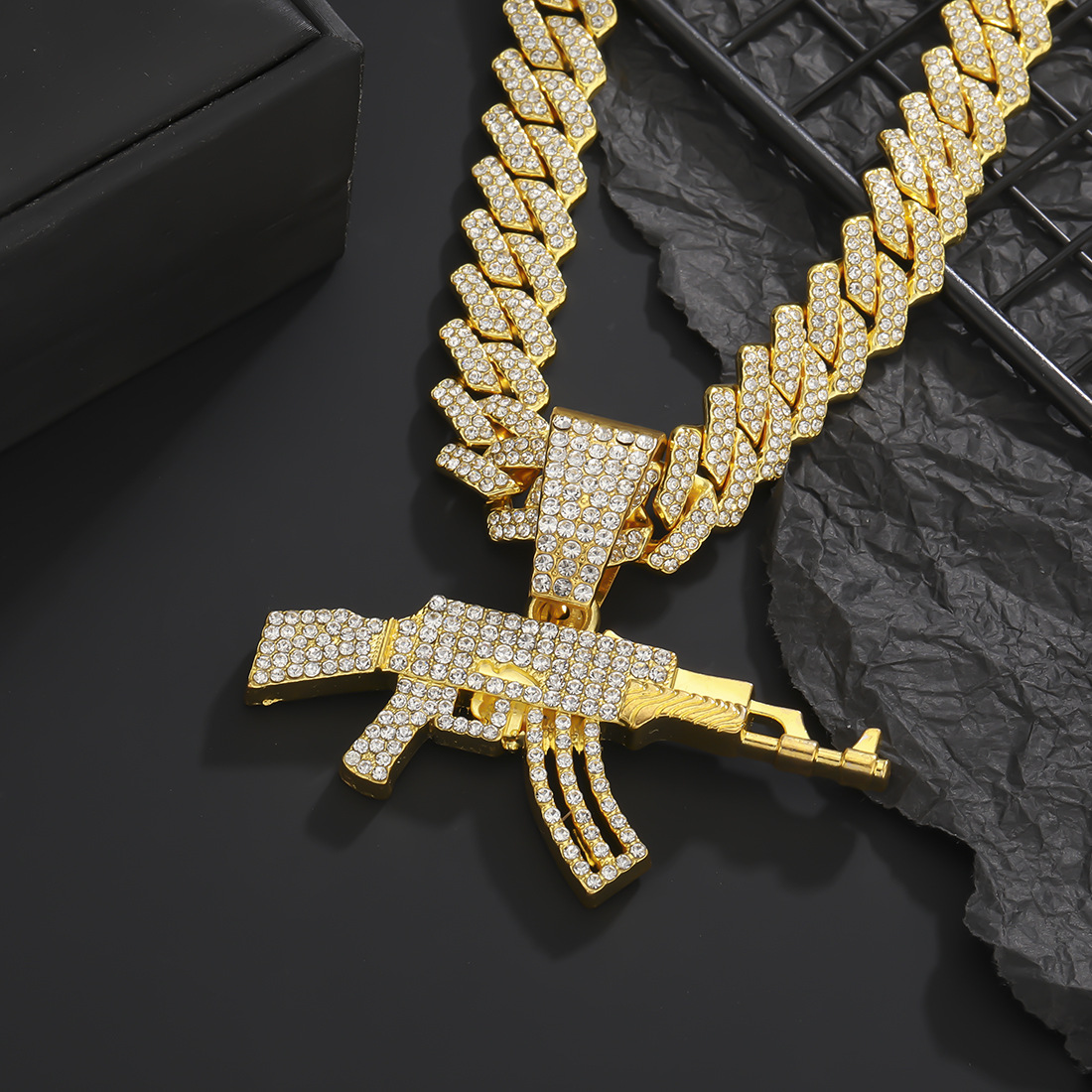 Cool y exagerado punk hip-hop hip-hop en Europa y América con collar colgante de pistola