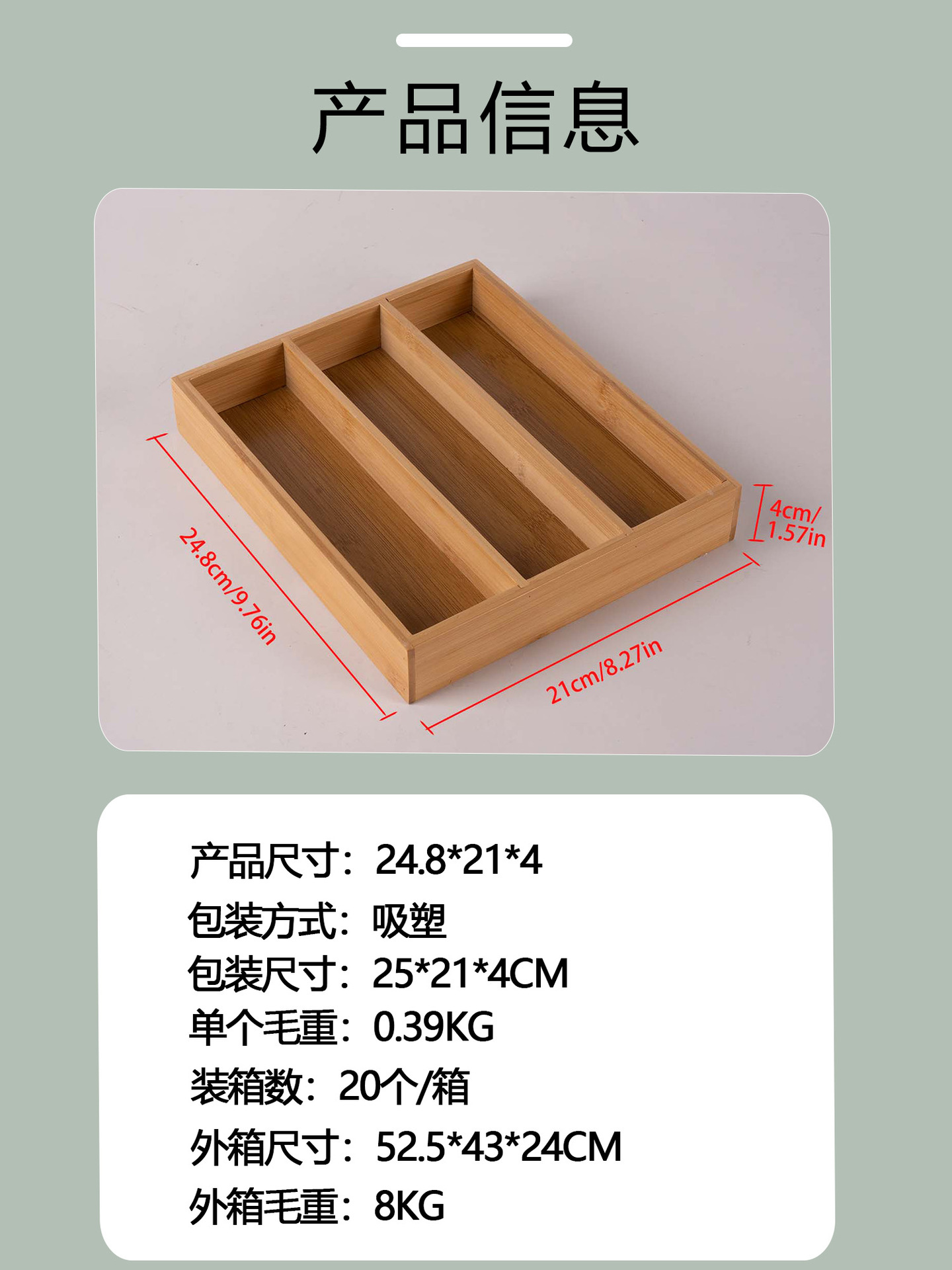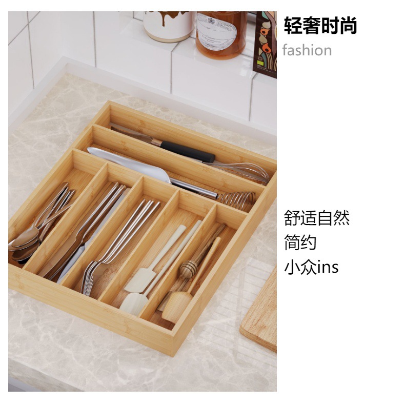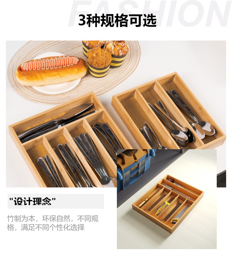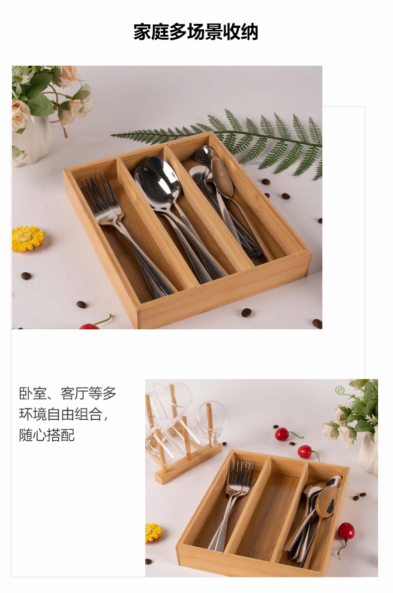 Cuchillos y tenedores de bambú, palillos, caja de almacenamiento por formato, caja de almacenamiento, estante de cocina, cajón, caja de almacenamiento de herramientas de comida occidental