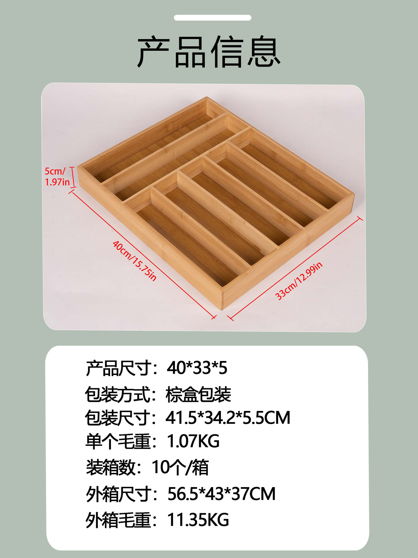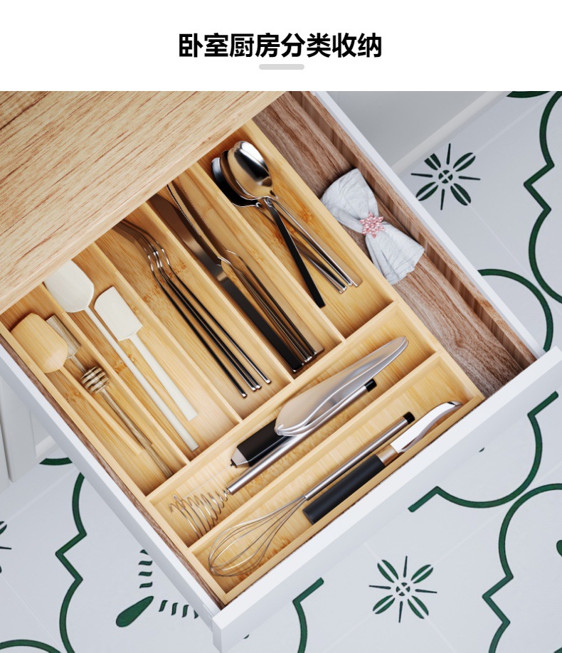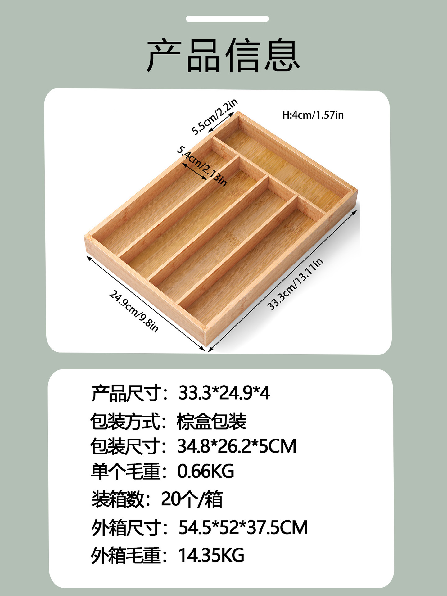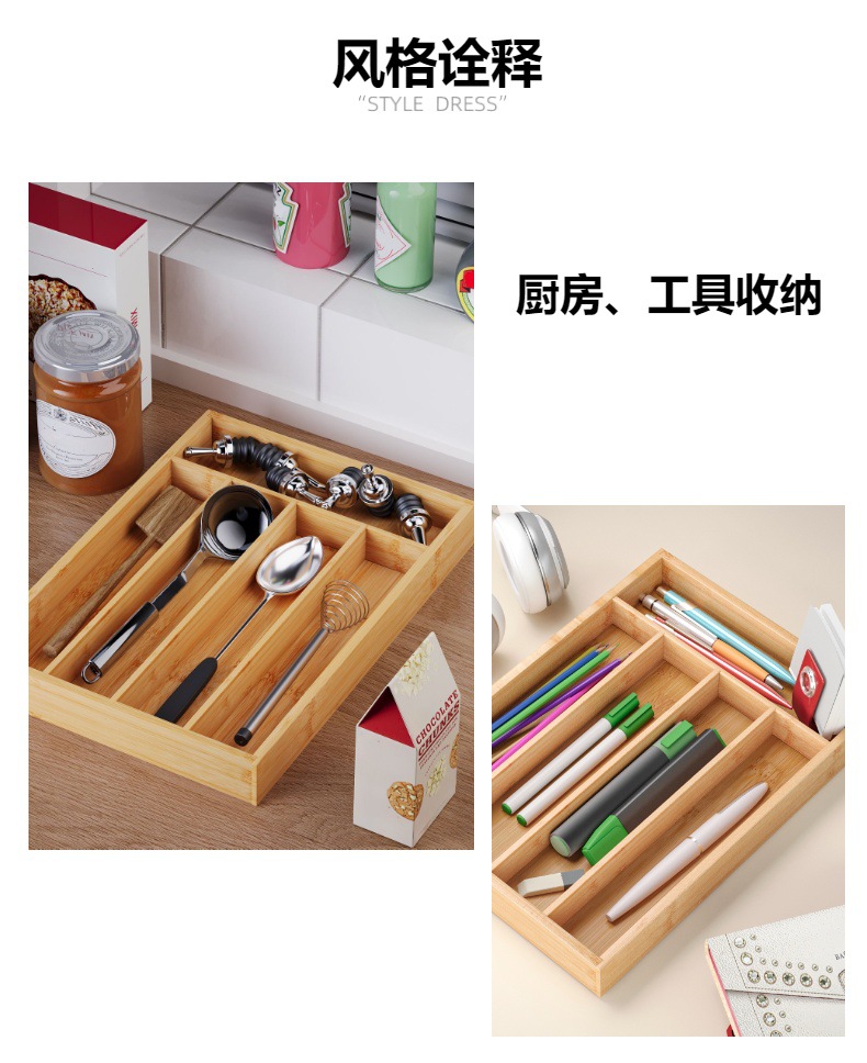 Cuchillos y tenedores de bambú, palillos, caja de almacenamiento por formato, caja de almacenamiento, estante de cocina, cajón, caja de almacenamiento de herramientas de comida occidental