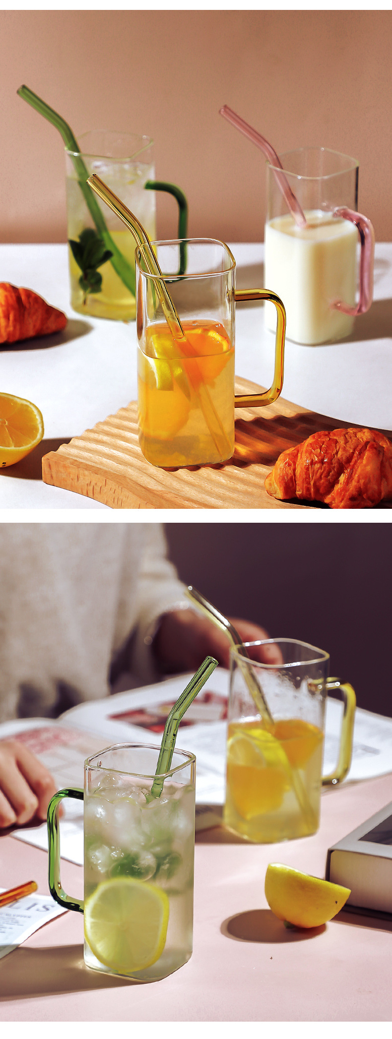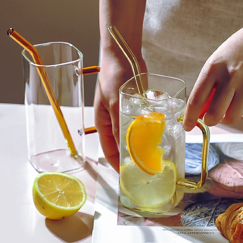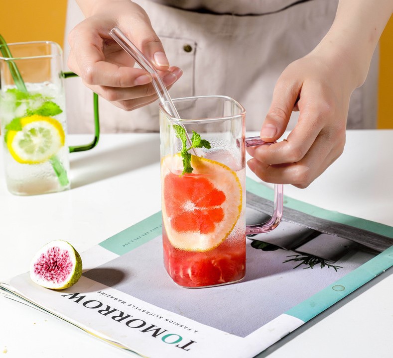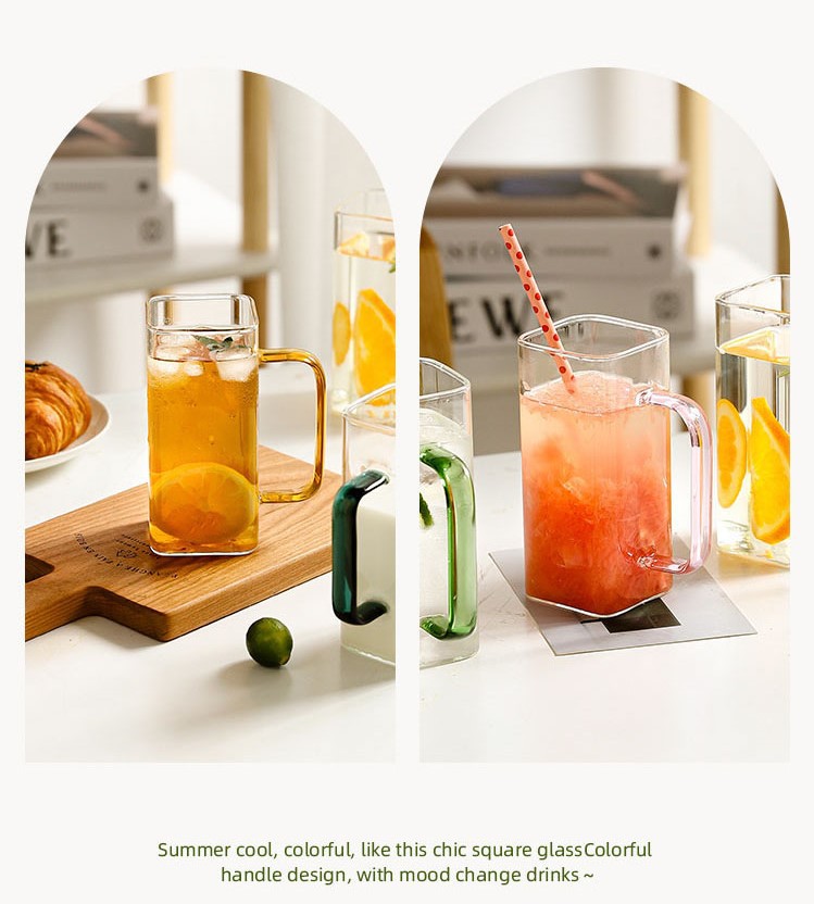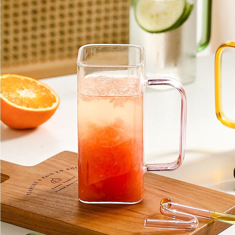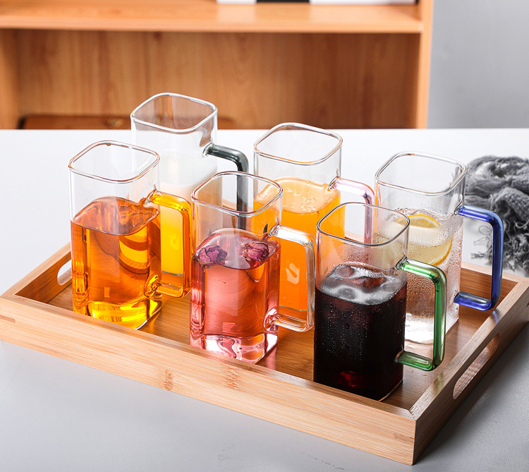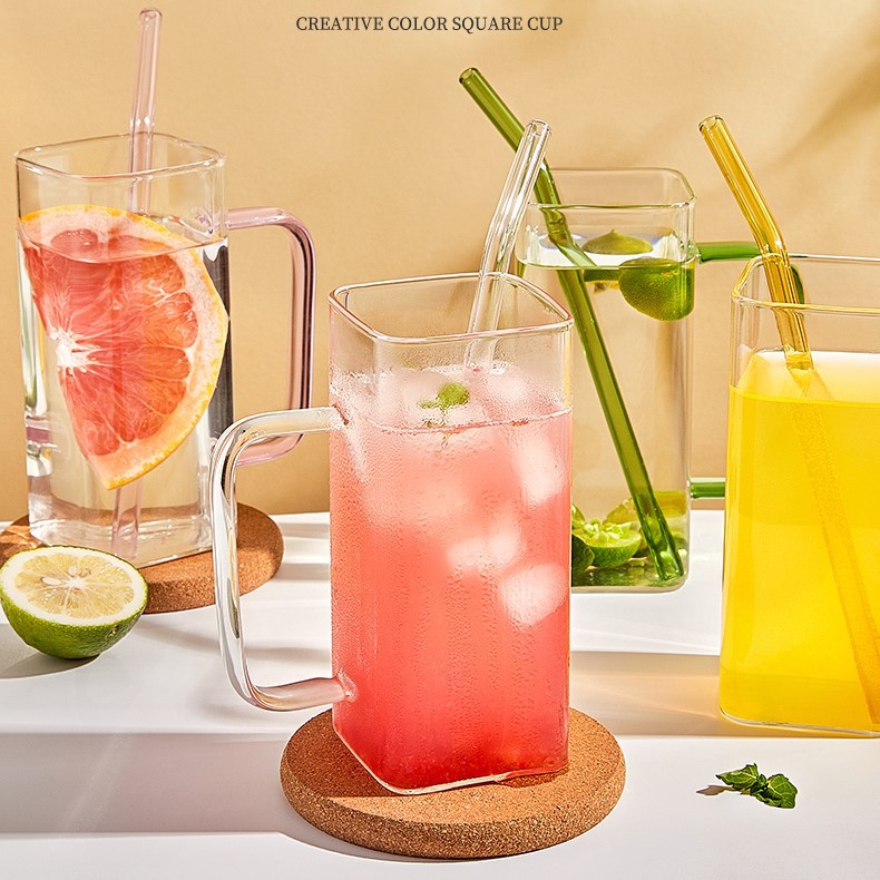 Vidrio creativo resistente a altas temperaturas taza de paja de vidrio cuadrado transparente con tapa de bambú de alto aspecto celebridad de Internet taza de agua taza de bebida