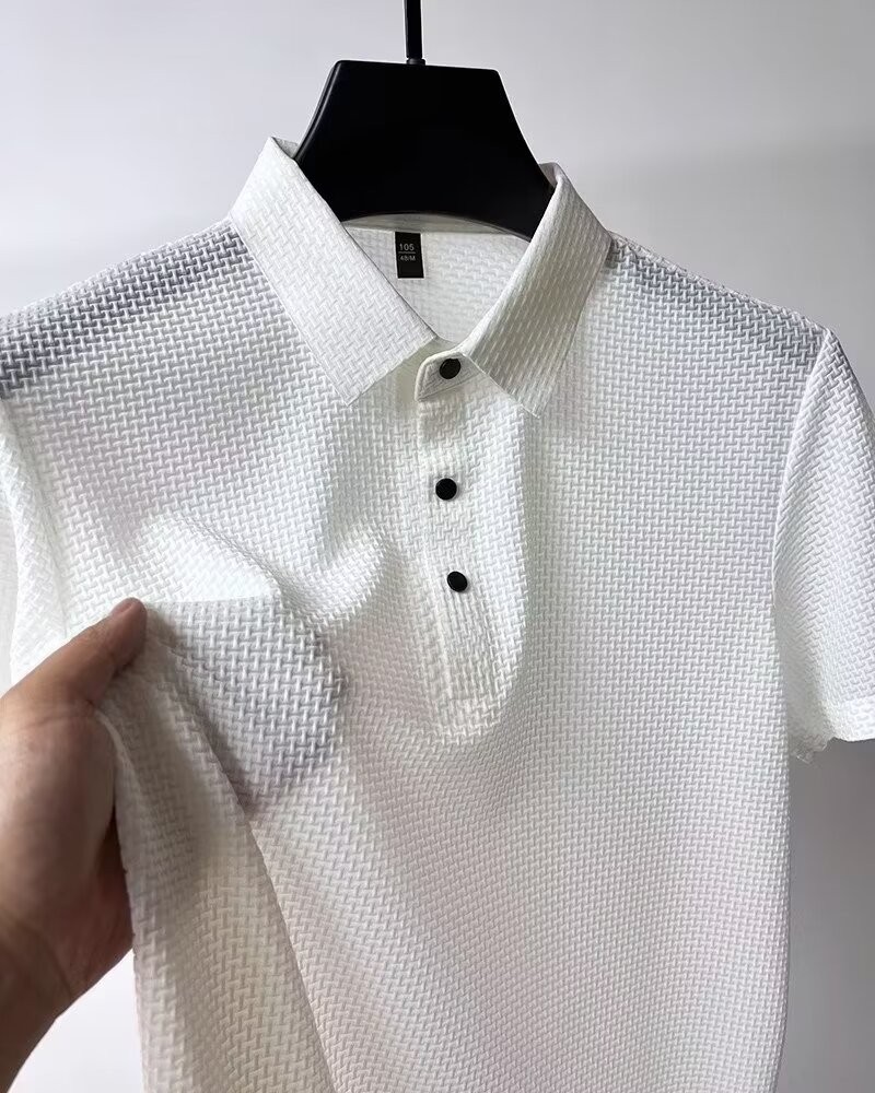 Venta directa de fábrica de malla de verano seda de hielo camiseta de manga corta cuello de camisa de hombre fresco barato transpirable polo media manga