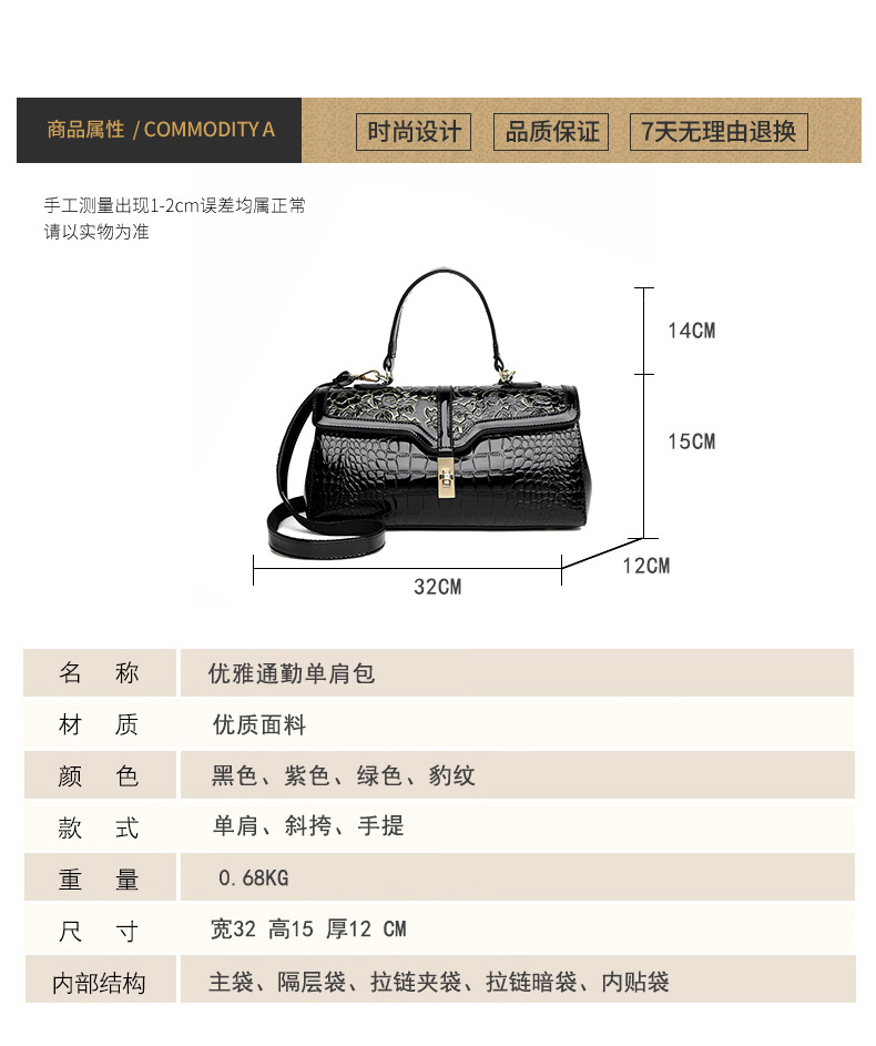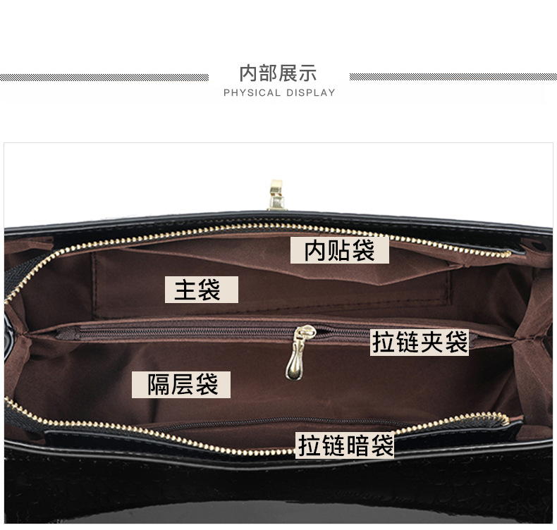 Bolso de las mujeres de gran capacidad de cocodrilo patrón bolso de mano de moda europea y americana retro bolso de hombro de sentido alto bolsa de mensajero