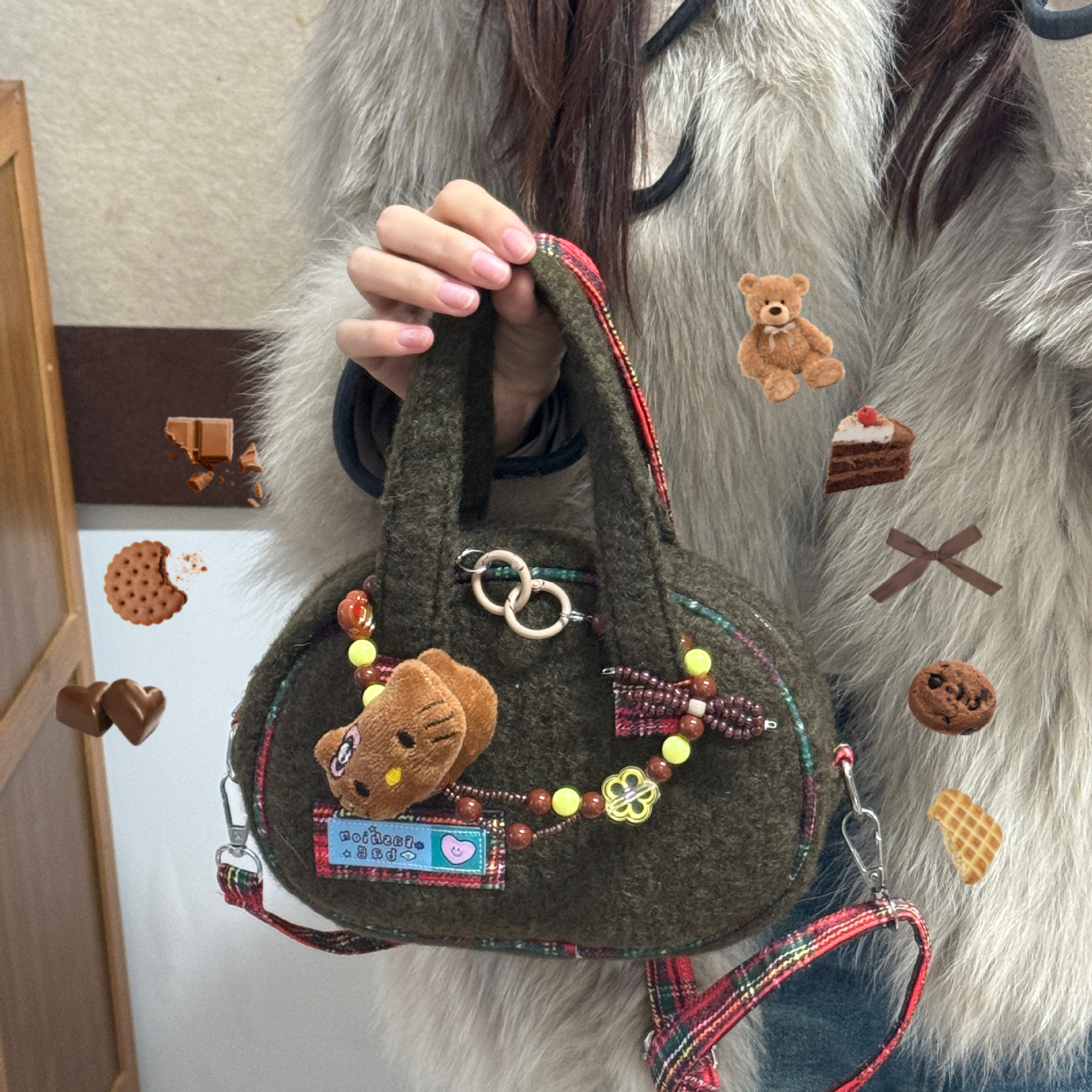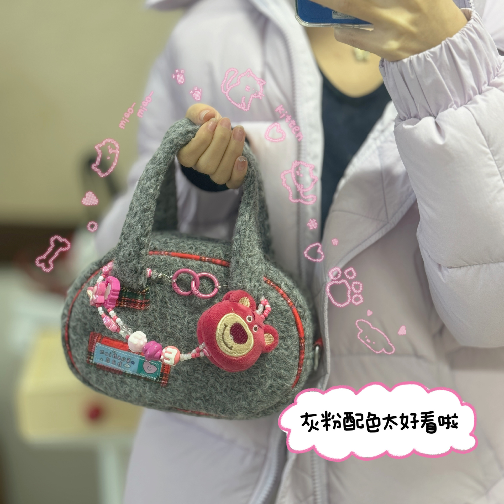 La versión coreana de la niña de invierno 2024 nuevo bolso de lana, bolso de hombro de lana de estilo extranjero.