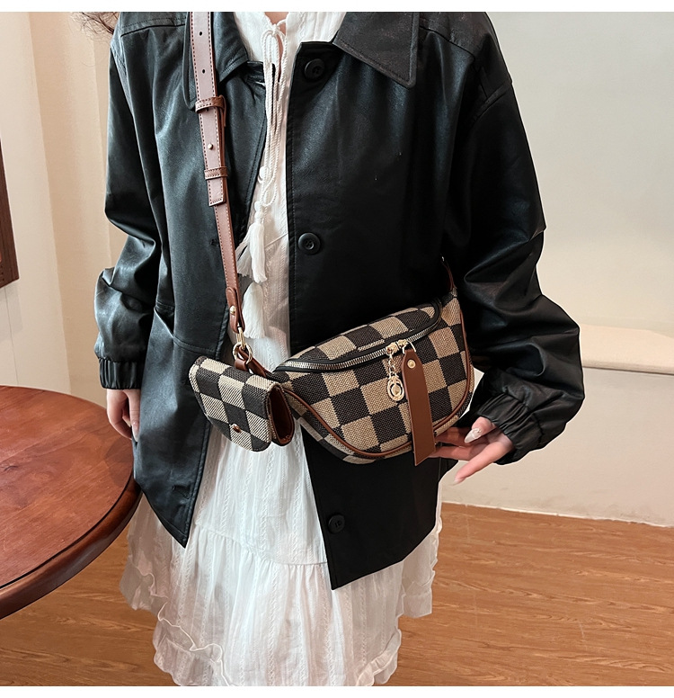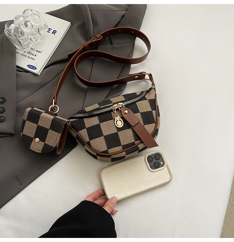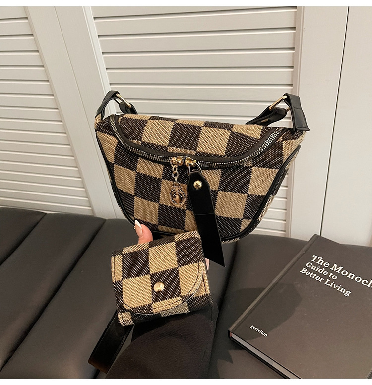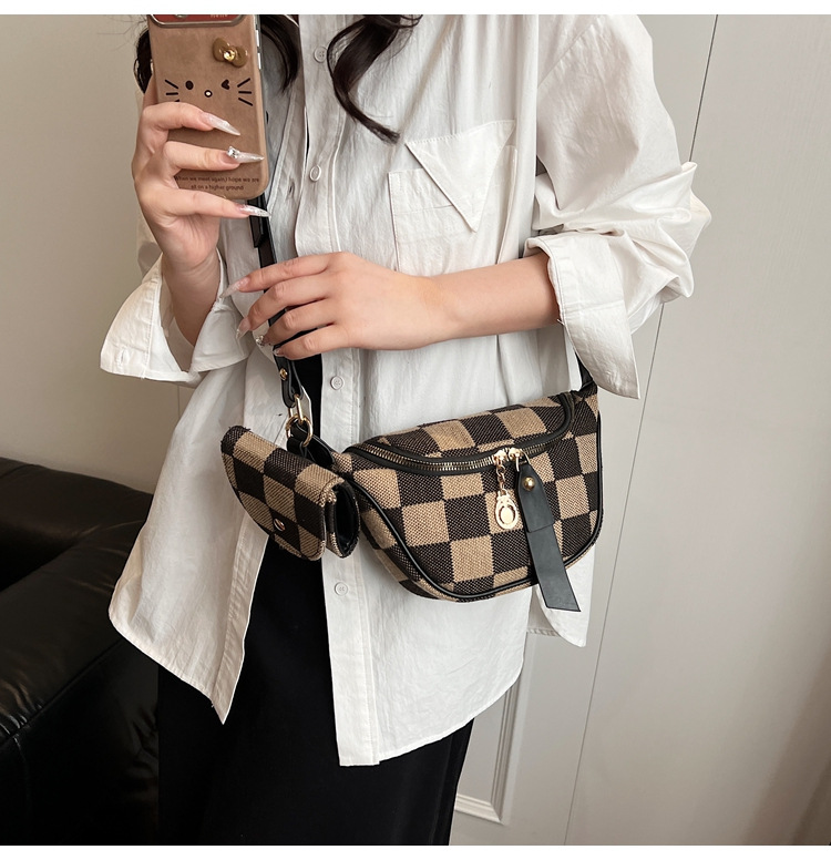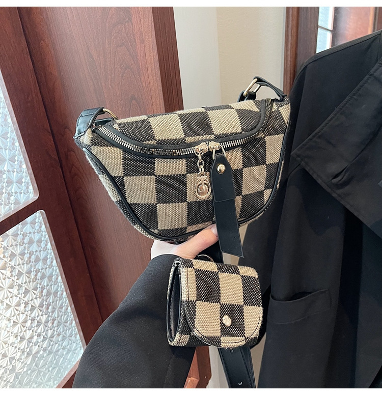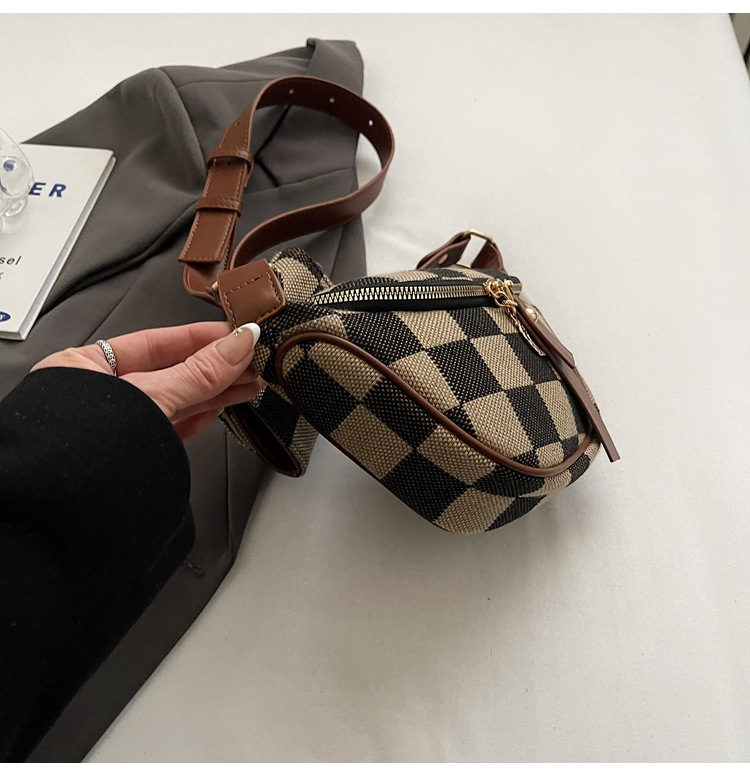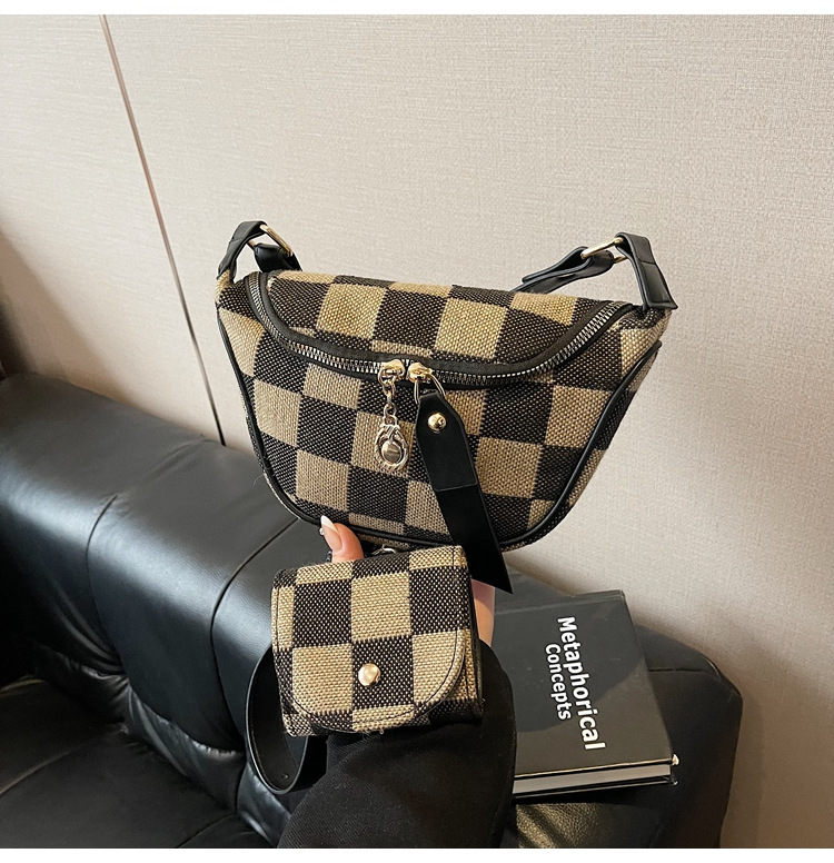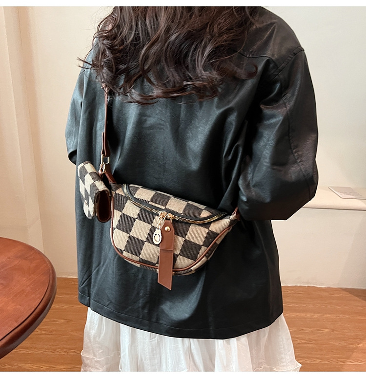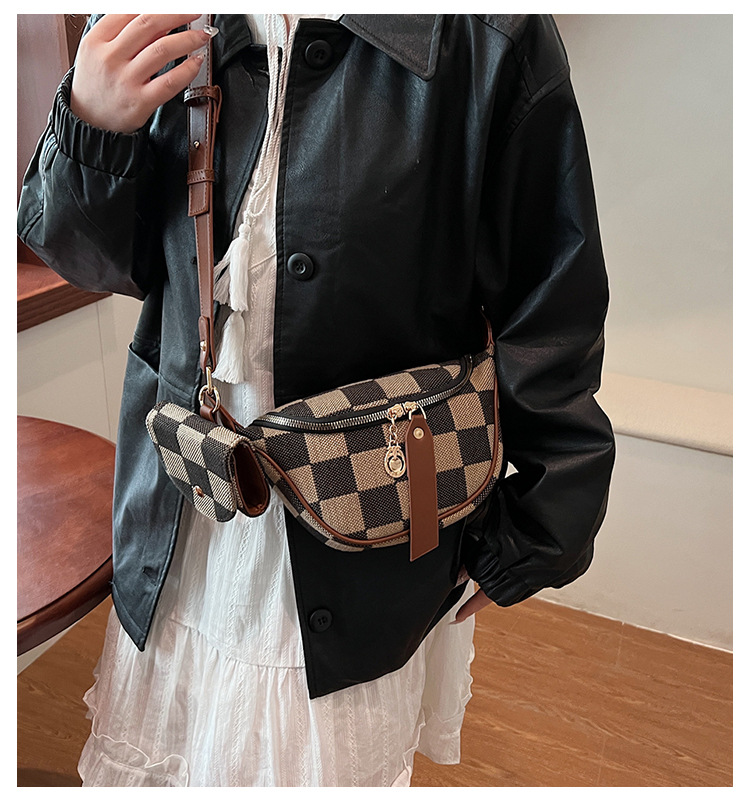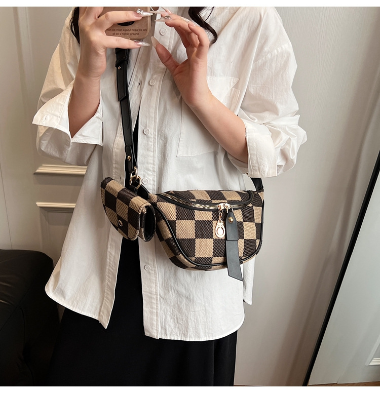 Ventas transfronterizas en caliente de moda versátil para viajar con tablero de ajedrez tela pequeña bolsa de auriculares bolso de pecho bolso de cintura 2 en 1