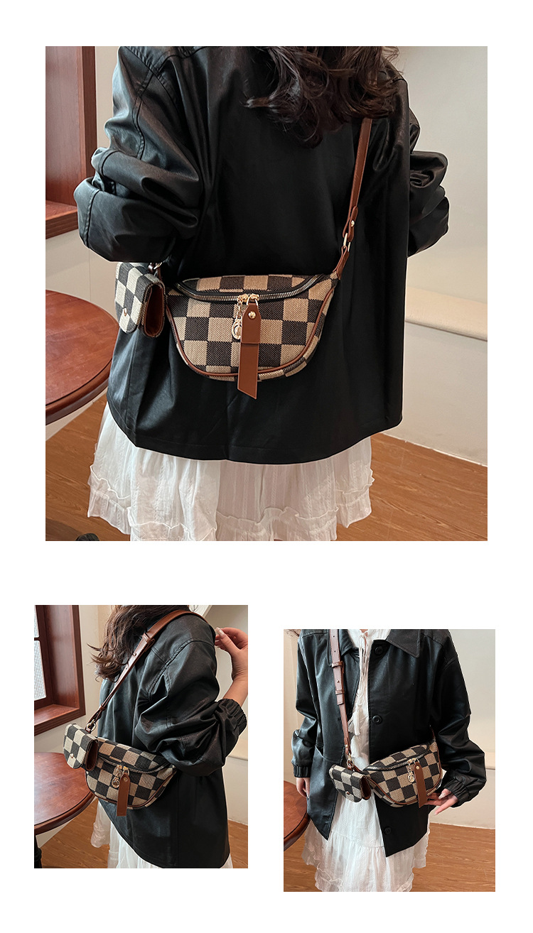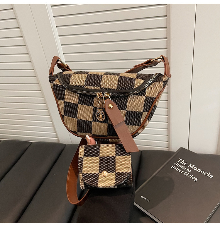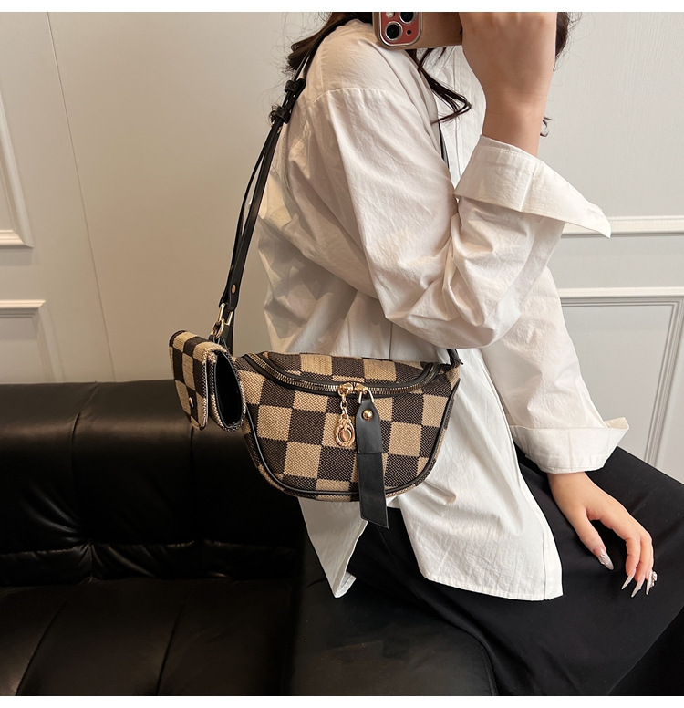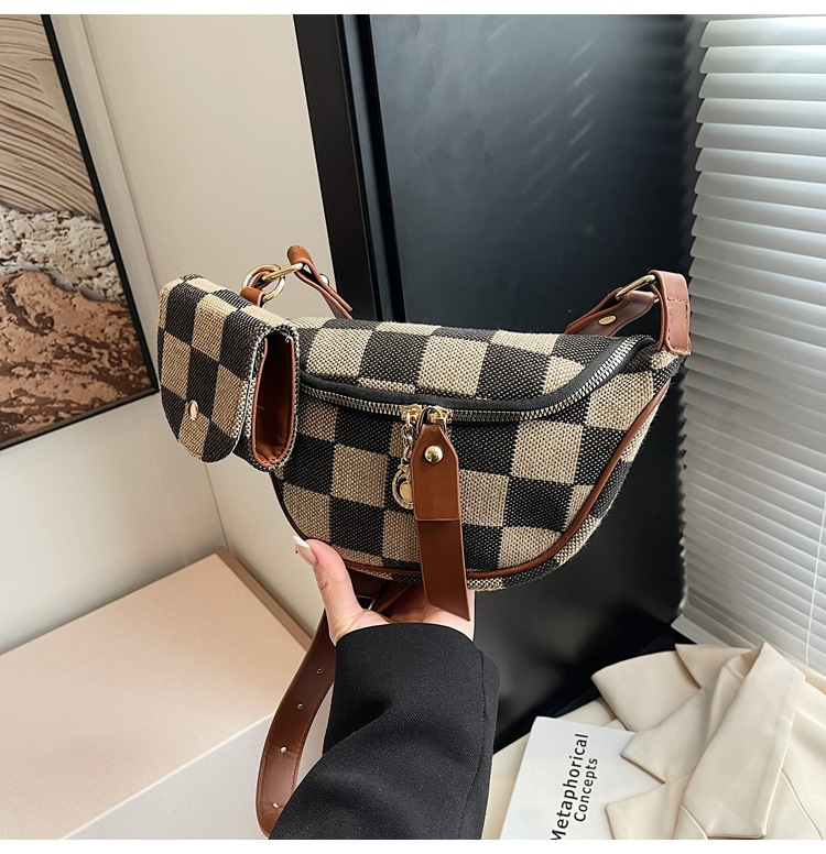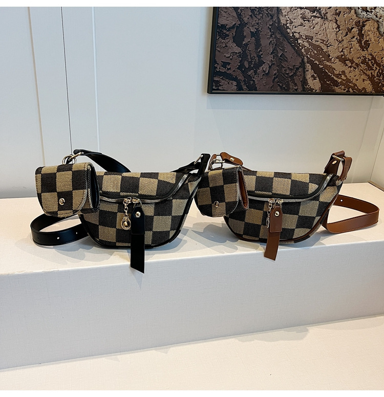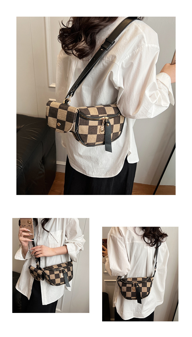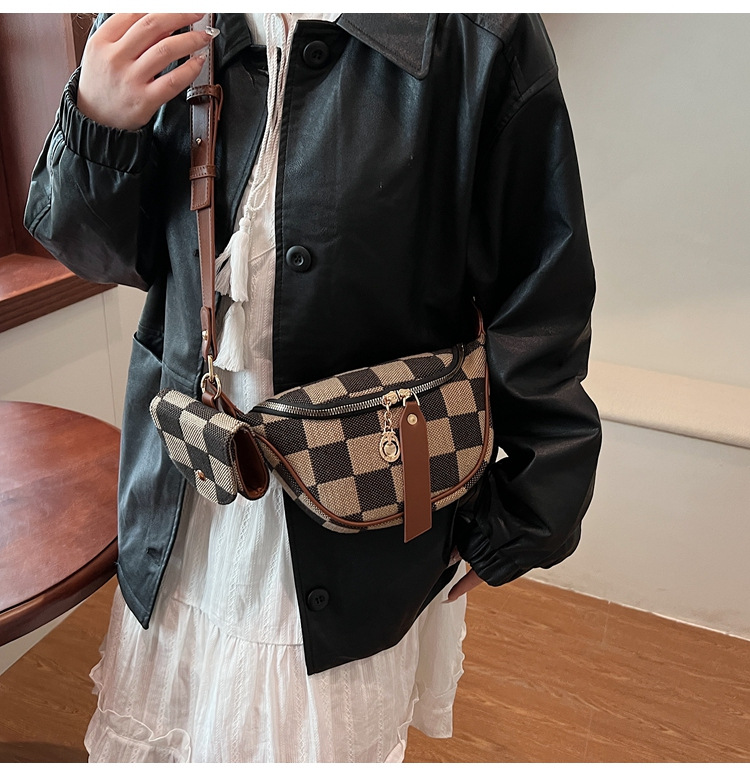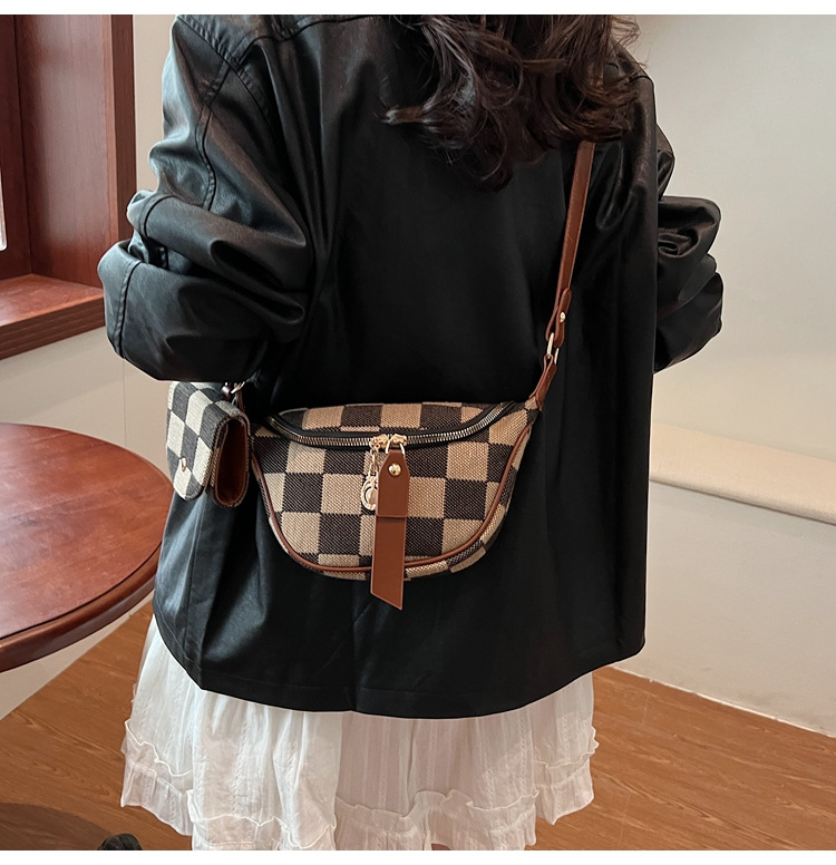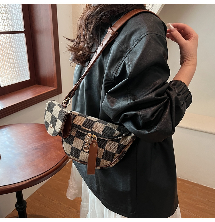 Ventas transfronterizas en caliente de moda versátil para viajar con tablero de ajedrez tela pequeña bolsa de auriculares bolso de pecho bolso de cintura 2 en 1