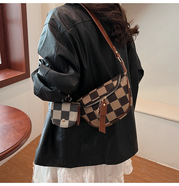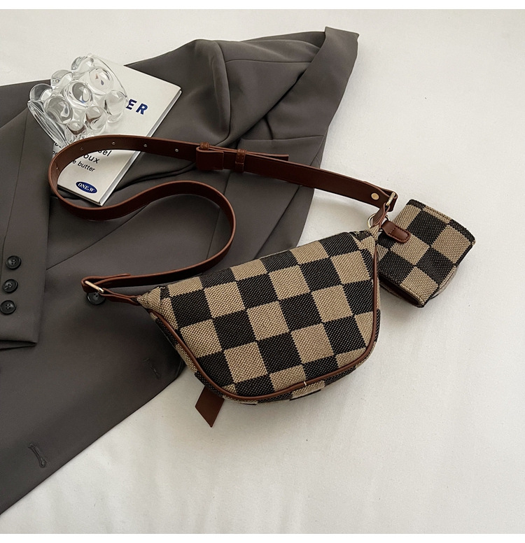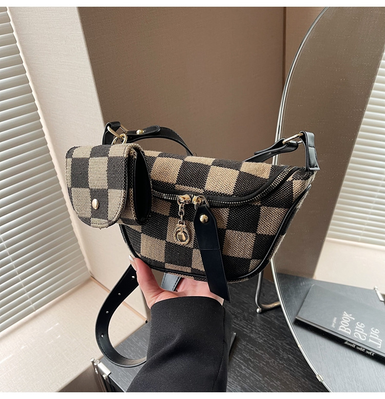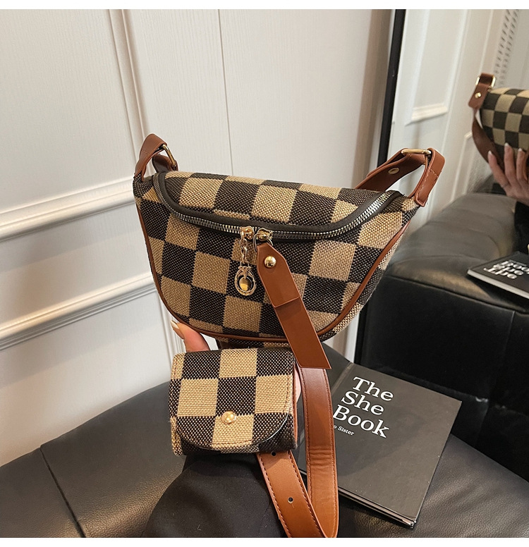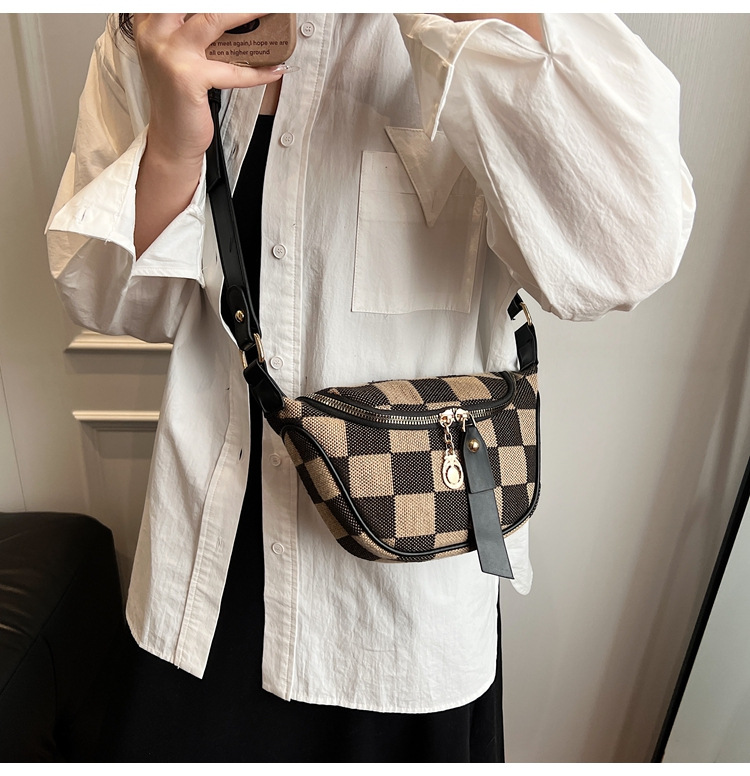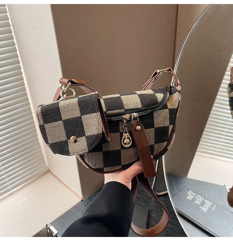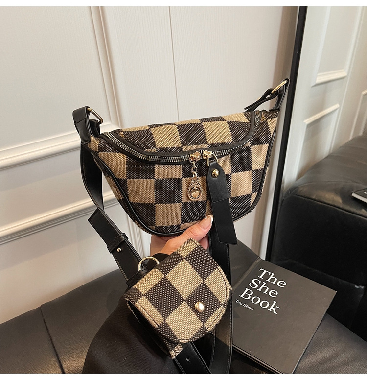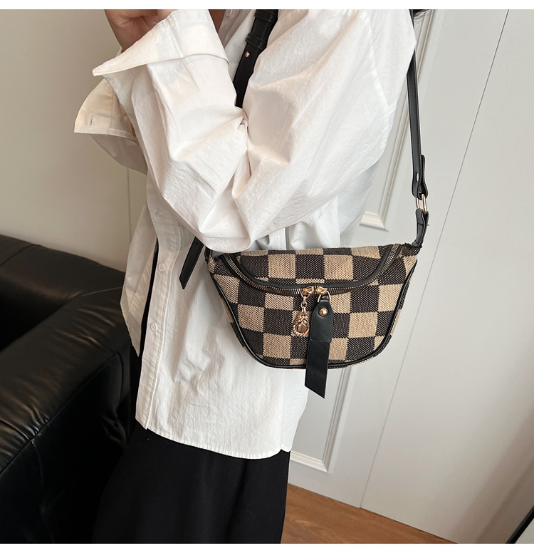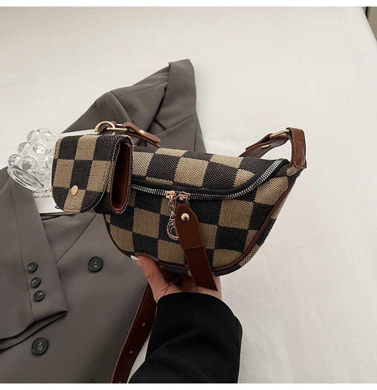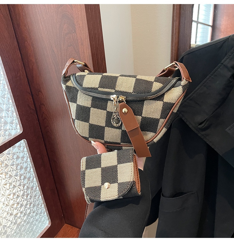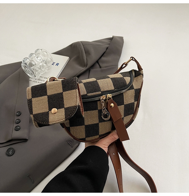 Ventas transfronterizas en caliente de moda versátil para viajar con tablero de ajedrez tela pequeña bolsa de auriculares bolso de pecho bolso de cintura 2 en 1
