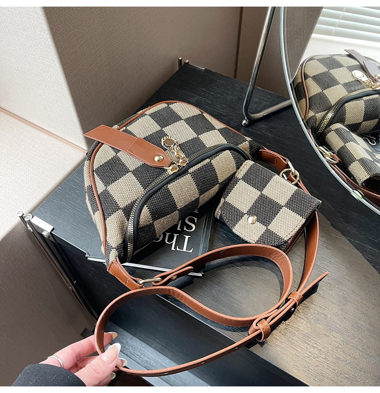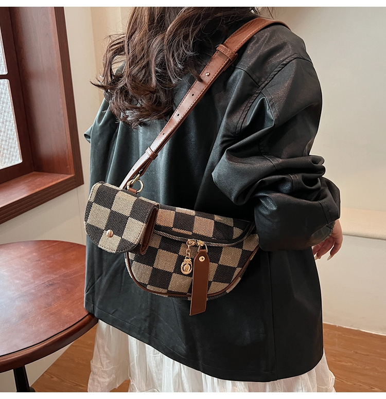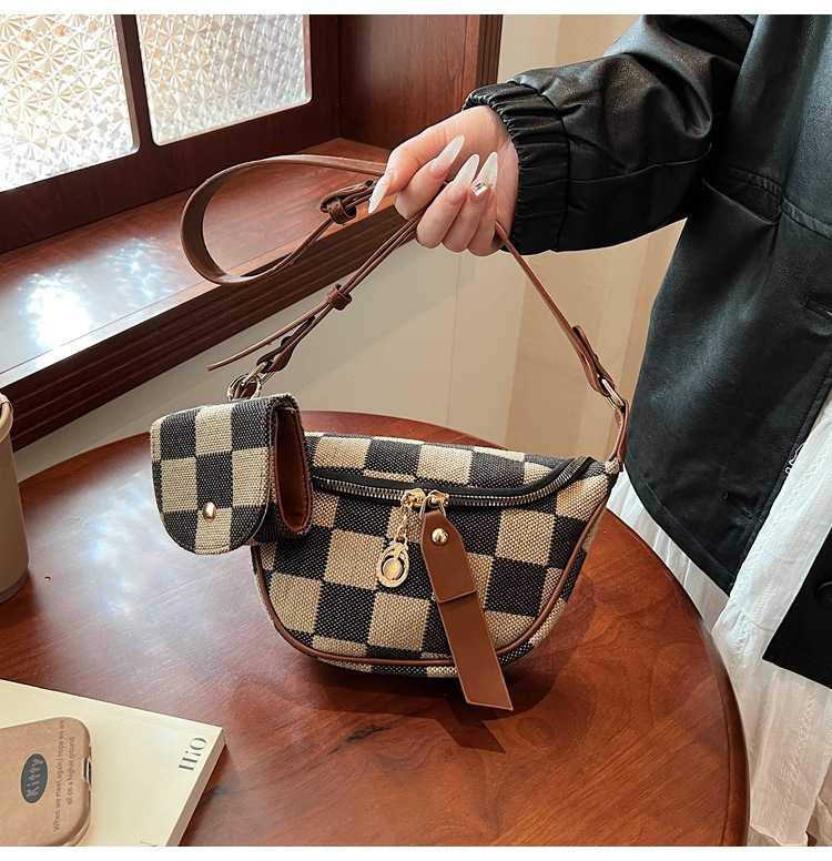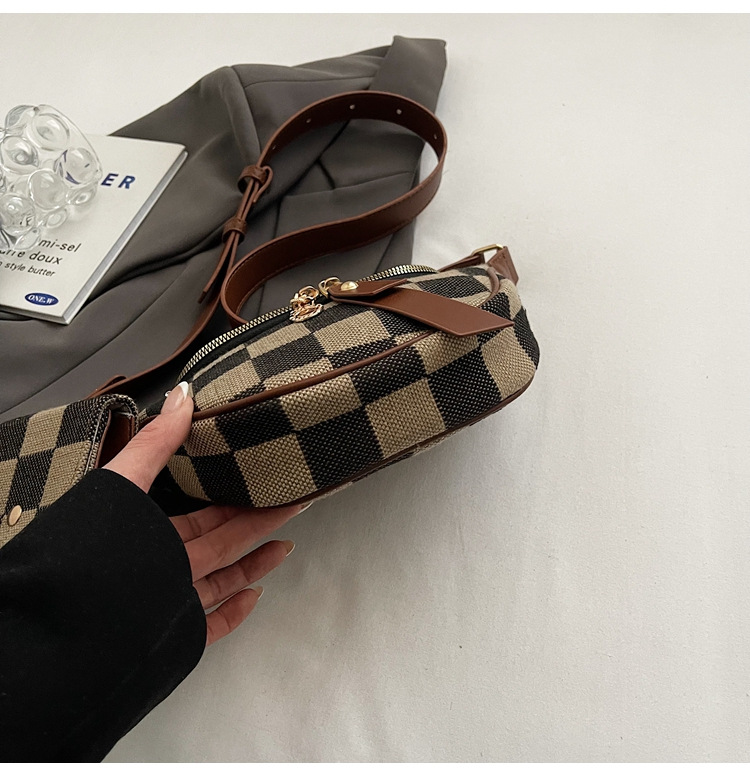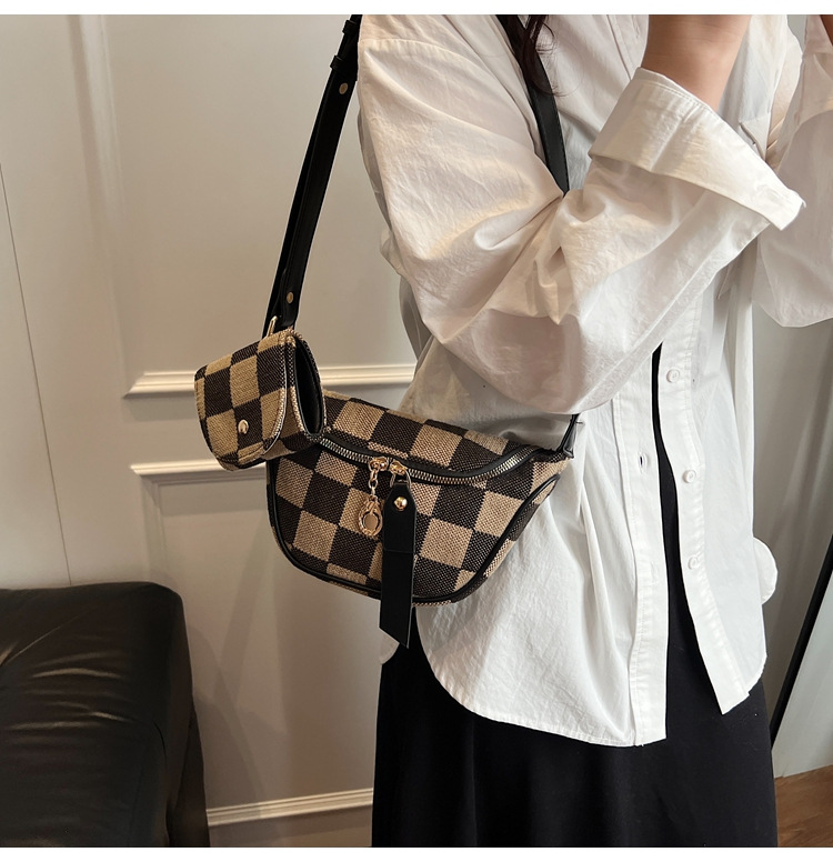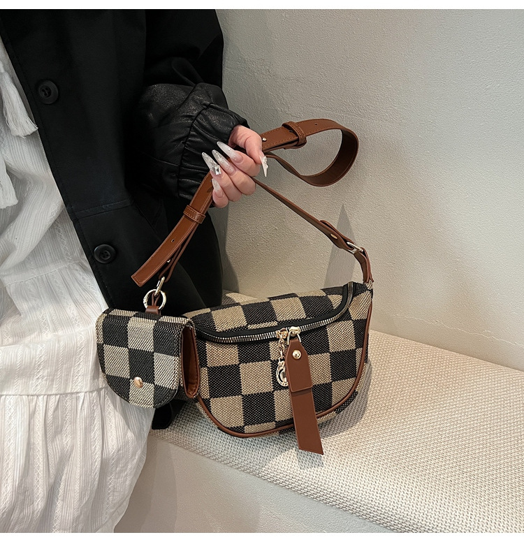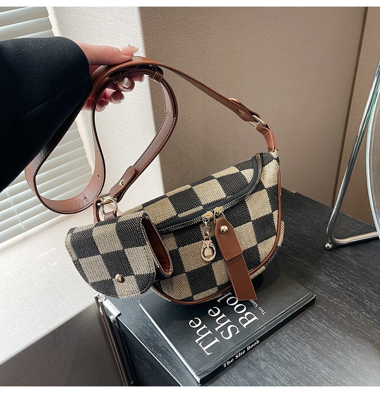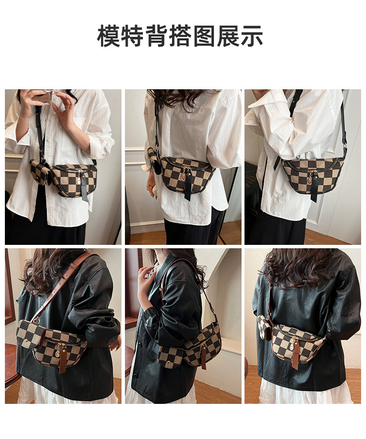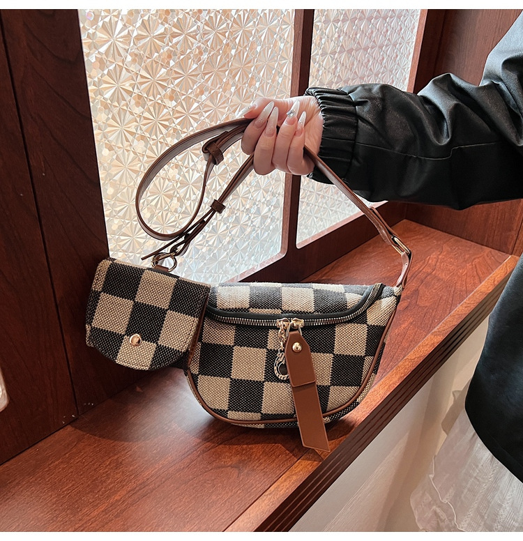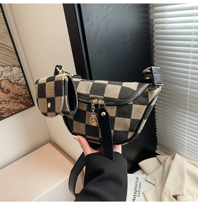 Ventas transfronterizas en caliente de moda versátil para viajar con tablero de ajedrez tela pequeña bolsa de auriculares bolso de pecho bolso de cintura 2 en 1