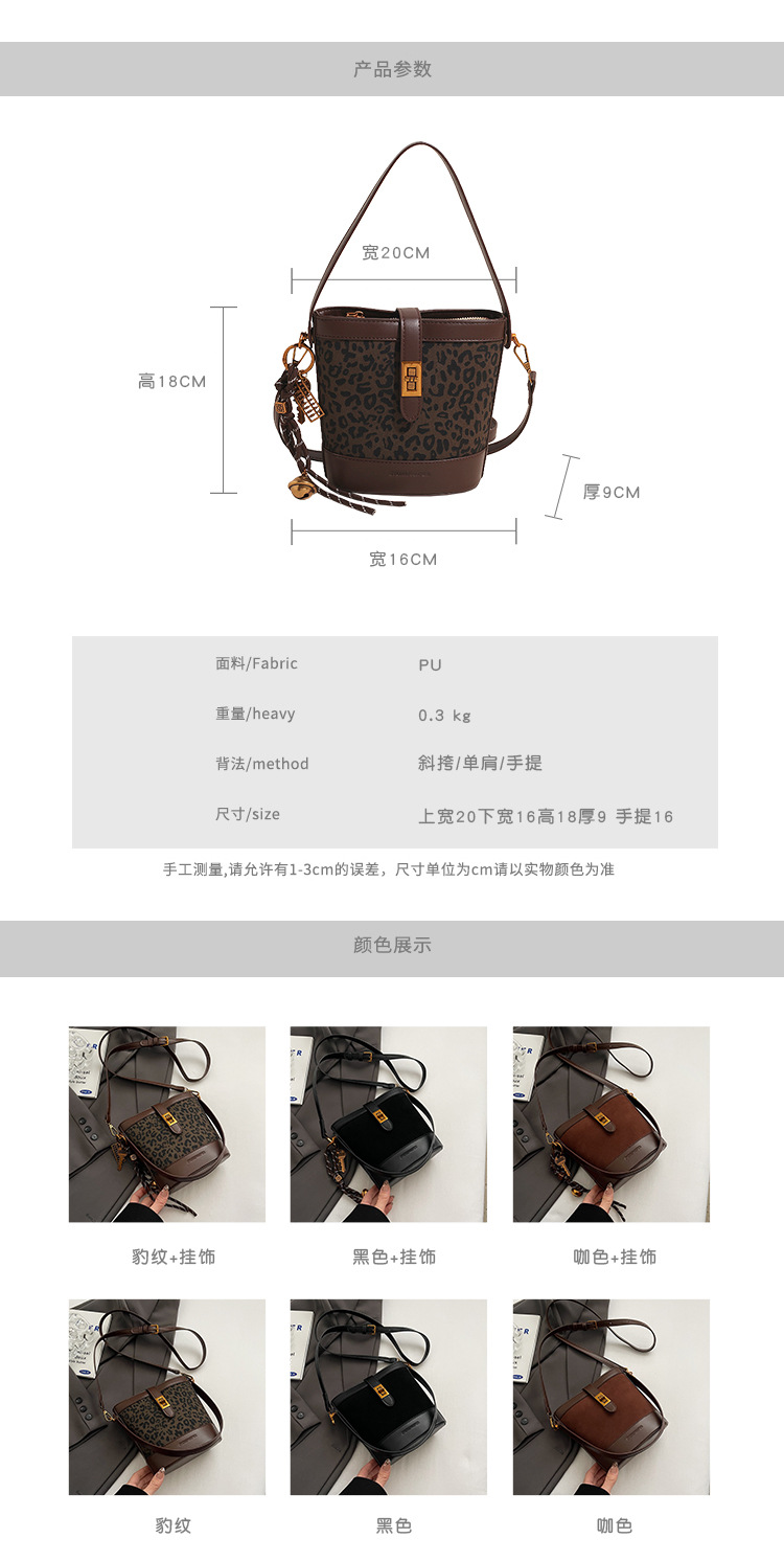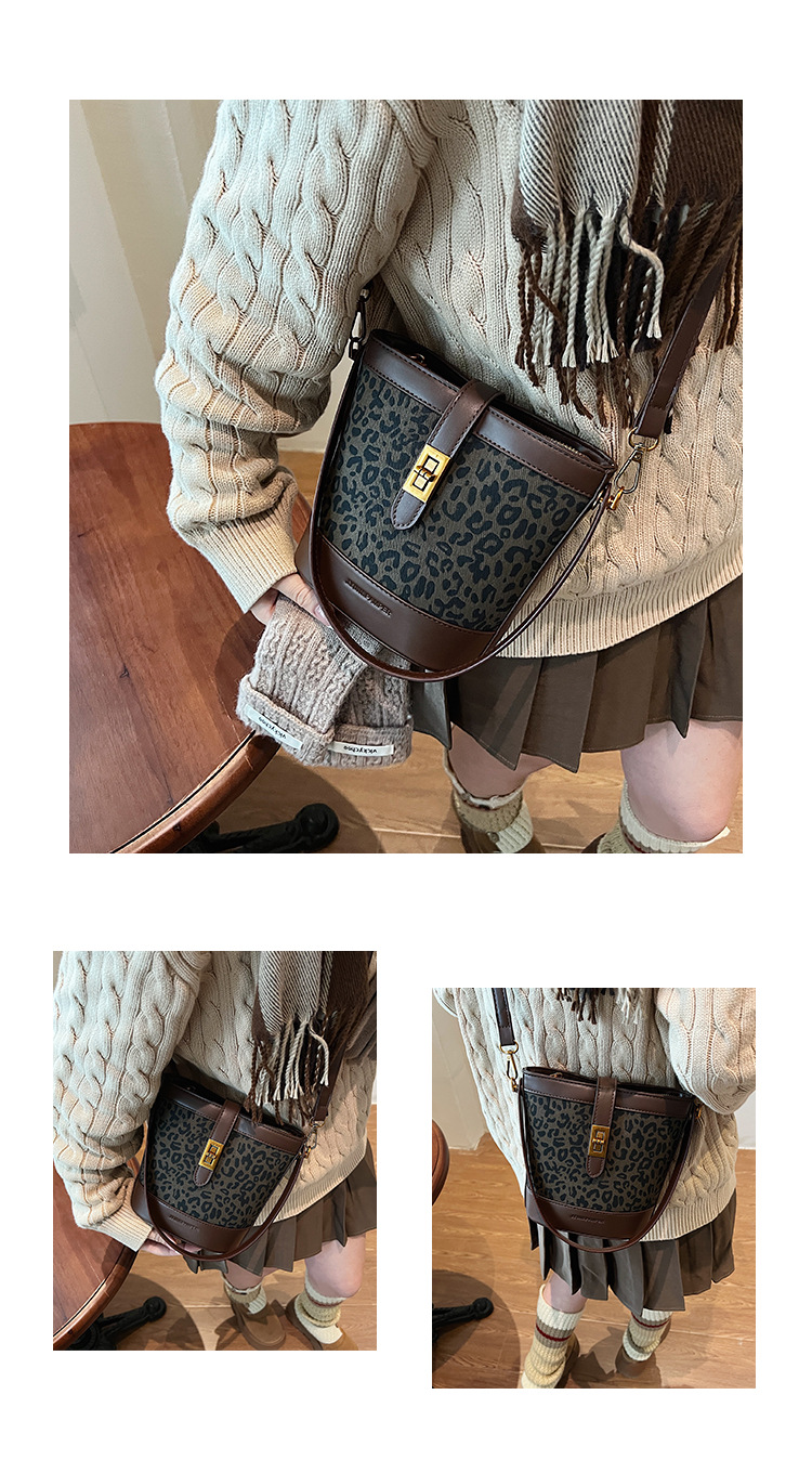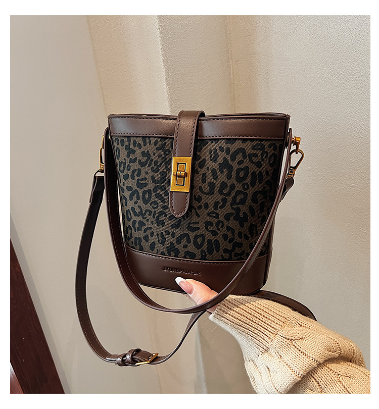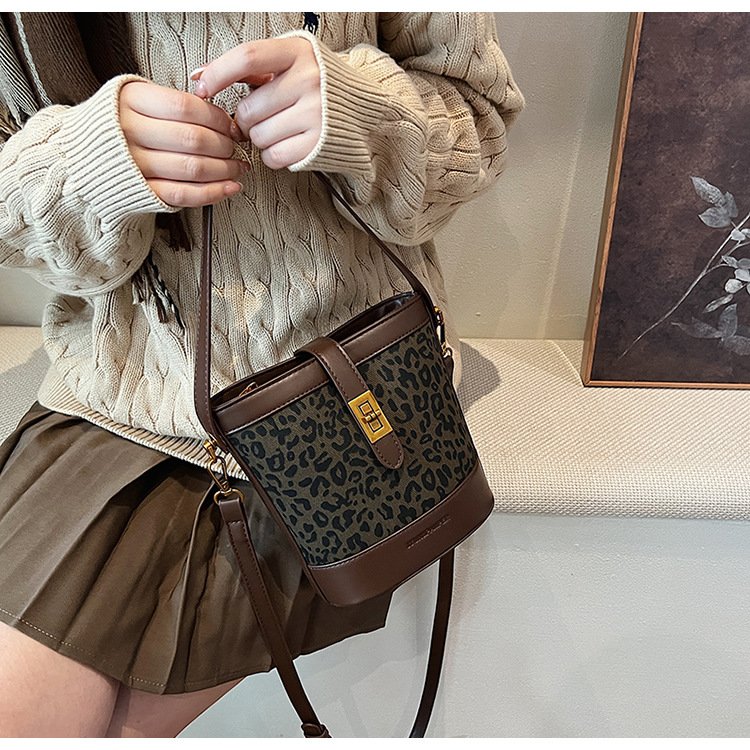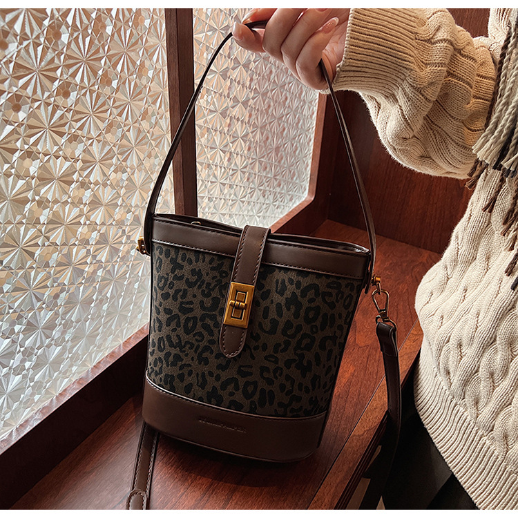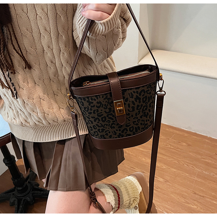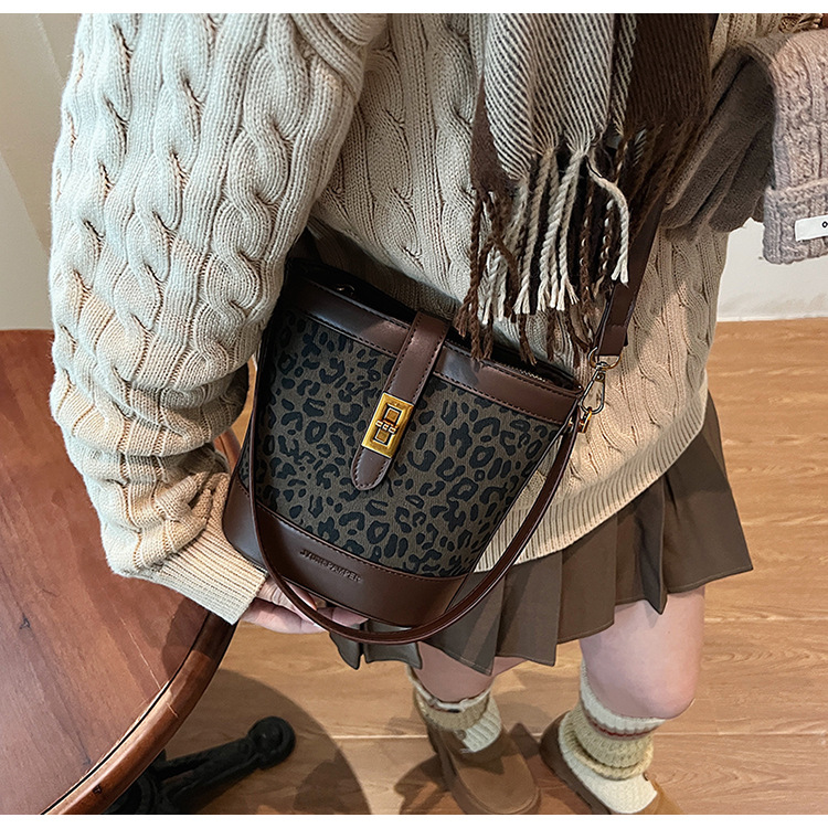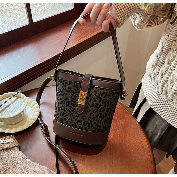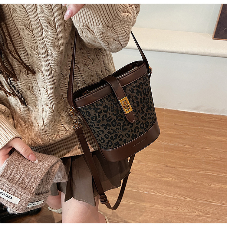 Bolso transfronterizo bolso de mujer nicho de diseño 2024 bolso de cubo de moda leopardo serie explosiva portátil hombro único