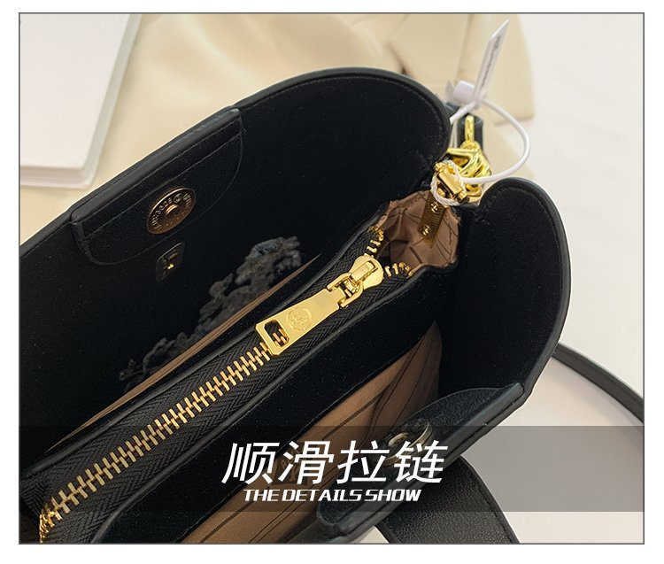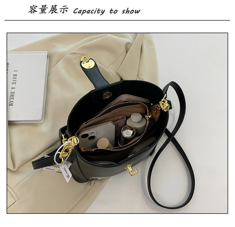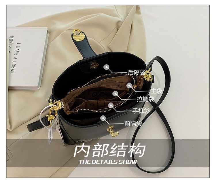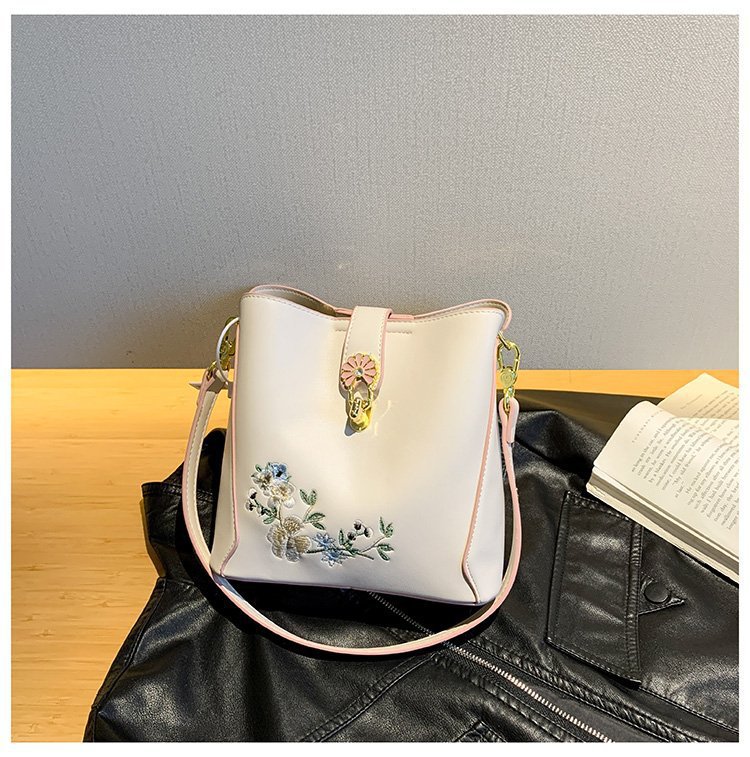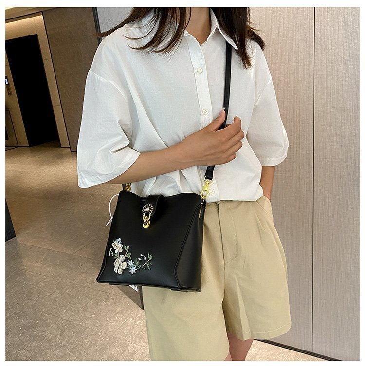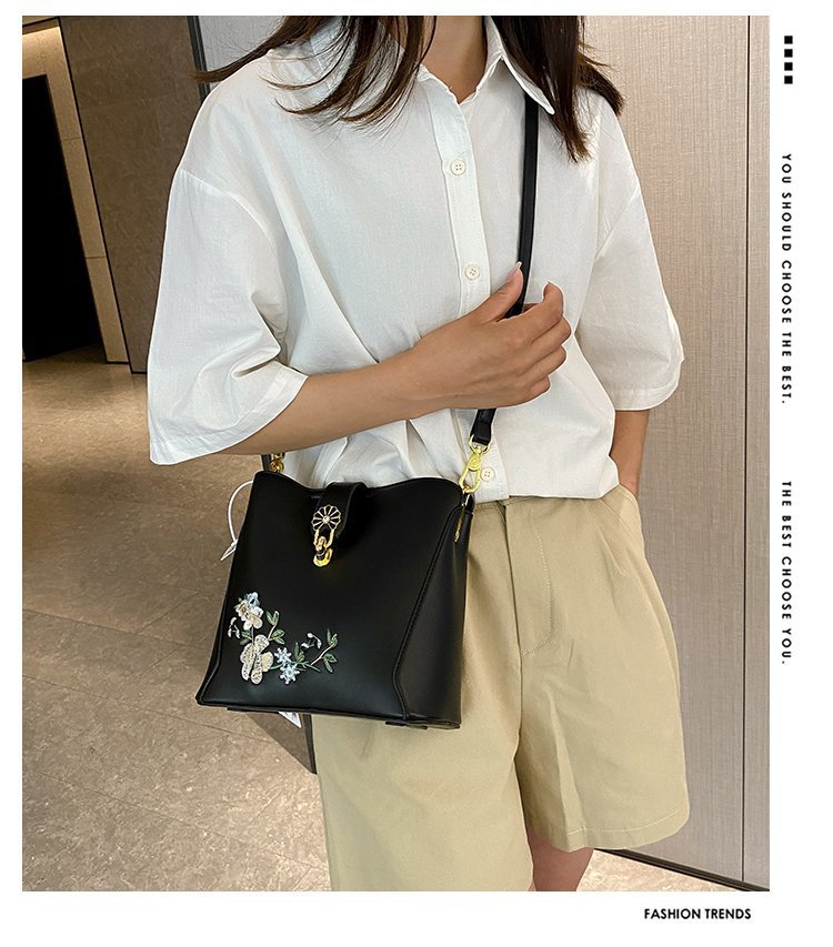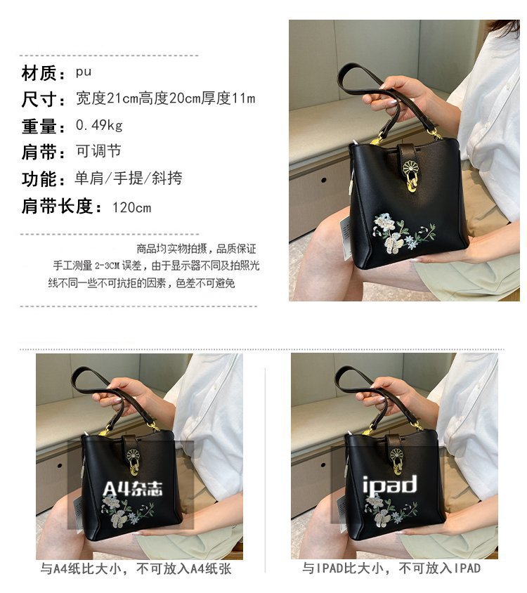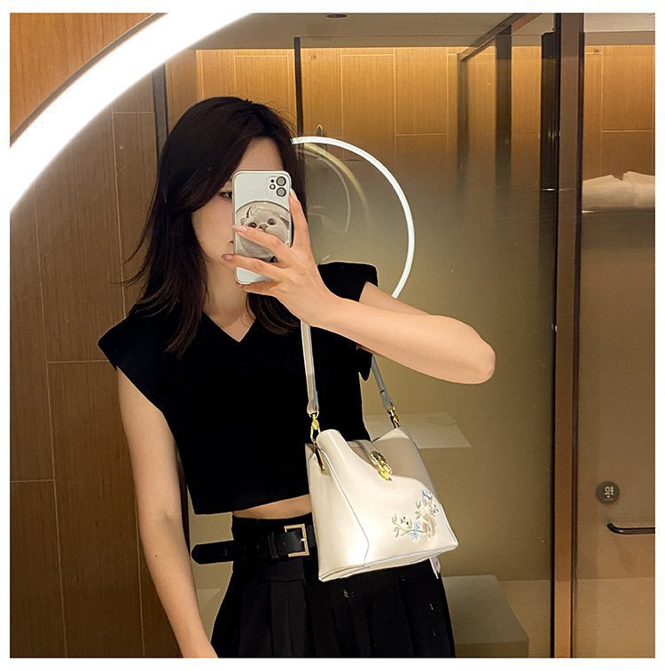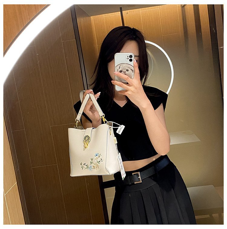 Guofeng bolsa de hombro para mujeres de gran capacidad bolsa de cubo de agua China bordado de color contrastante ocio viaje de otoño nueva bolsa para mujeres
