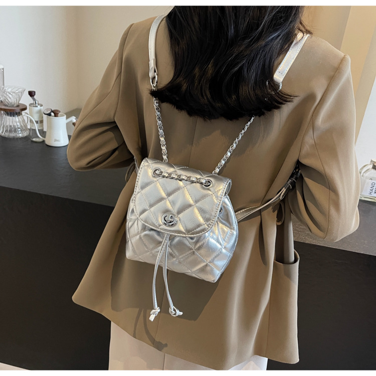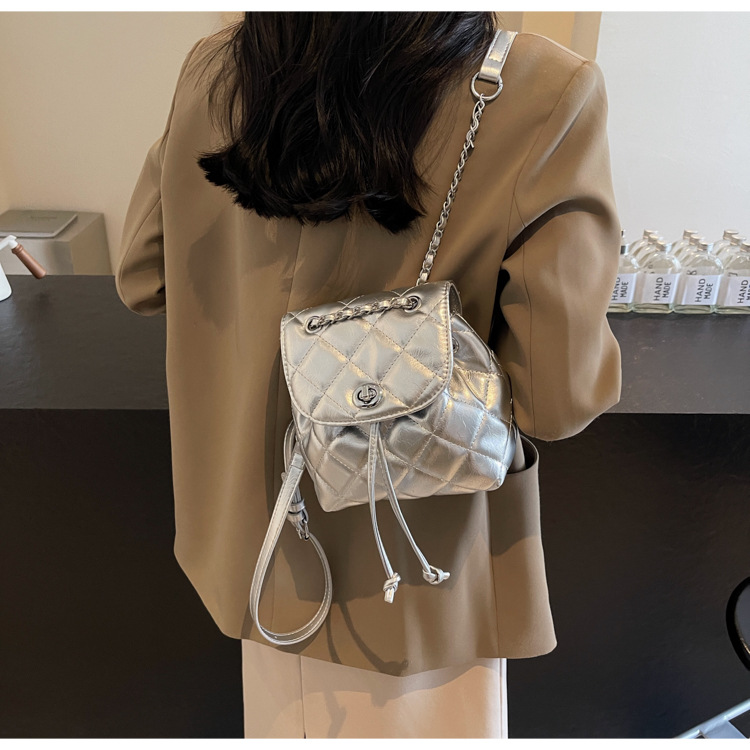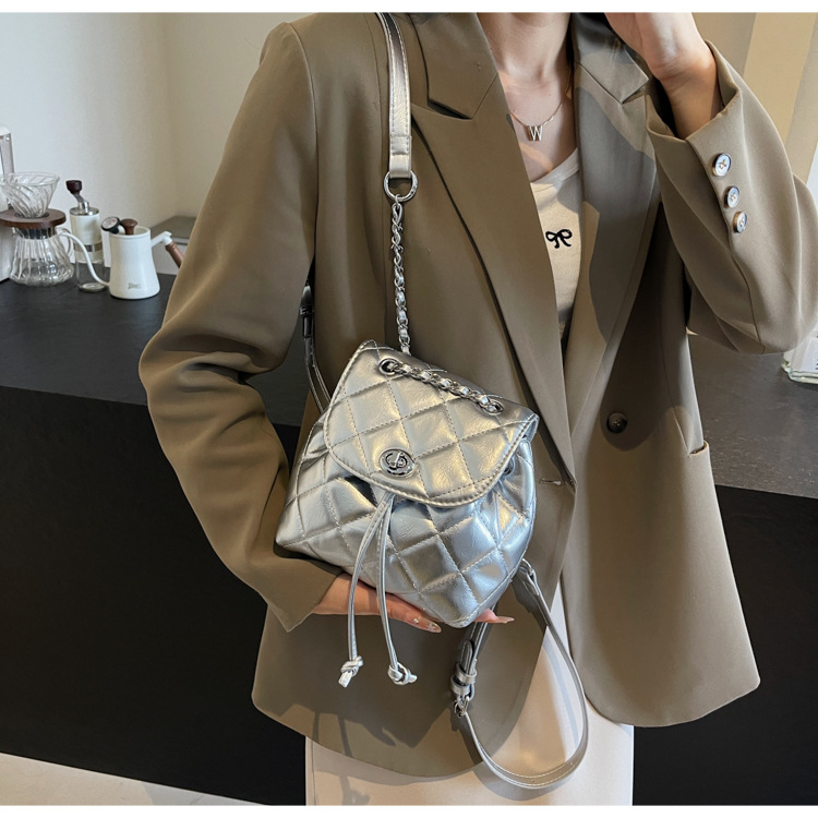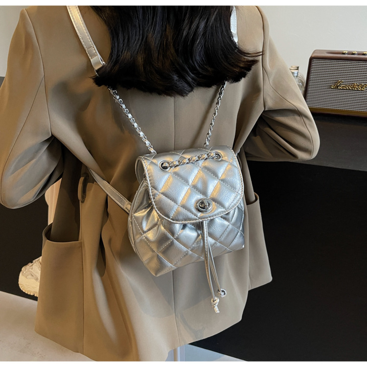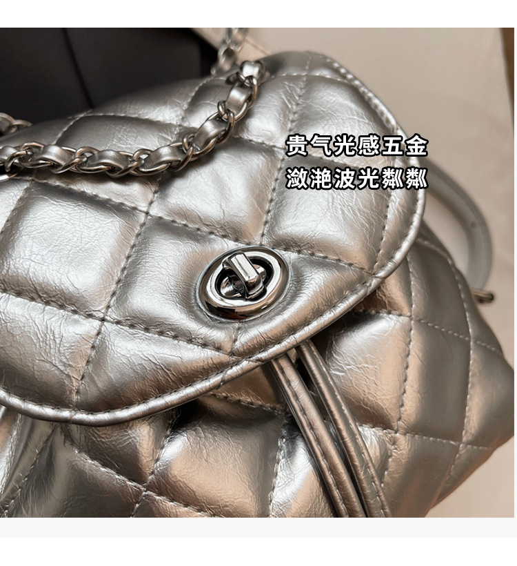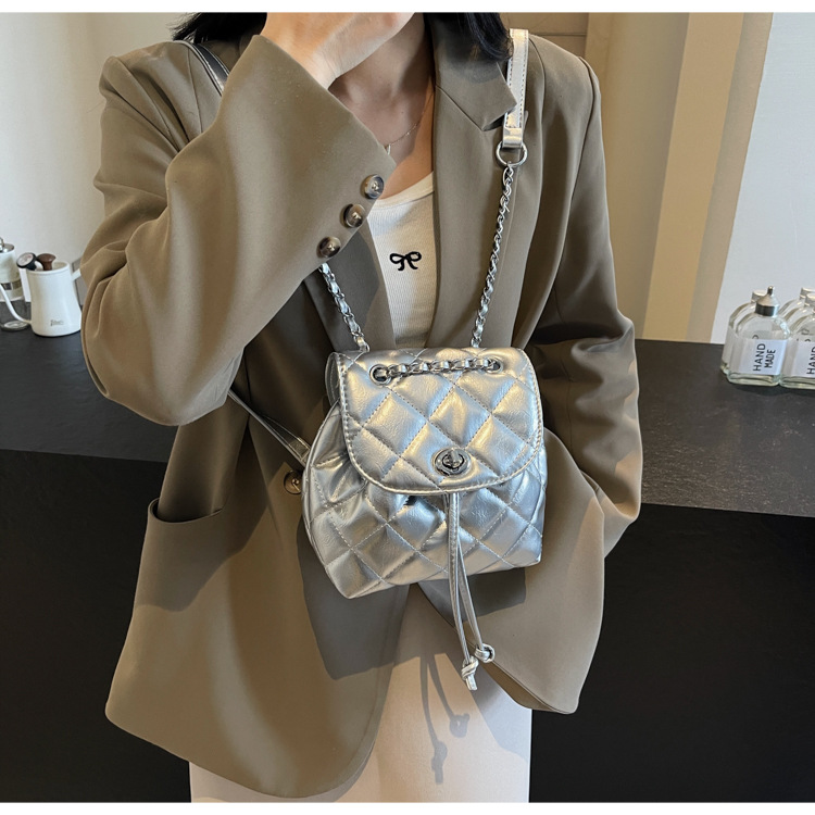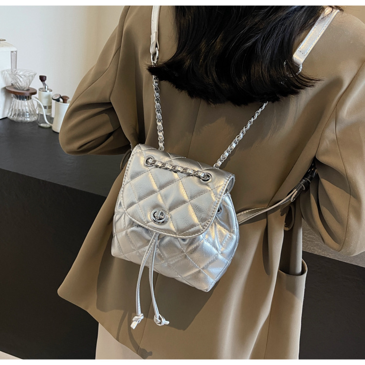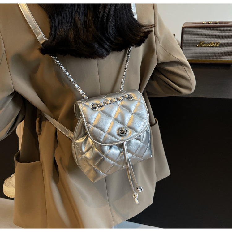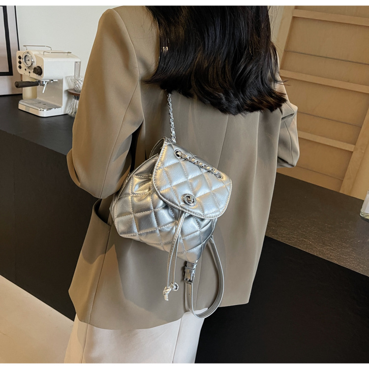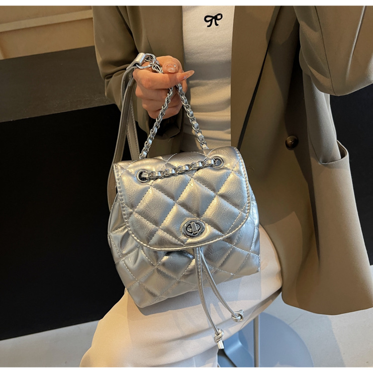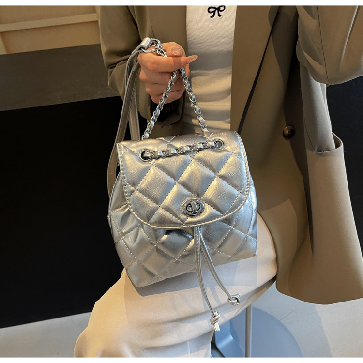 Mochila de cadena de diamantes de estilo occidental para mujer 2024 nueva mochila plateada de verano para estudiantes universitarios