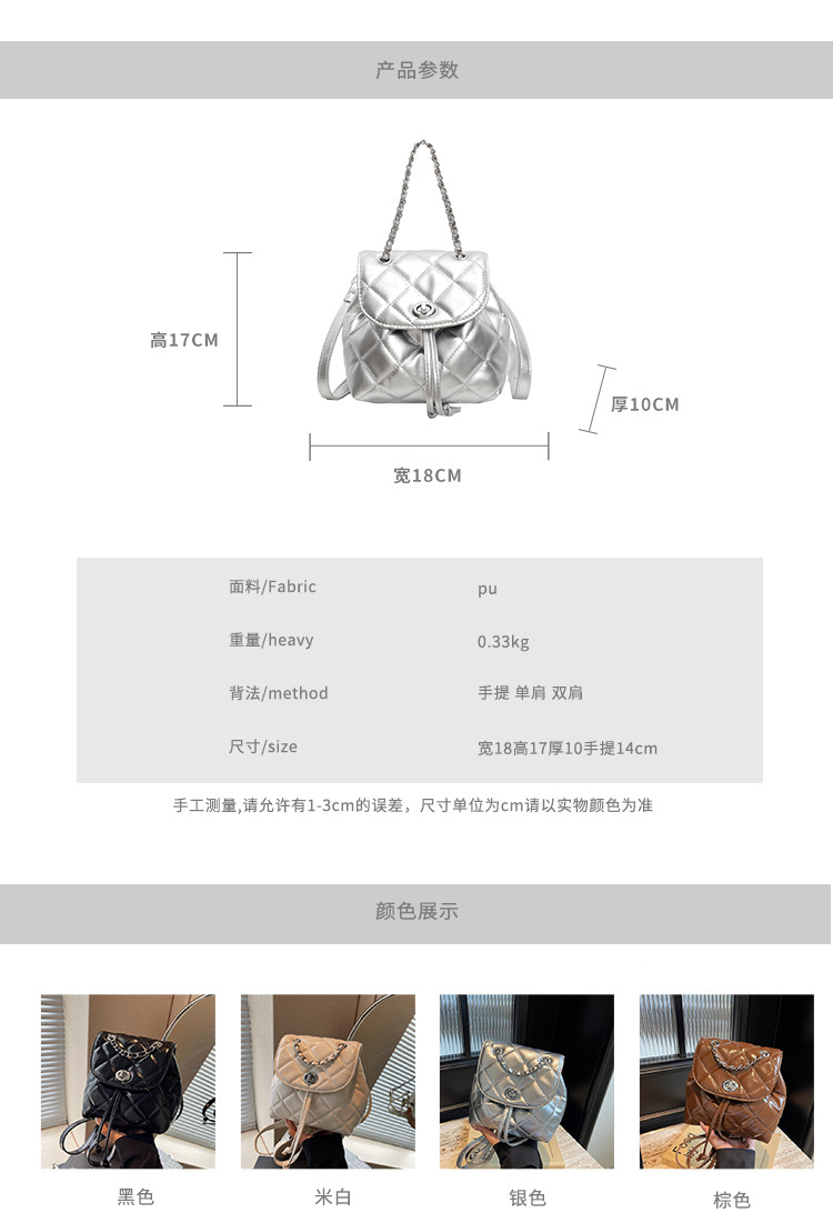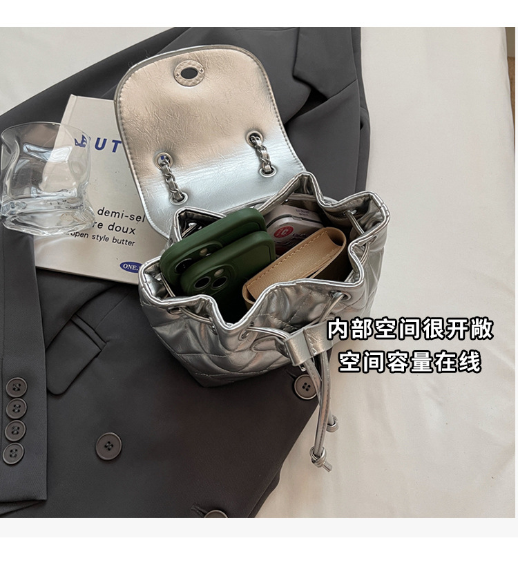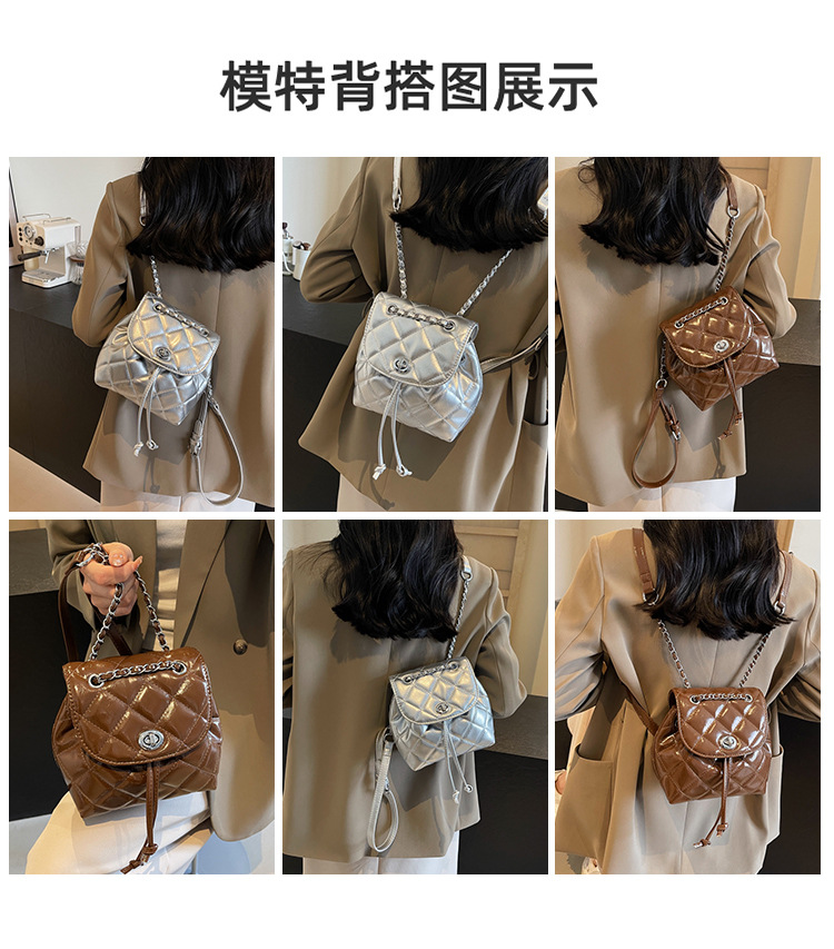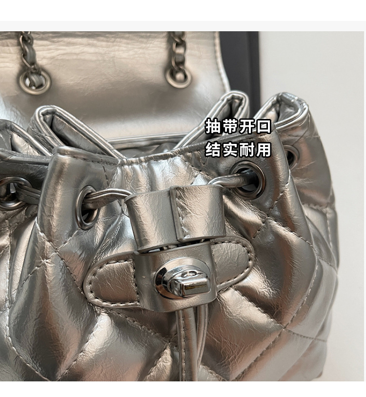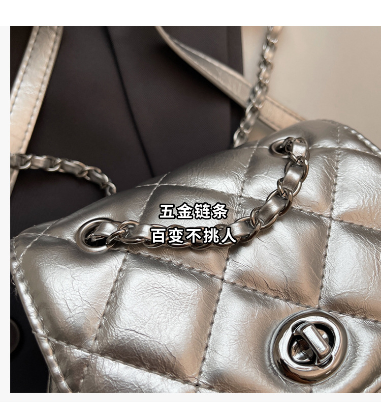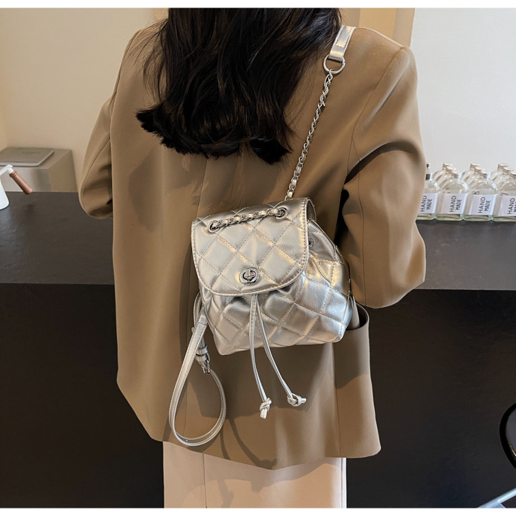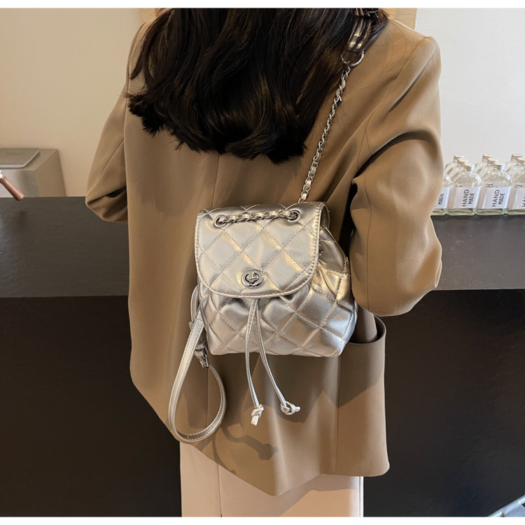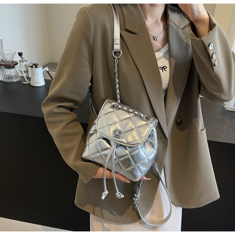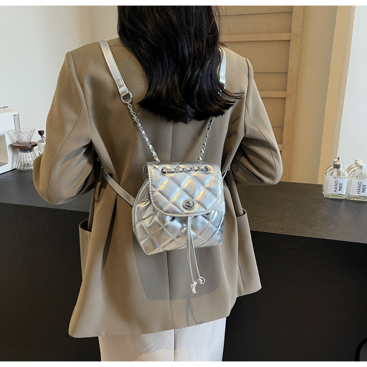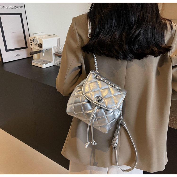 Mochila de cadena de diamantes de estilo occidental para mujer 2024 nueva mochila plateada de verano para estudiantes universitarios