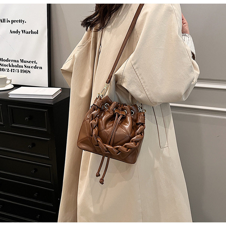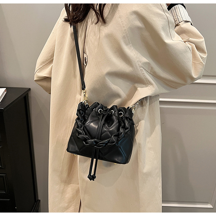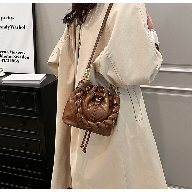2024 primavera nueva textura de alta calidad de gran capacidad de extracción de cinturón de diamante estilo simple retro bolso de mujer de cubo de aire