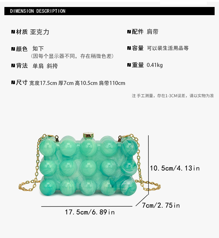 Comercio exterior transfronterizo onda francesa huevo de perla acrílico moda de hombro europeo y americano bolsa de cena acrílico