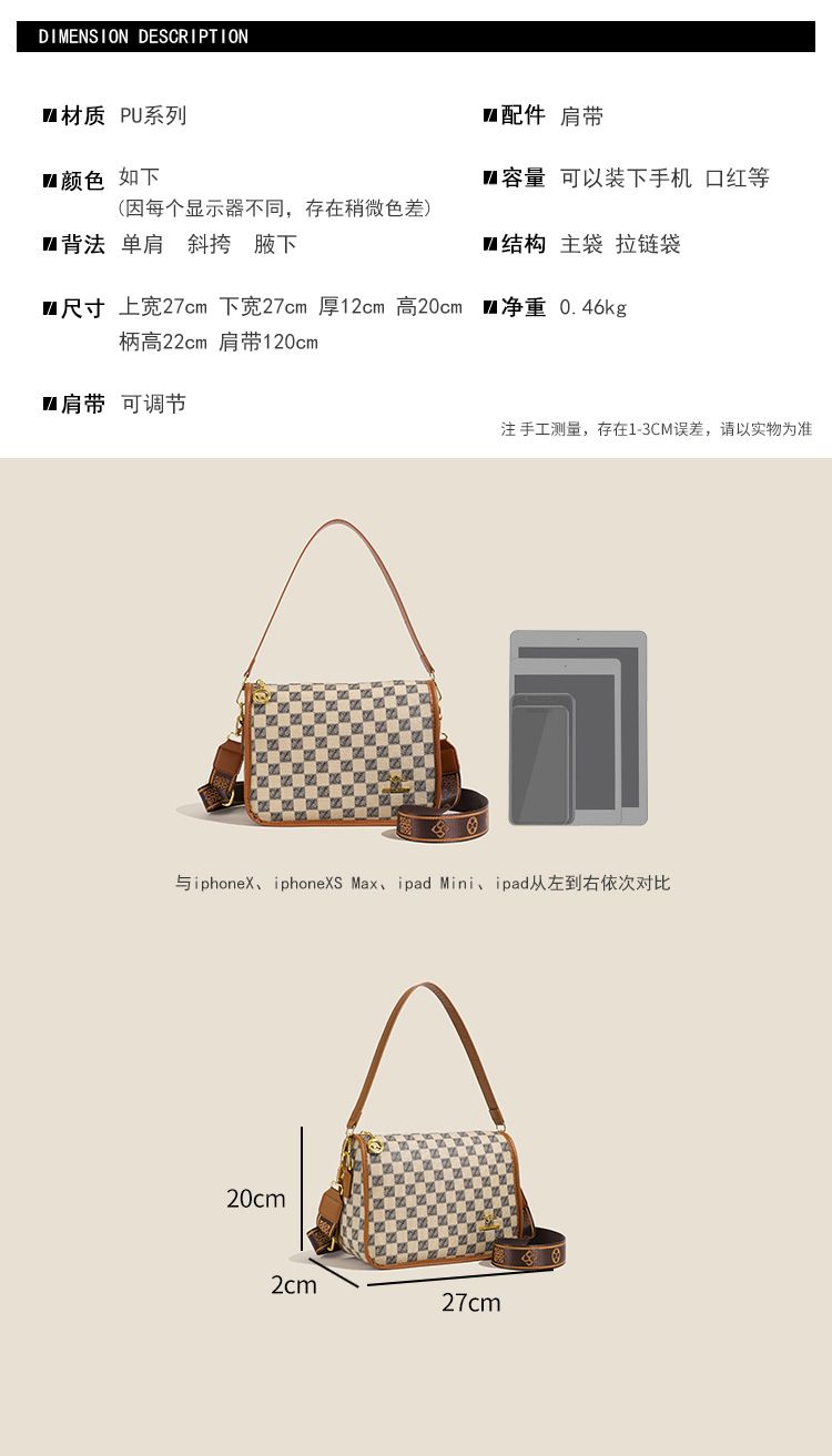 Bolso de hombro clásico de ajedrez, estilo de moda, temperamento casual, nicho de diseño de alta calidad, bolso de hombro de textura para mujeres