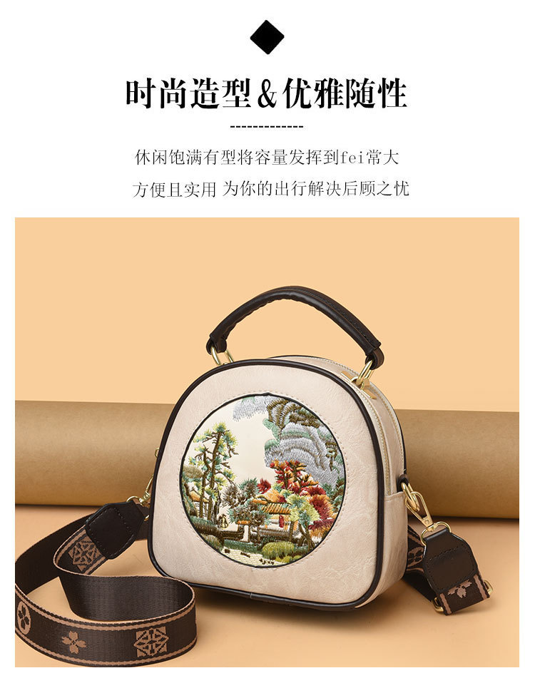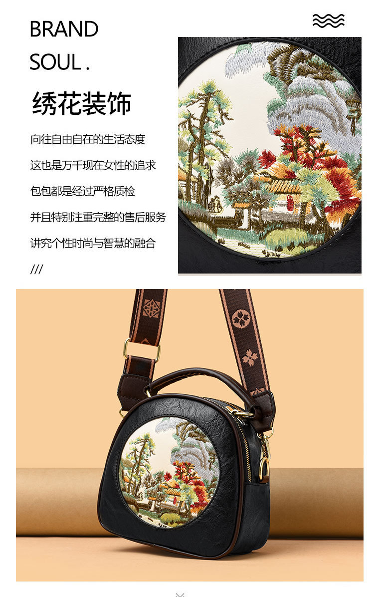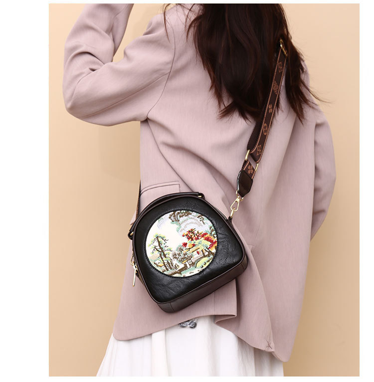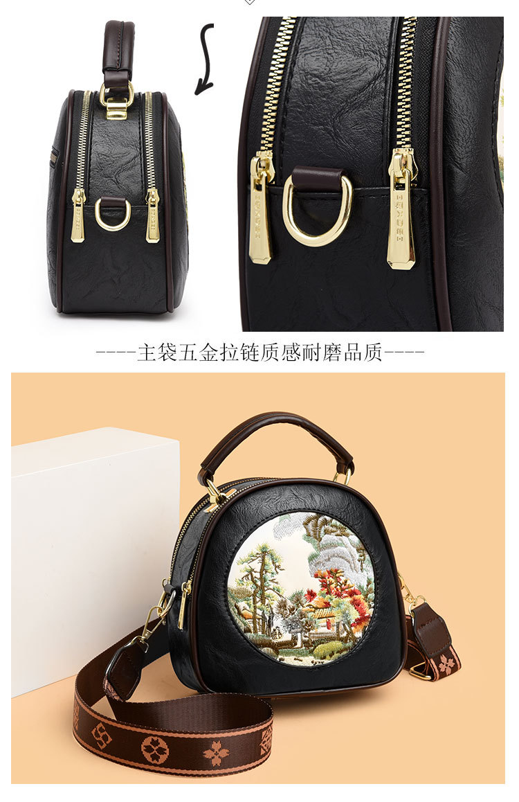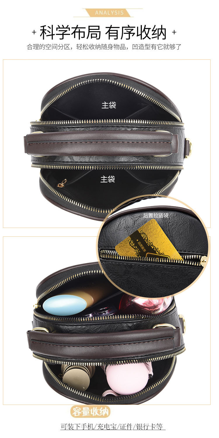 Transfronterizos ocio de cuero suave bolsas redondas versátiles exquisitas retro bolsas de hombro inclinadas de gran capacidad nuevas bolsas de mamá chinas
