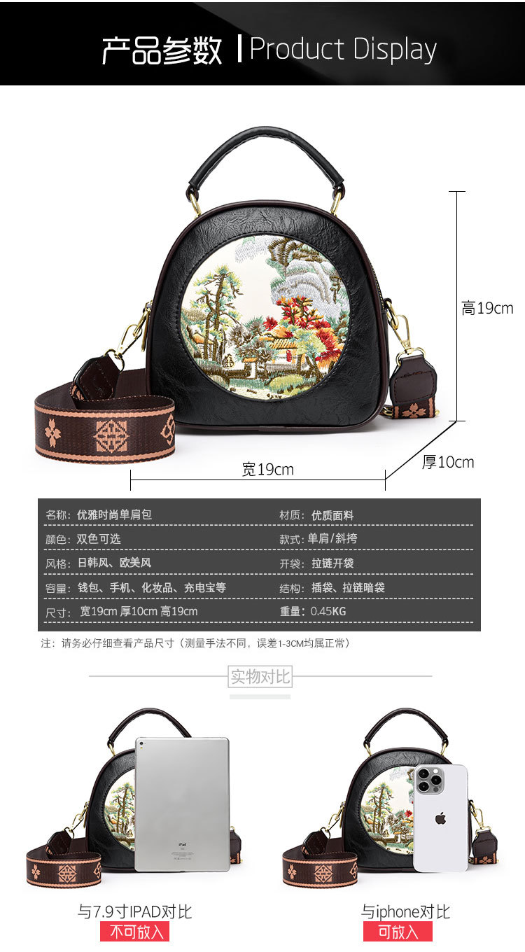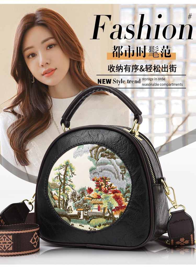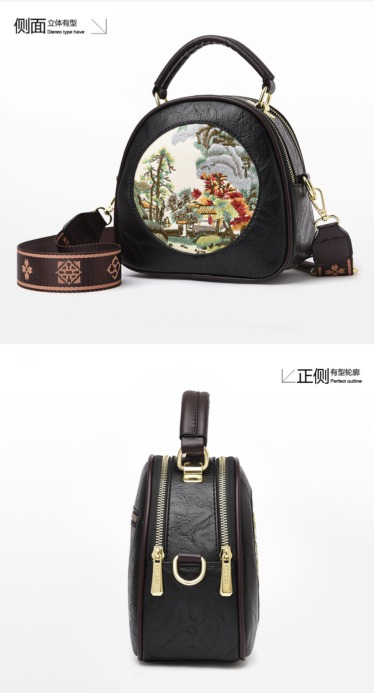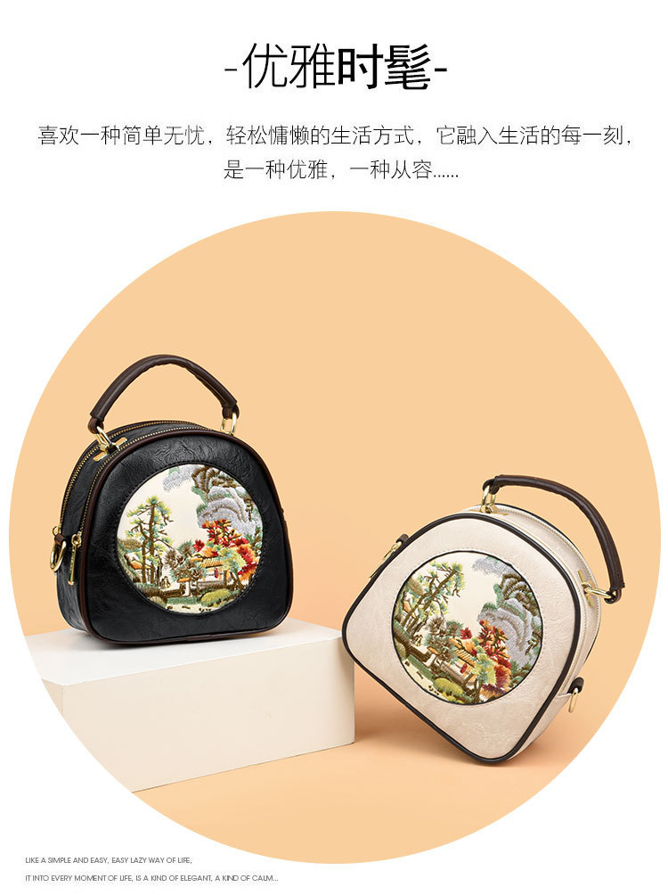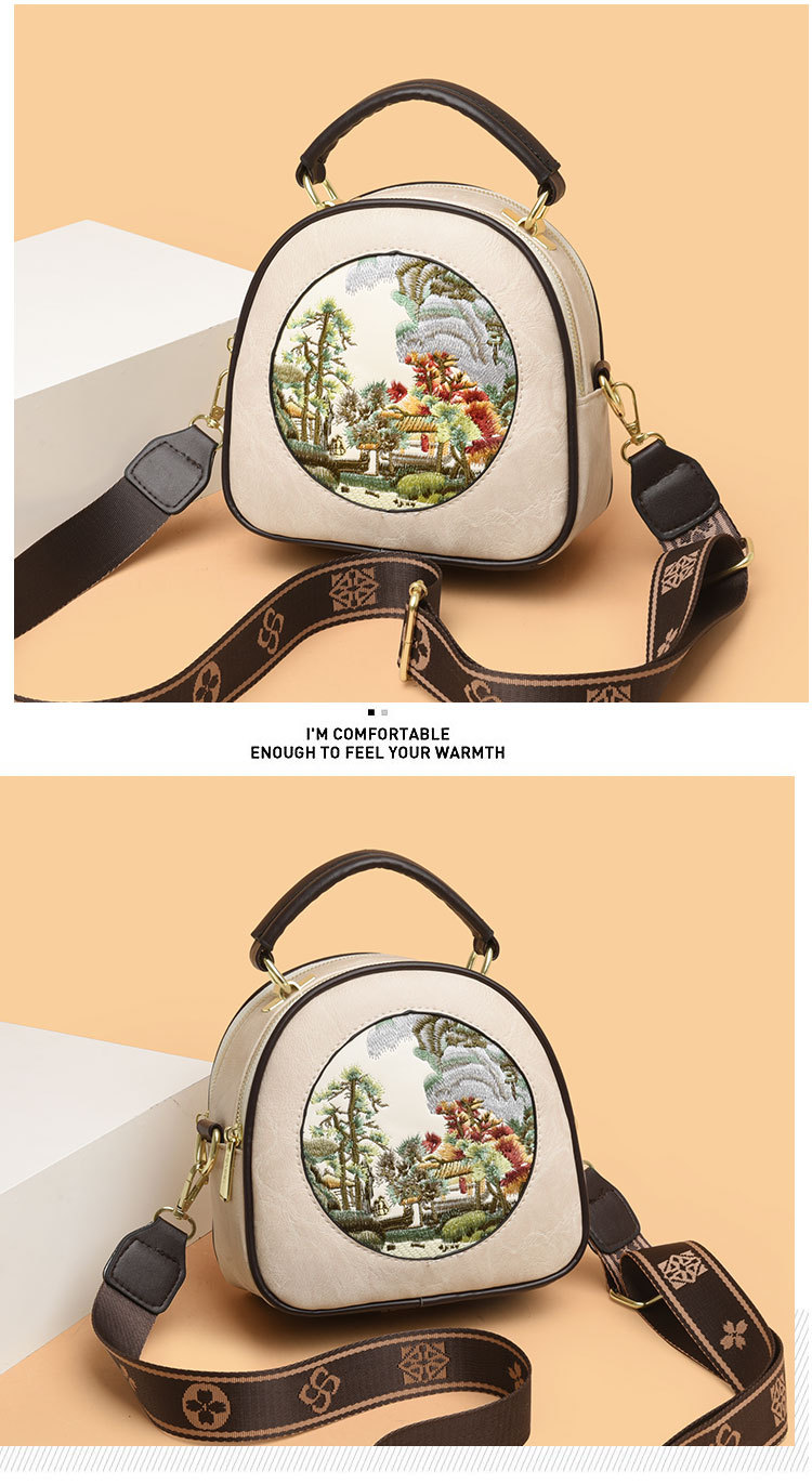 Transfronterizos ocio de cuero suave bolsas redondas versátiles exquisitas retro bolsas de hombro inclinadas de gran capacidad nuevas bolsas de mamá chinas