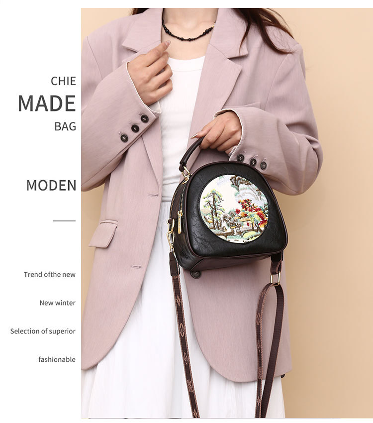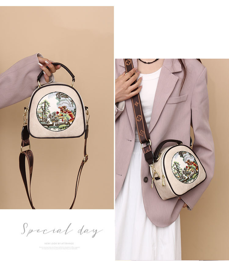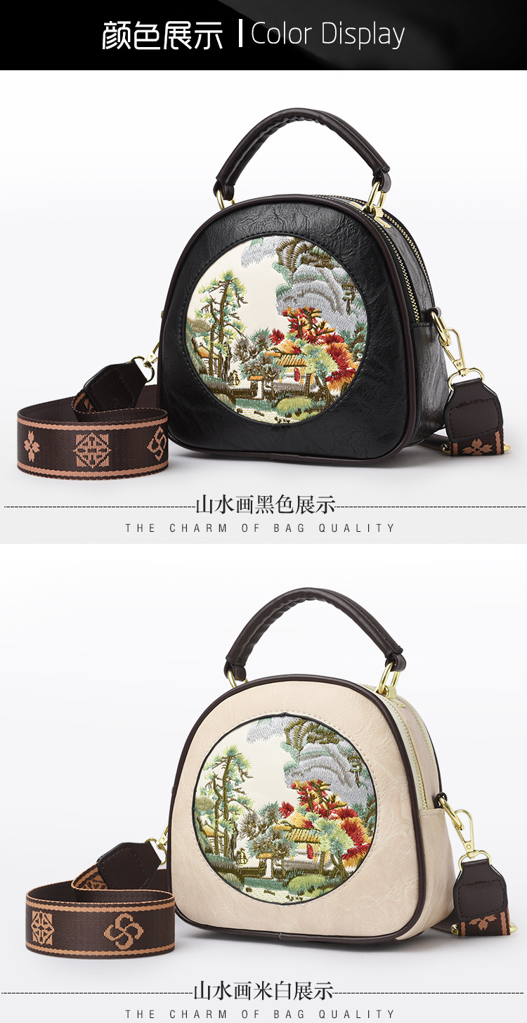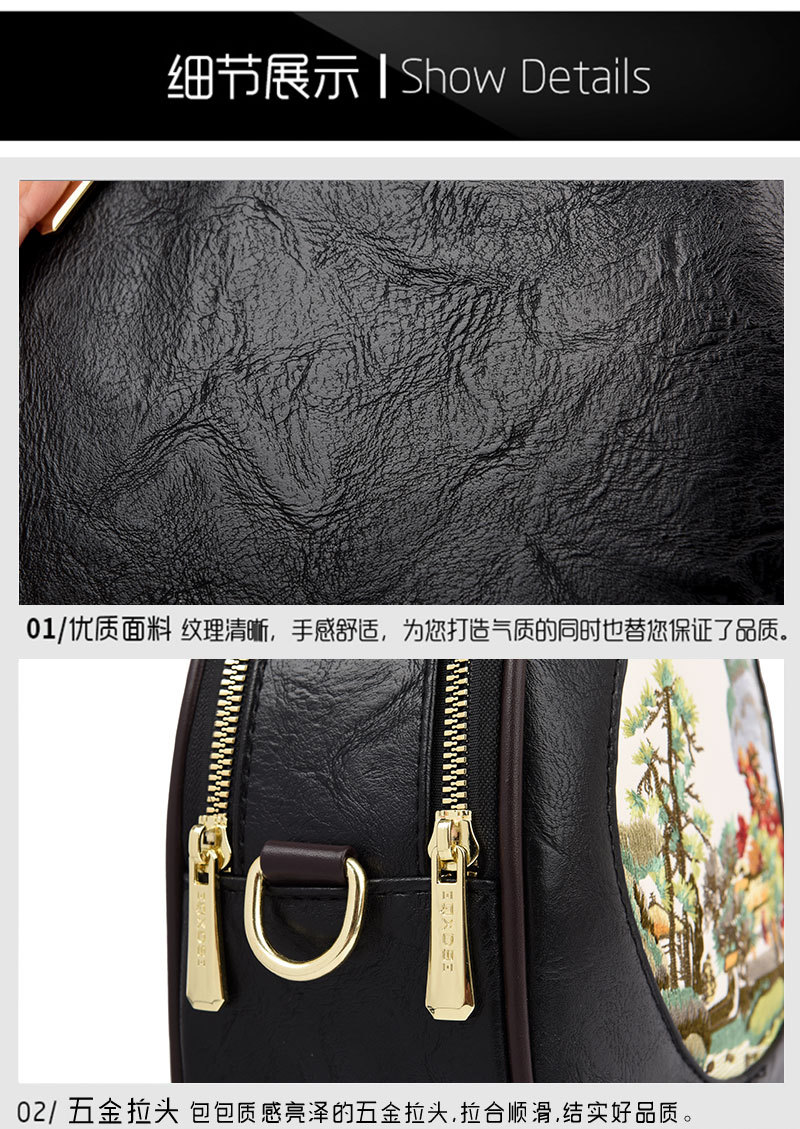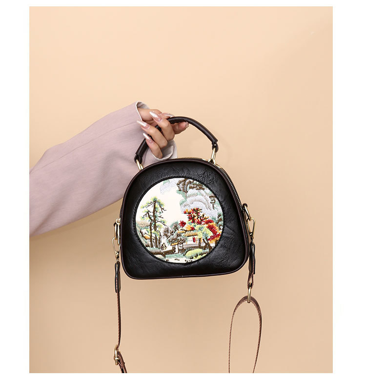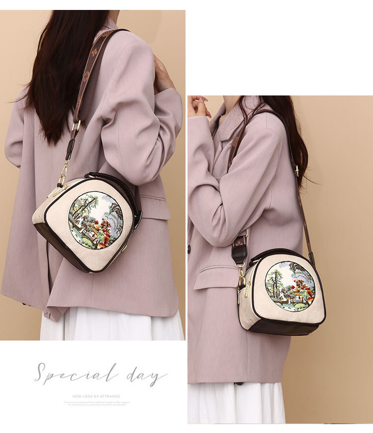 Transfronterizos ocio de cuero suave bolsas redondas versátiles exquisitas retro bolsas de hombro inclinadas de gran capacidad nuevas bolsas de mamá chinas