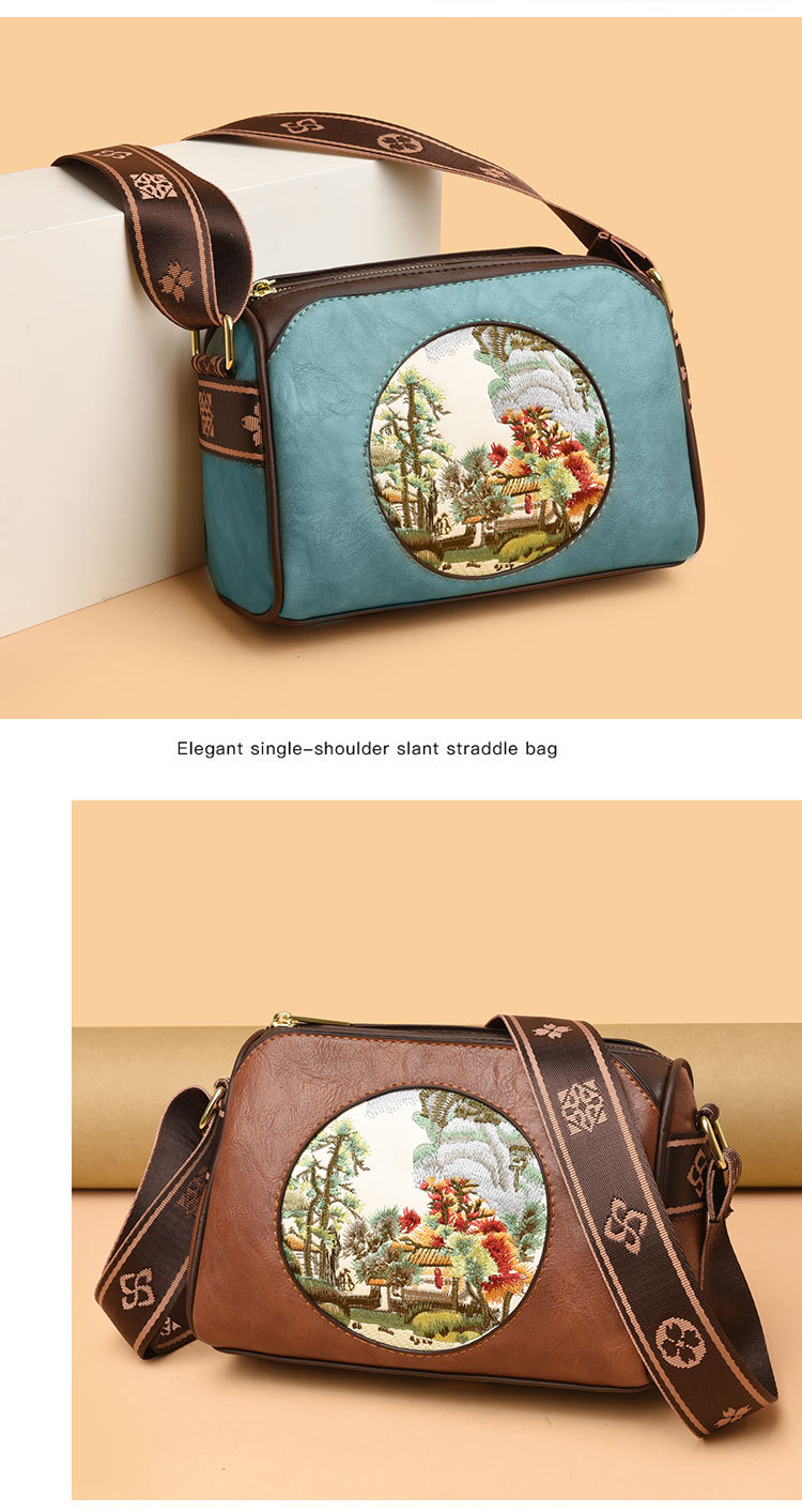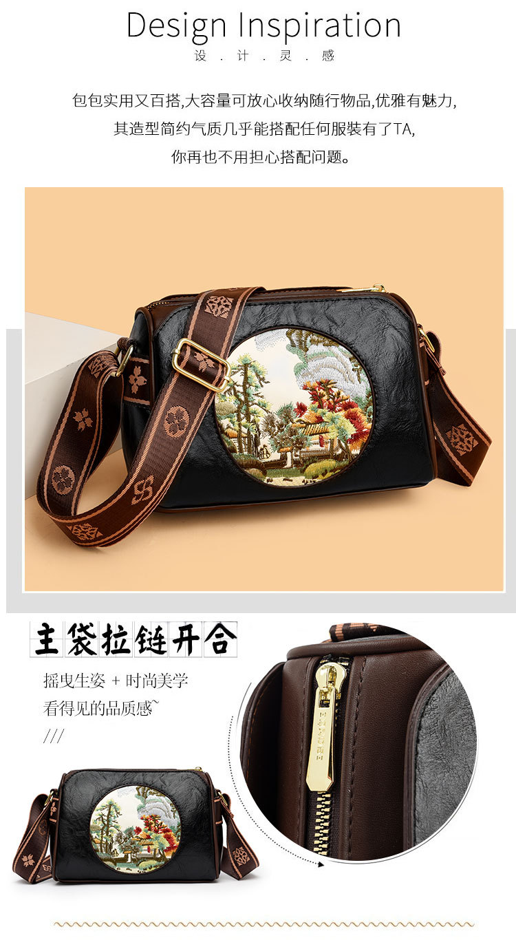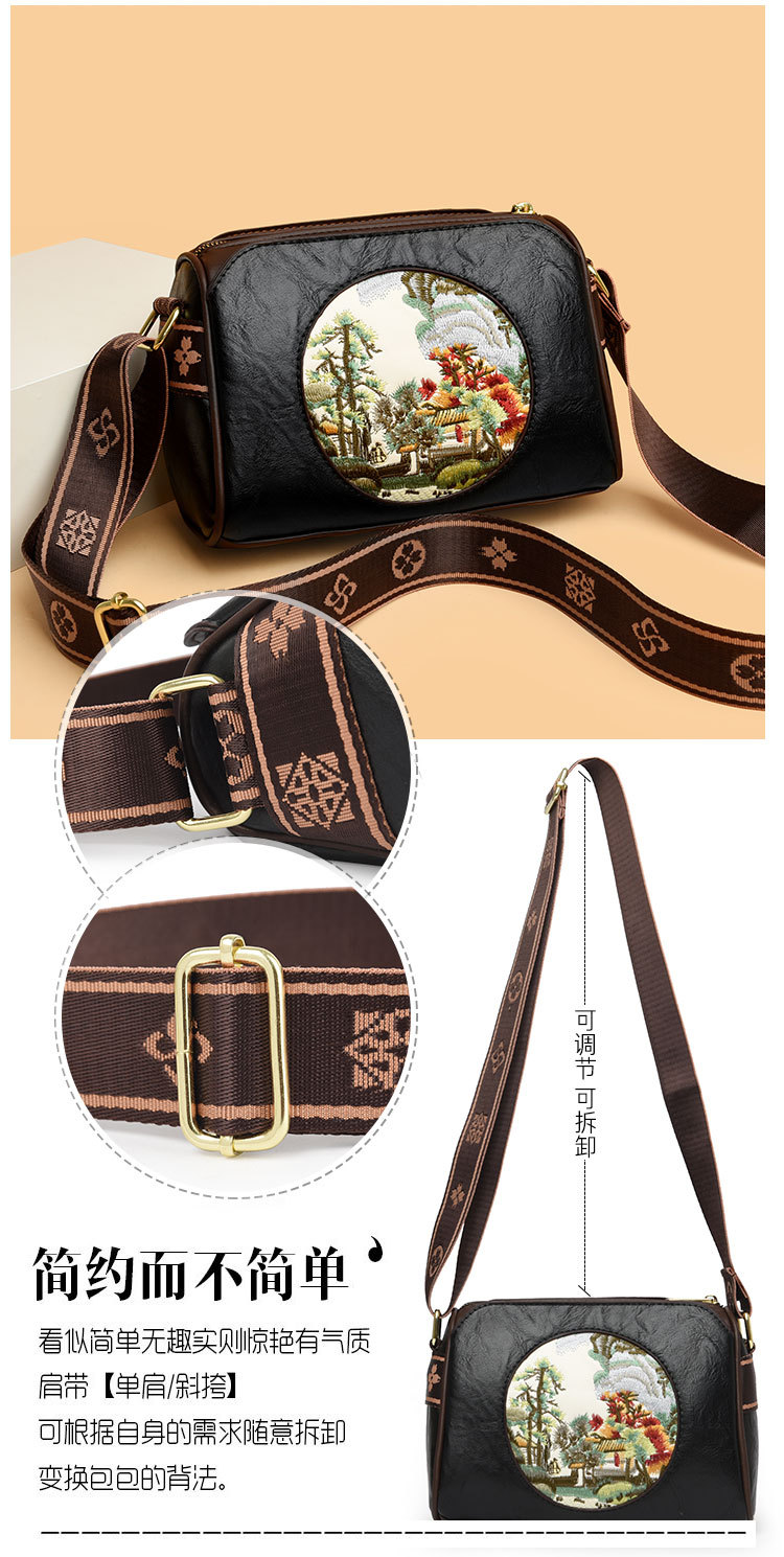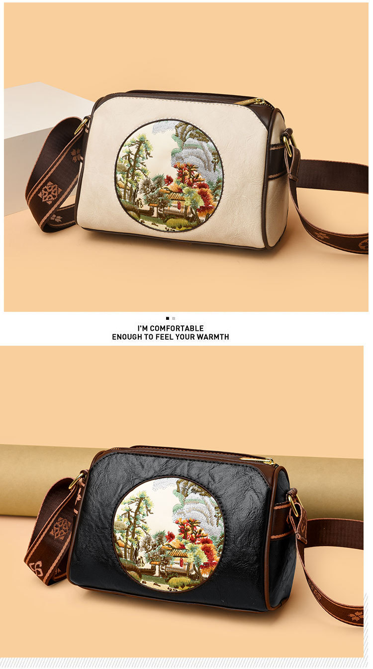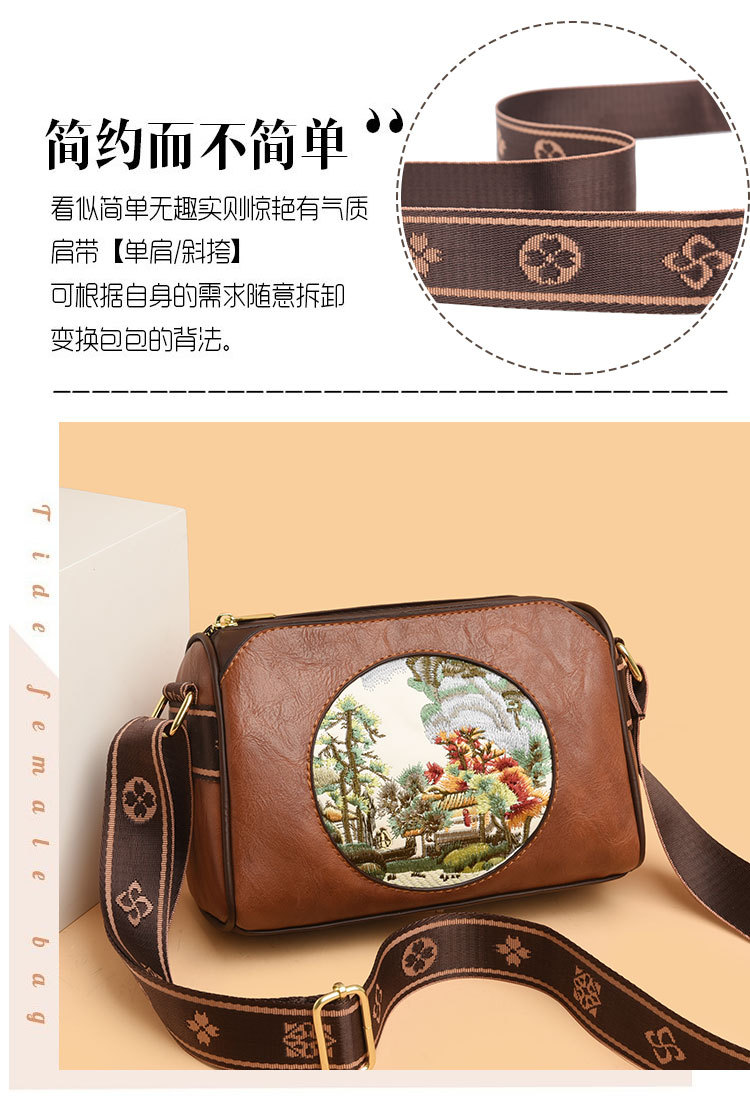 Bolsa de hombro de moda extranjera transfronteriza 2024, nueva bolsa de estilo nacional bordada, bolsa de almohada multicapa de gran capacidad