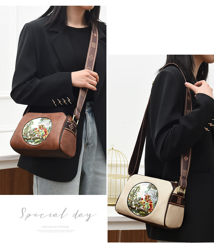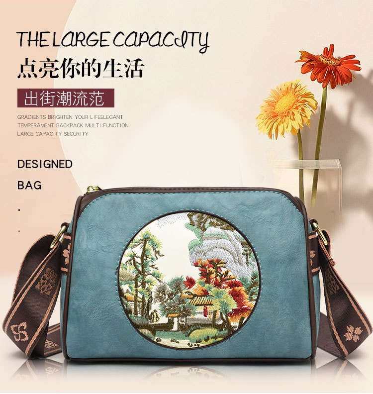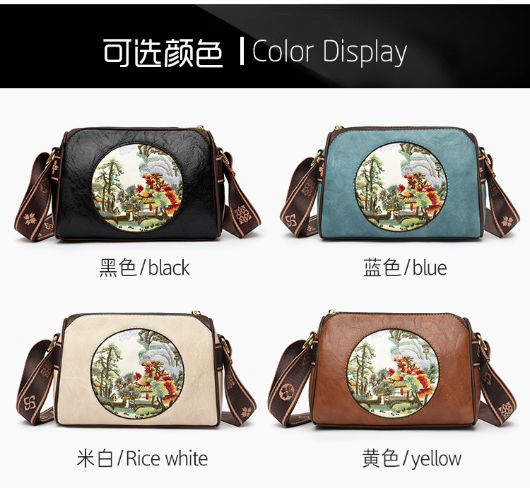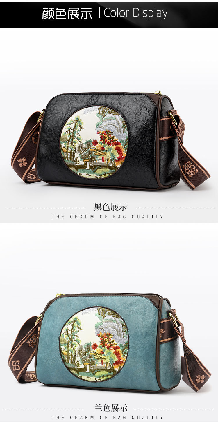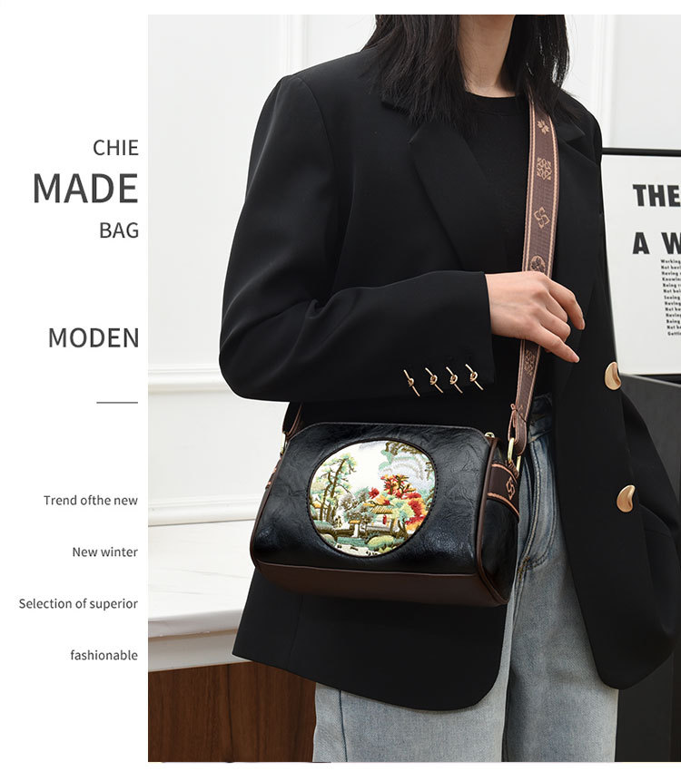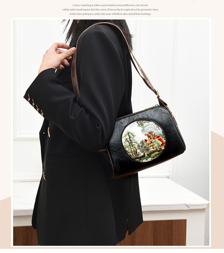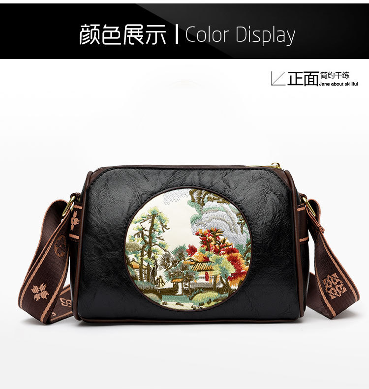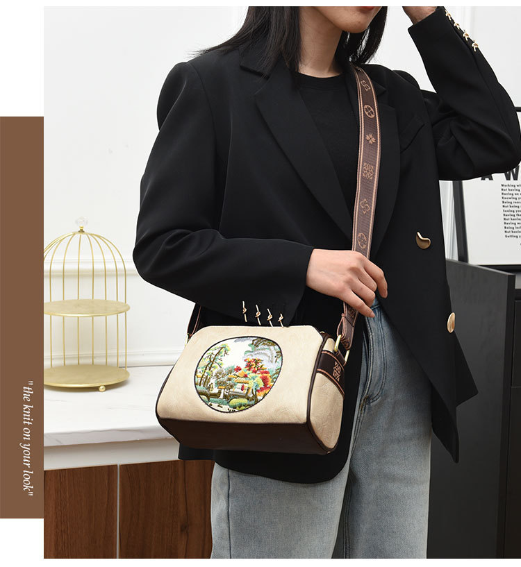 Bolsa de hombro de moda extranjera transfronteriza 2024, nueva bolsa de estilo nacional bordada, bolsa de almohada multicapa de gran capacidad
