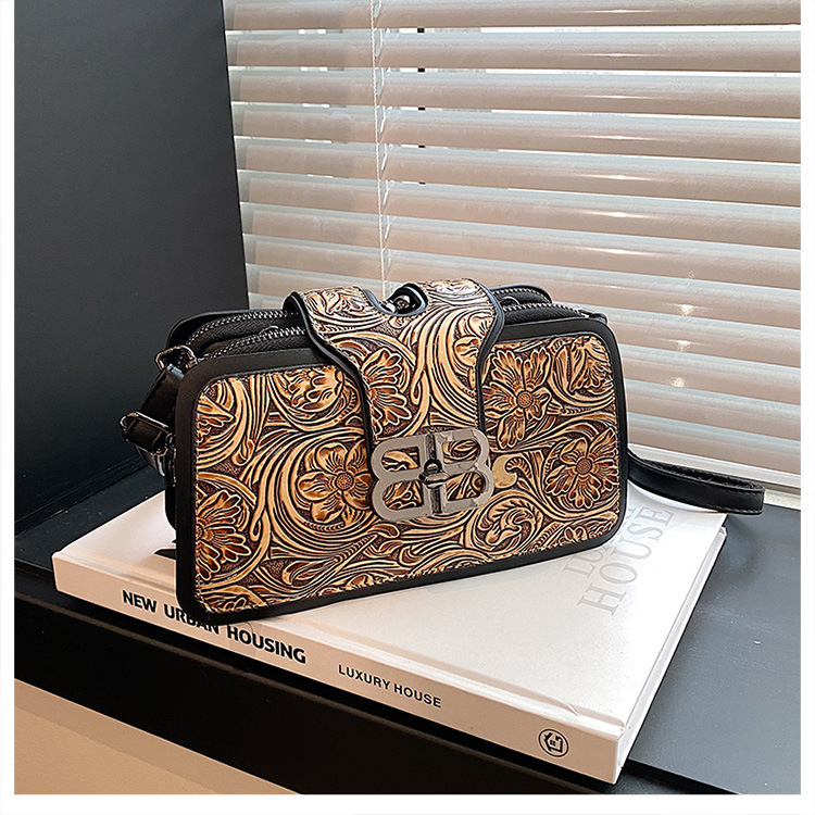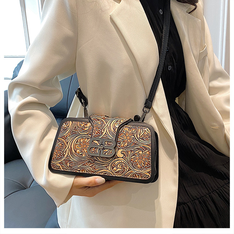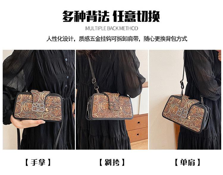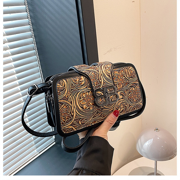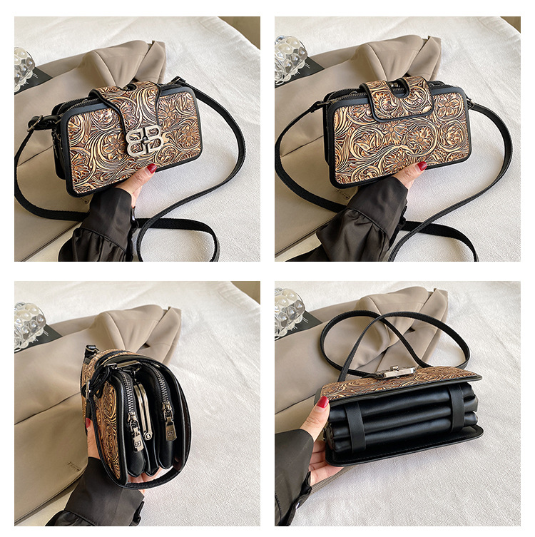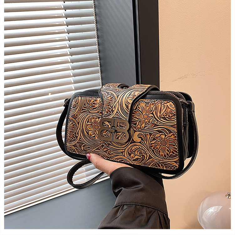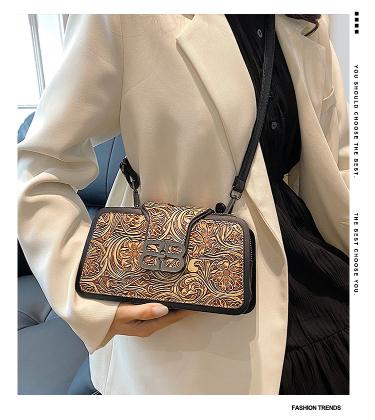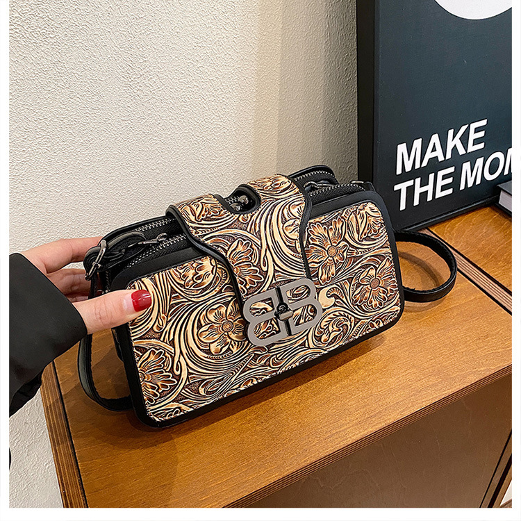 Bolso de mano de lujo retro luz 2024 nueva moda versátil bolso de hombro de mujer relieve dibujado a mano bolso de tres capas