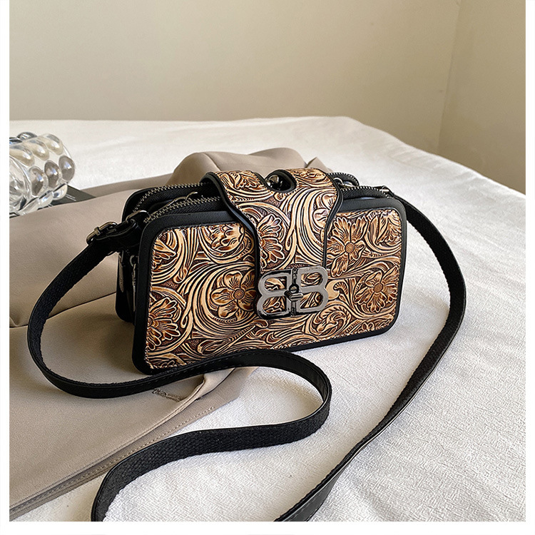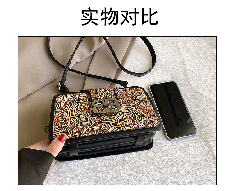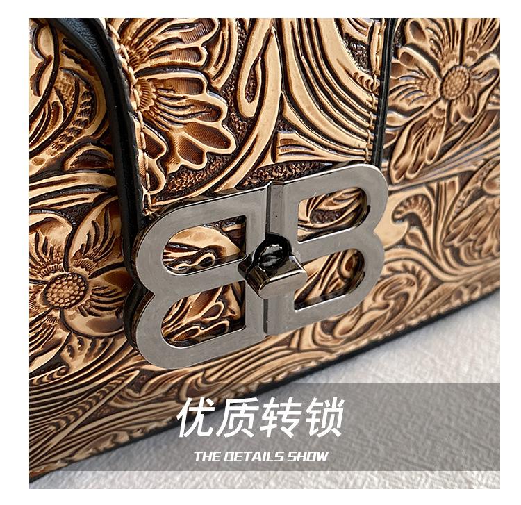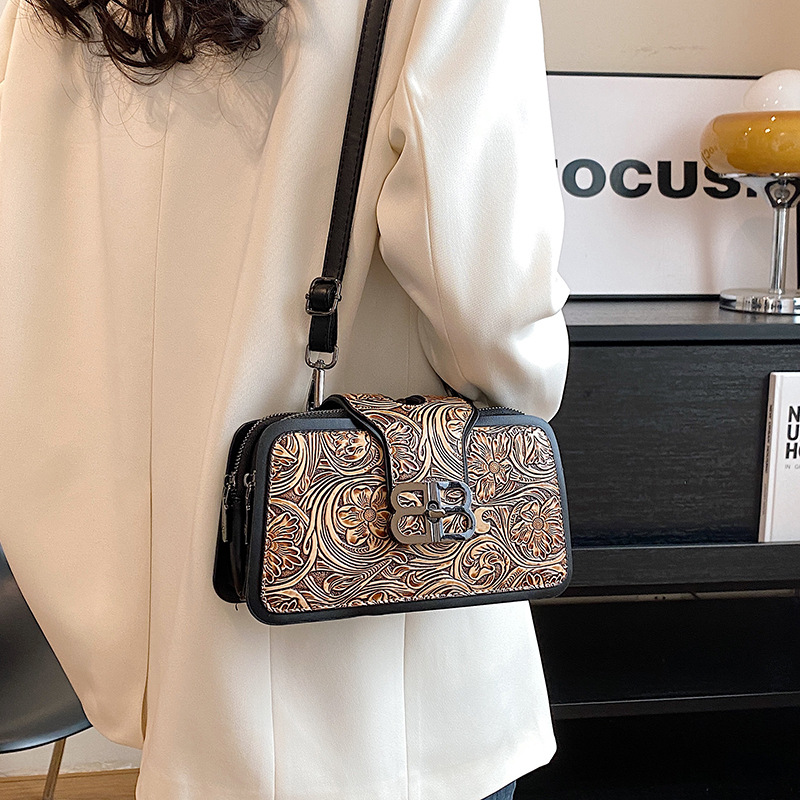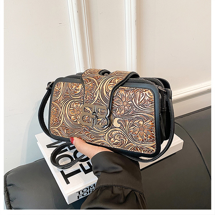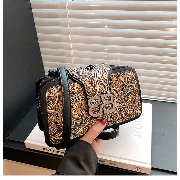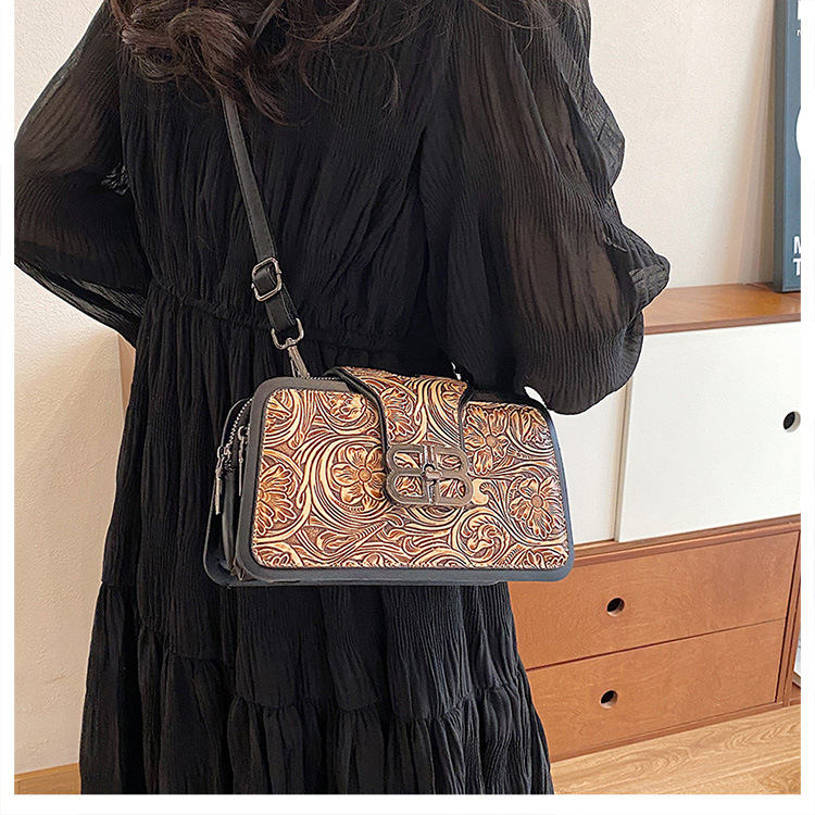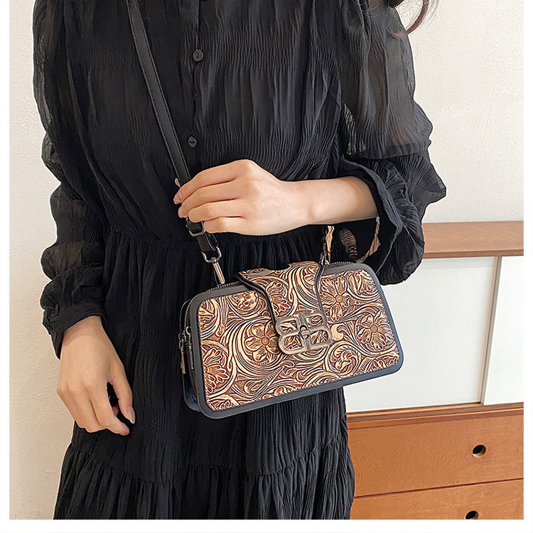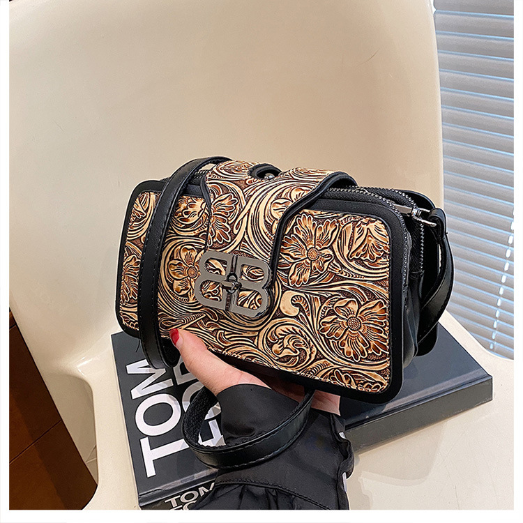 Bolso de mano de lujo retro luz 2024 nueva moda versátil bolso de hombro de mujer relieve dibujado a mano bolso de tres capas