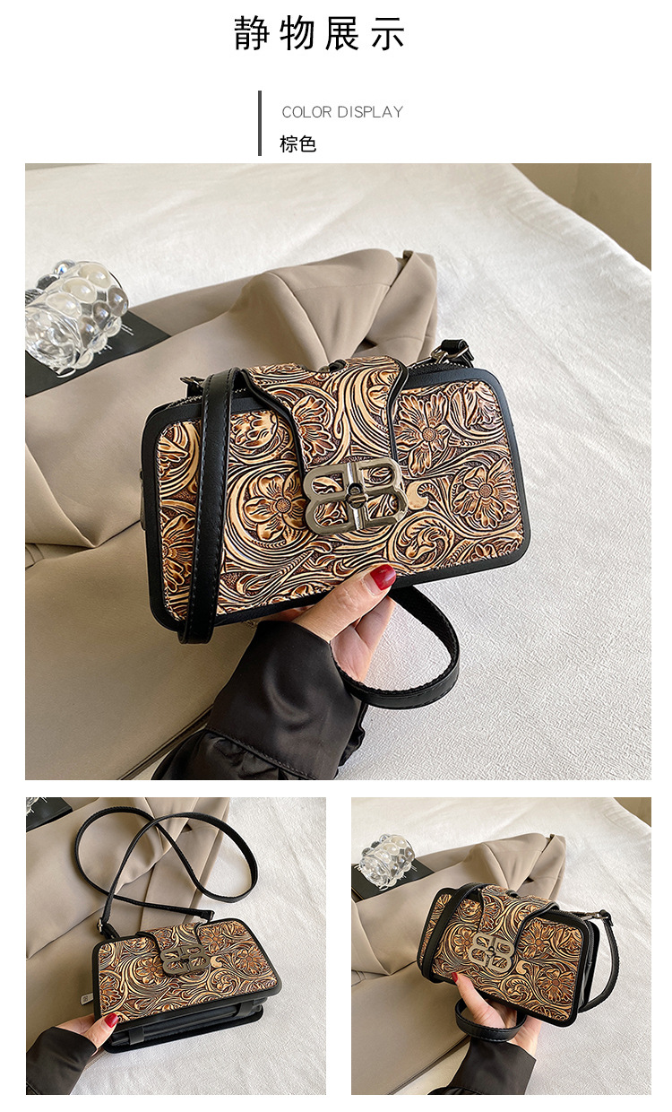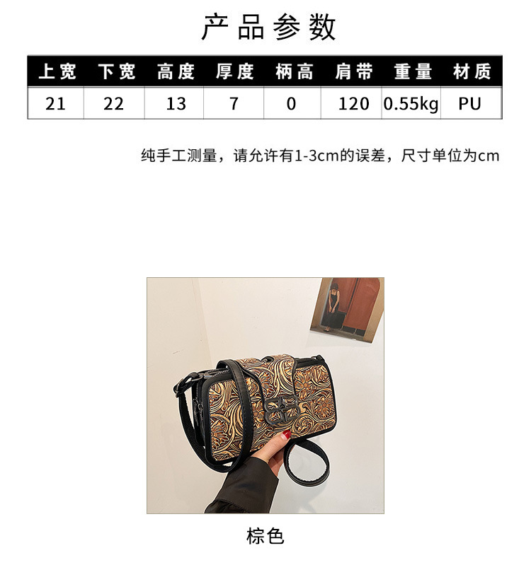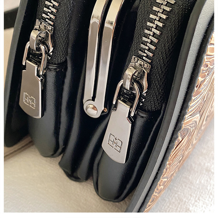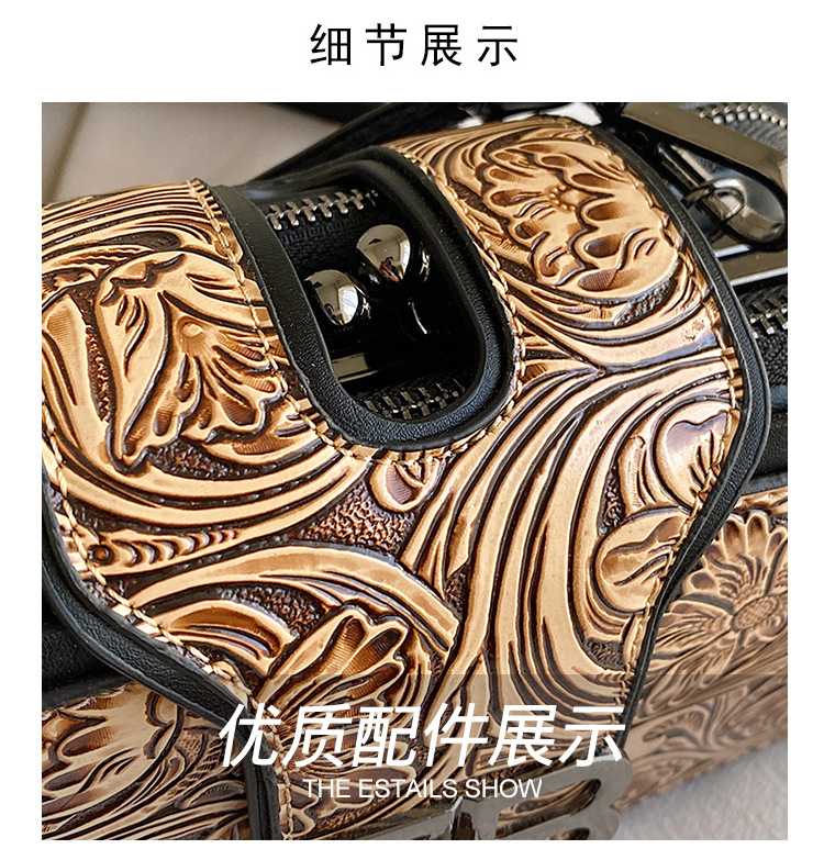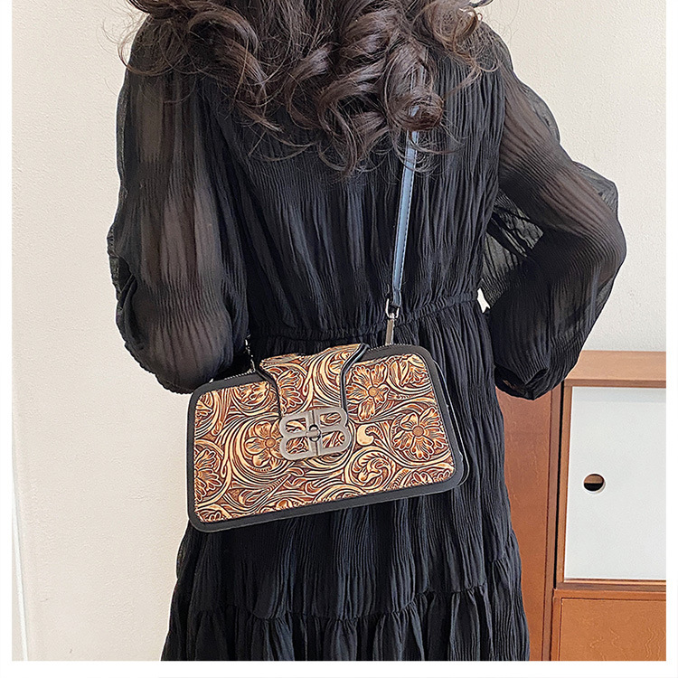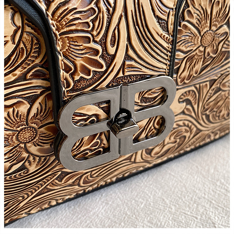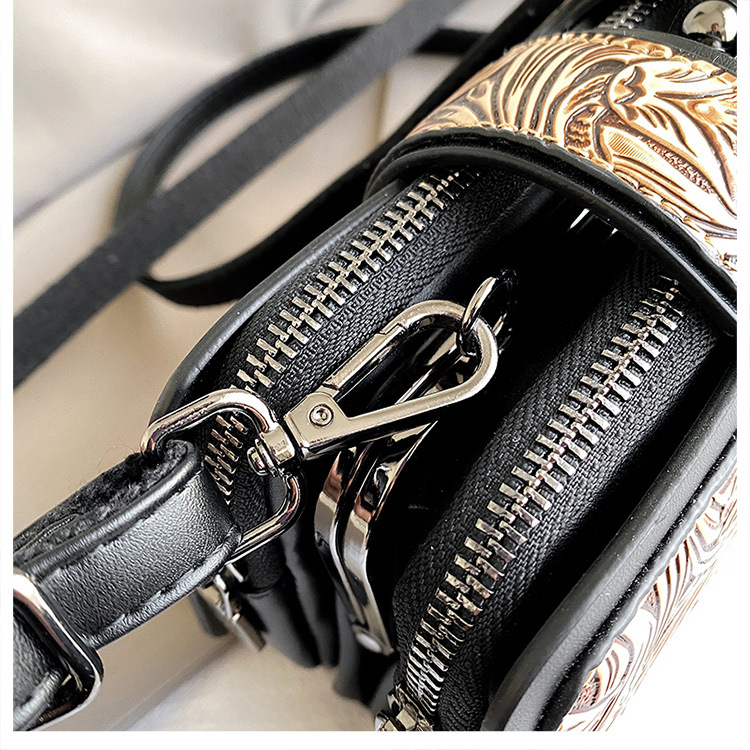 Bolso de mano de lujo retro luz 2024 nueva moda versátil bolso de hombro de mujer relieve dibujado a mano bolso de tres capas