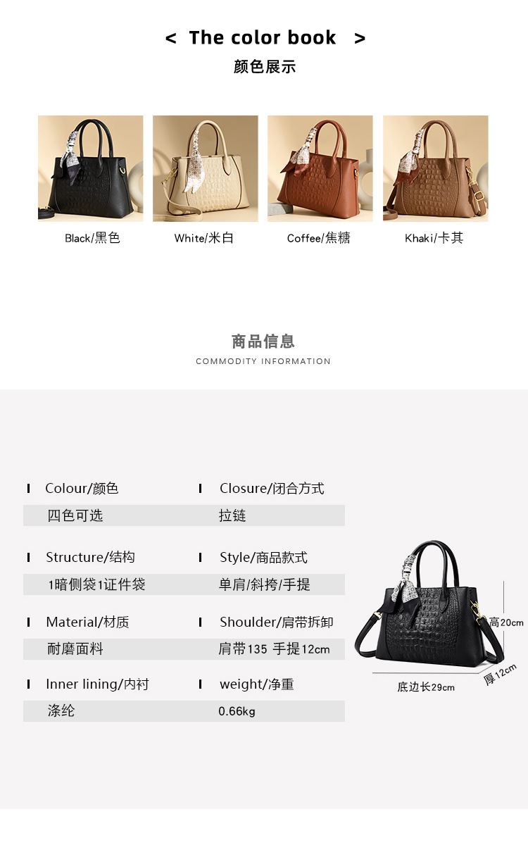 Bolso de mujer nuevo patrón de cocodrilo clásico bolso de mujer transfronterizo Europa y América retro bolso de moda de mujer puede ser un hombro