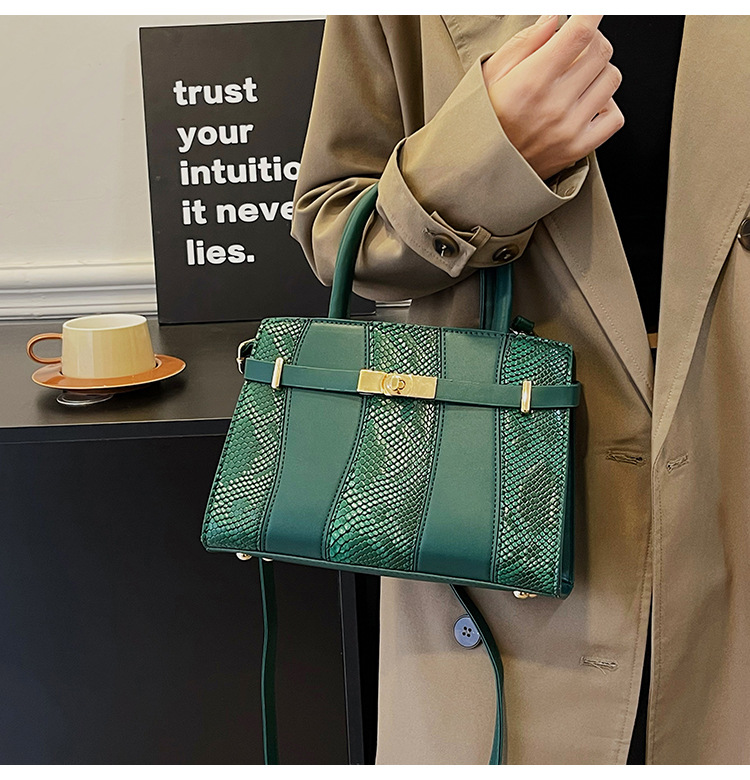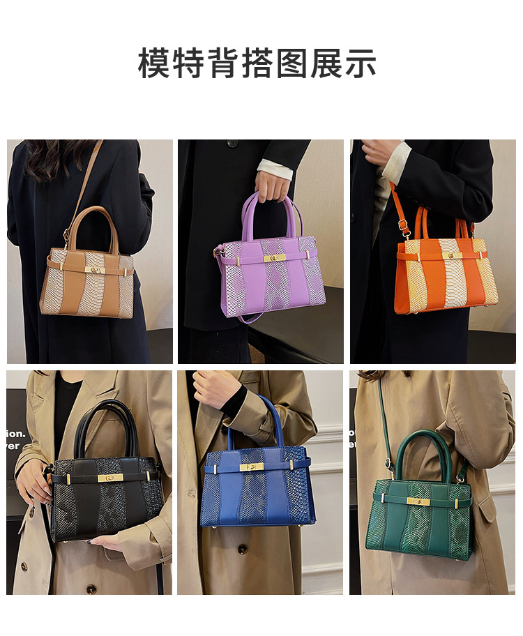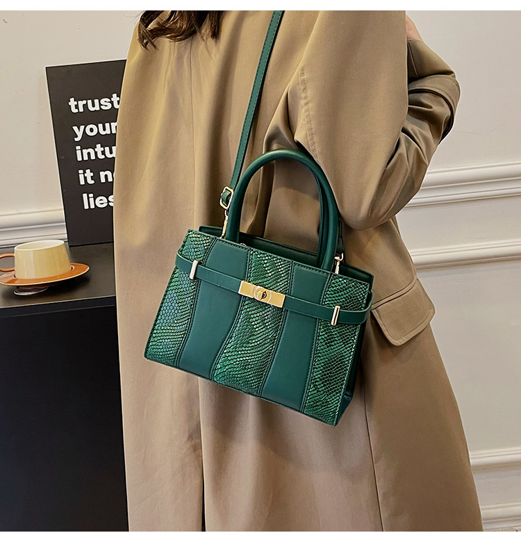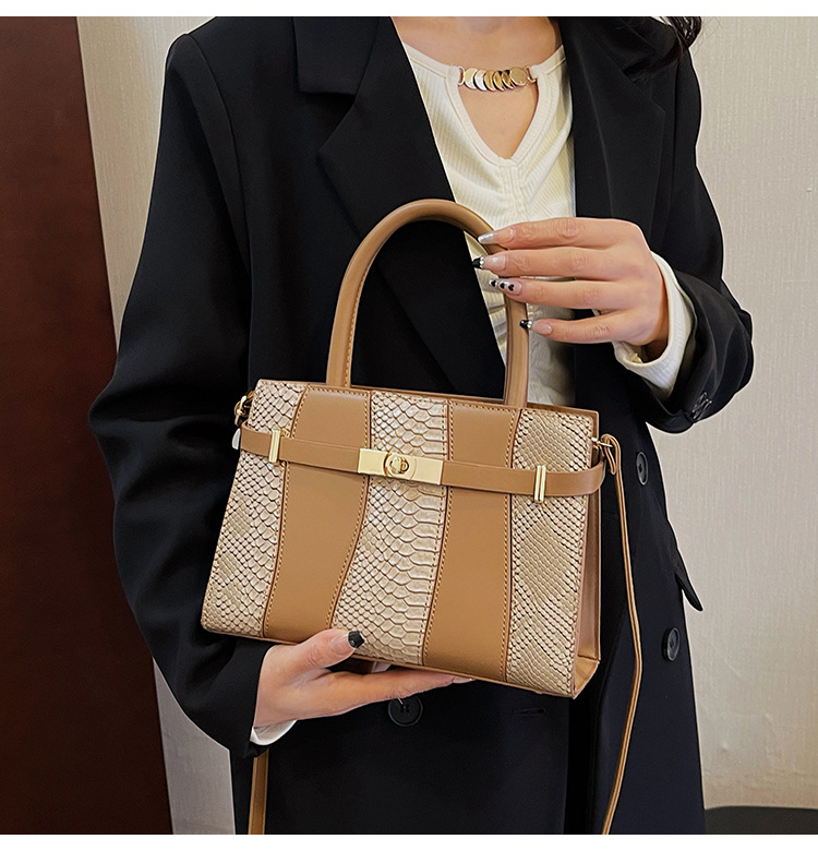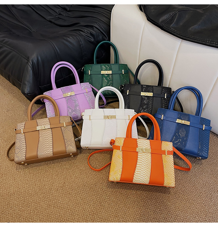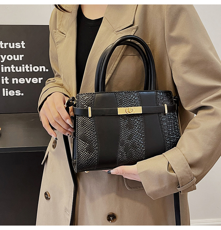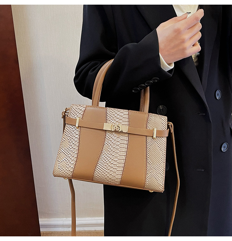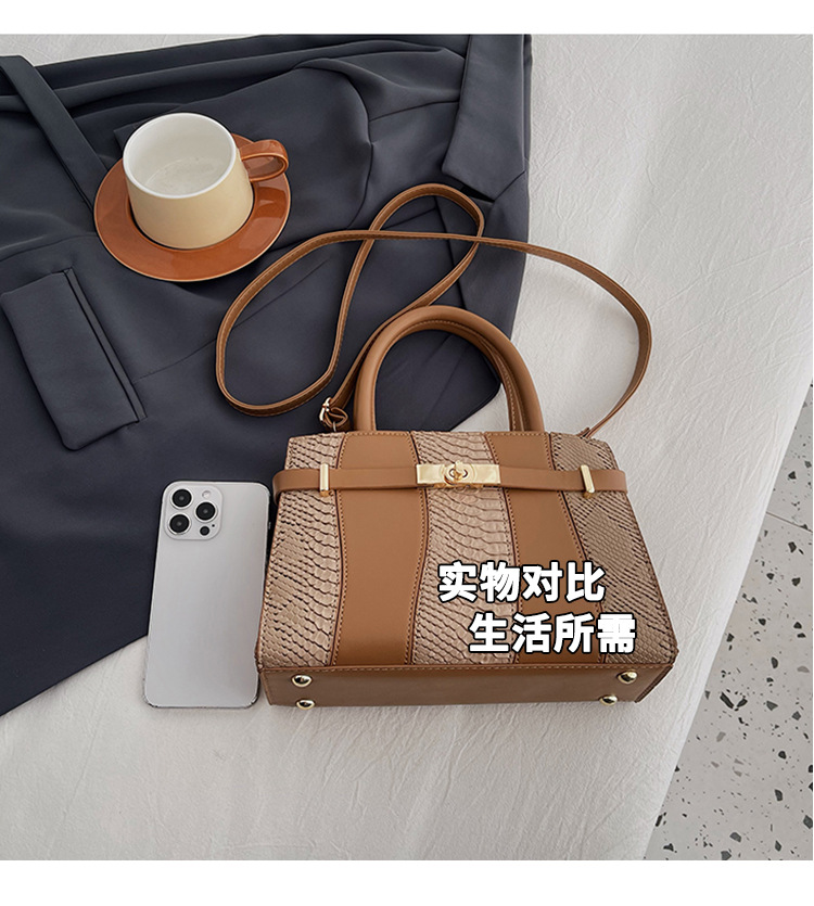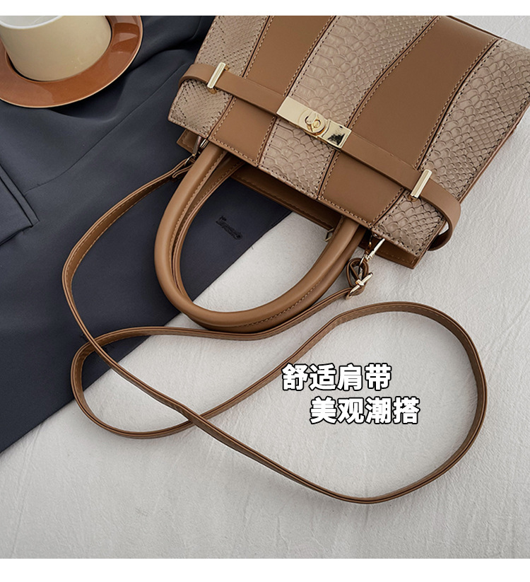 Crocodile Kelly Bag 2024 nuevo bolso de mujer de moda retro, estilo versátil, bolso de hombro con color combinado.