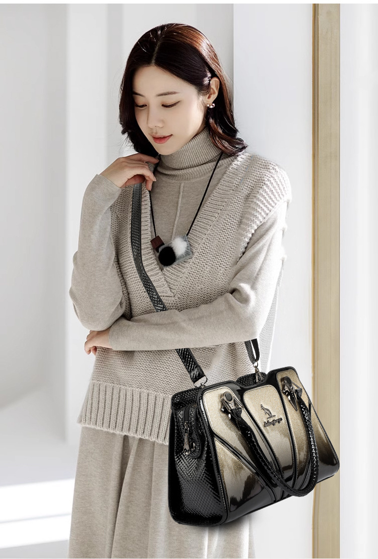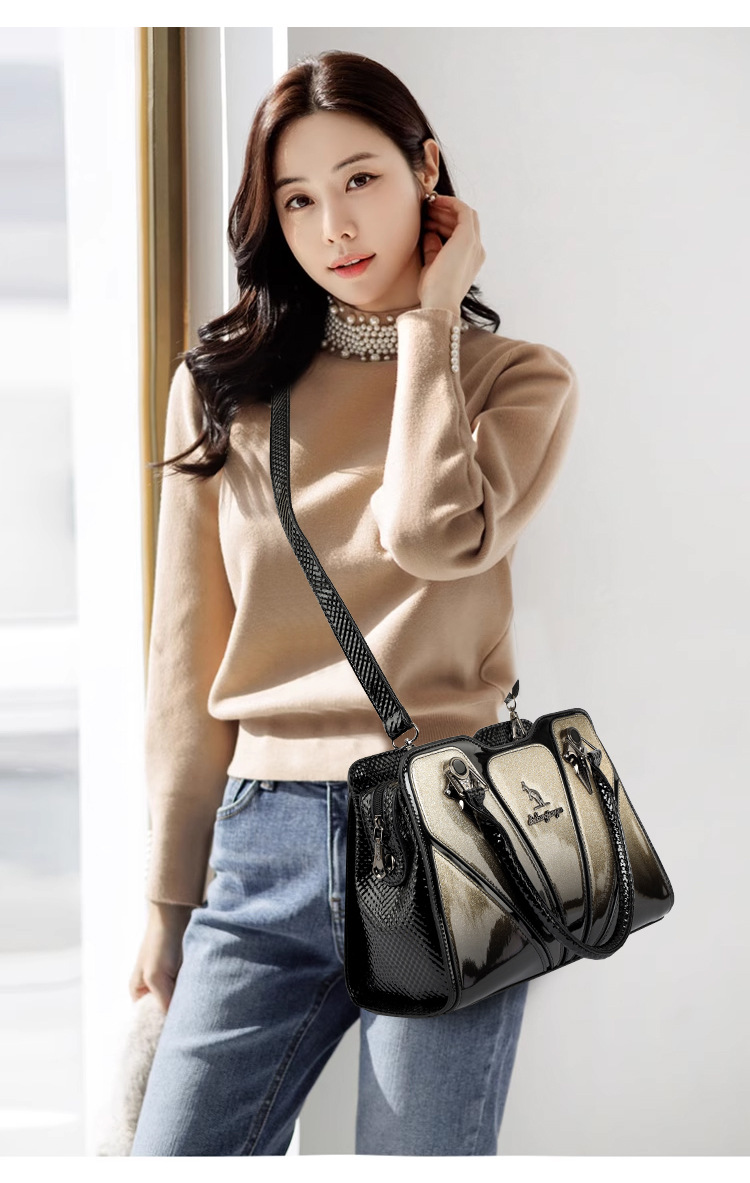 Cross-border 2024 nuevo estilo europeo y americano de alto nivel atmósfera bolsas de mano de mujer lacadas empalmadas bolsas de hombro de mujer