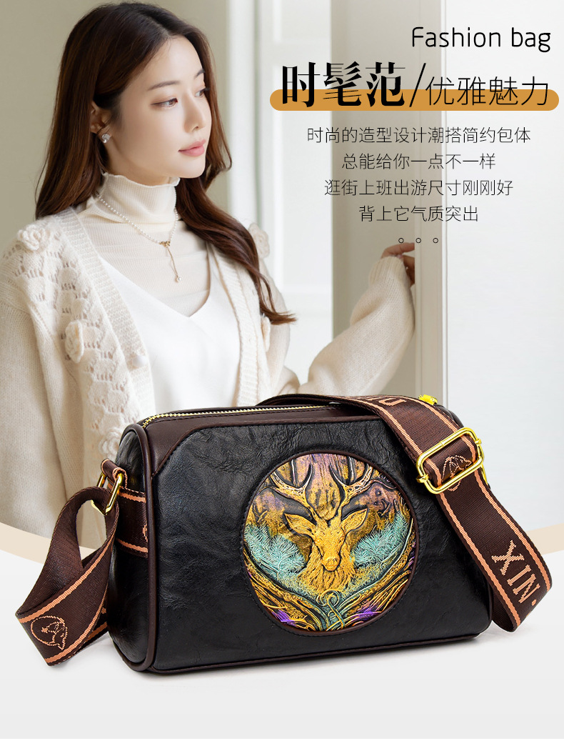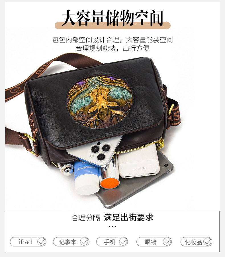 Bolso de mujer transfronterizo nuevo estilo nacional artístico bolso de Madre en relieve de moda bolso de hombro de alto sentido bolso de mensajero de temperamento versátil