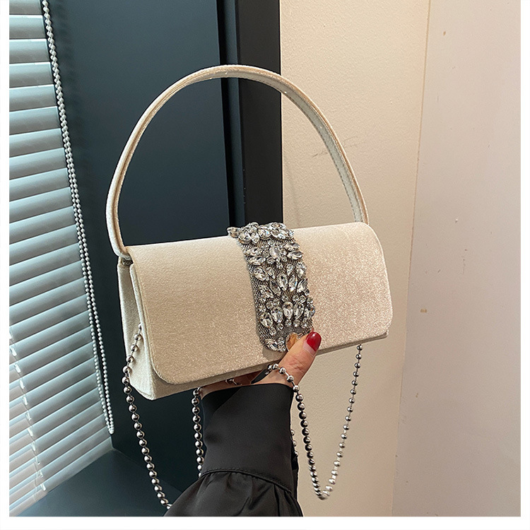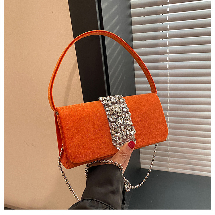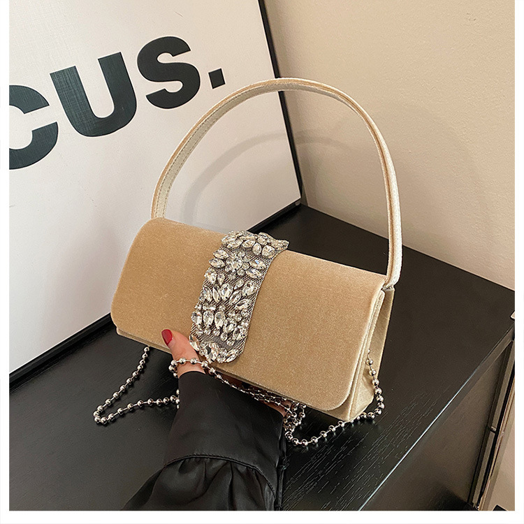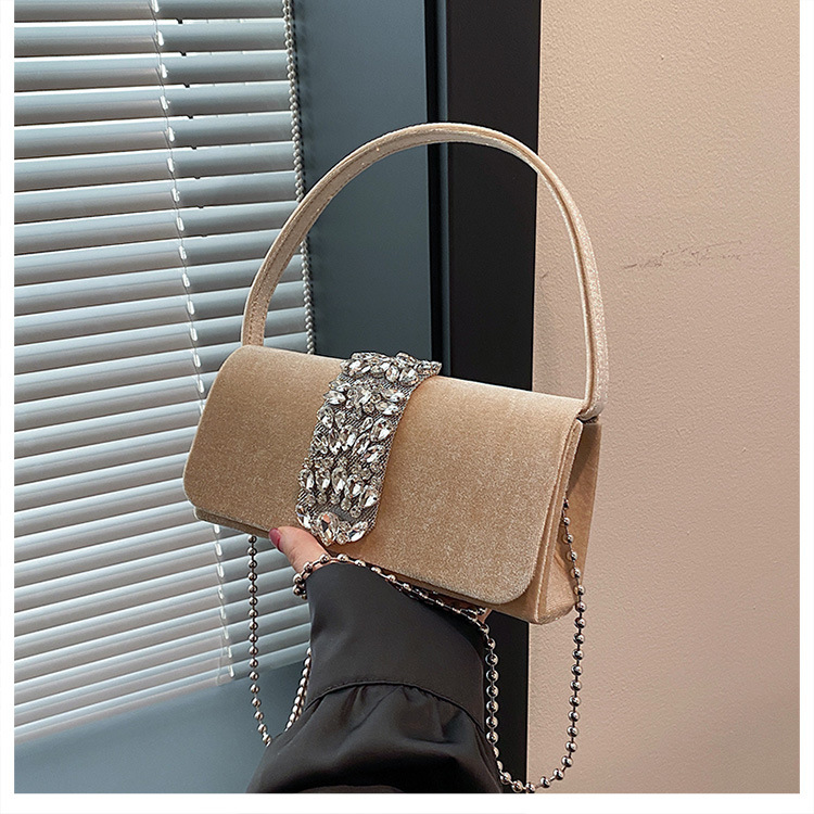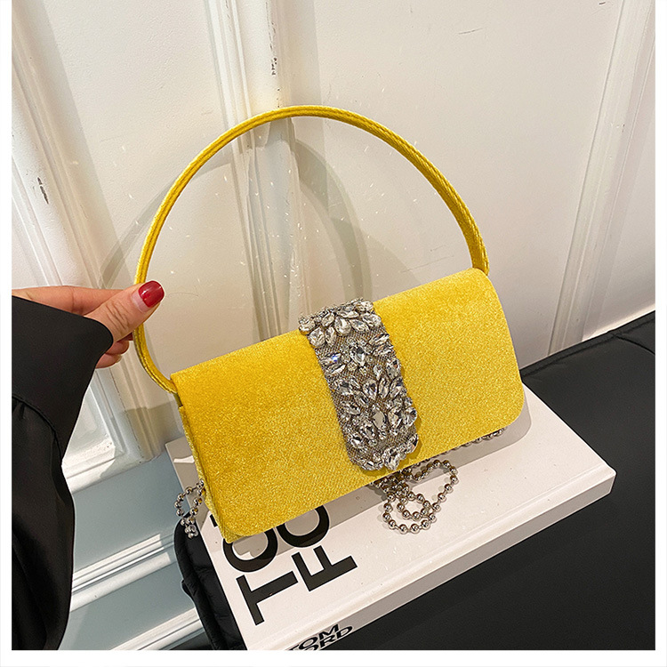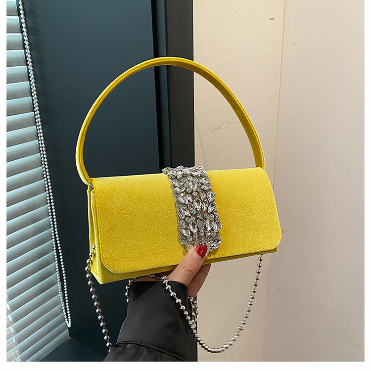 Bolsa de banquete retro francés rhinestone brillante pequeña bolsa cuadrada de gran capacidad simple bolsa de las axilas de color caramelo bolsa de mensajero de estilo occidental
