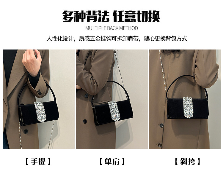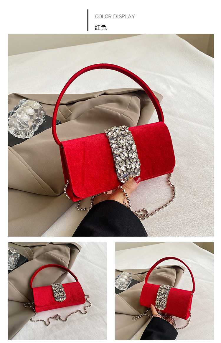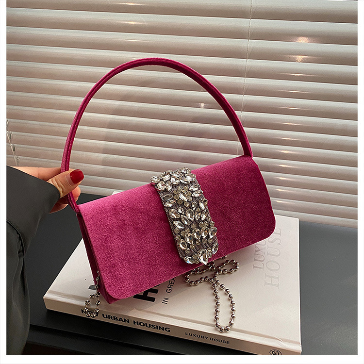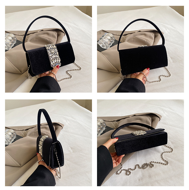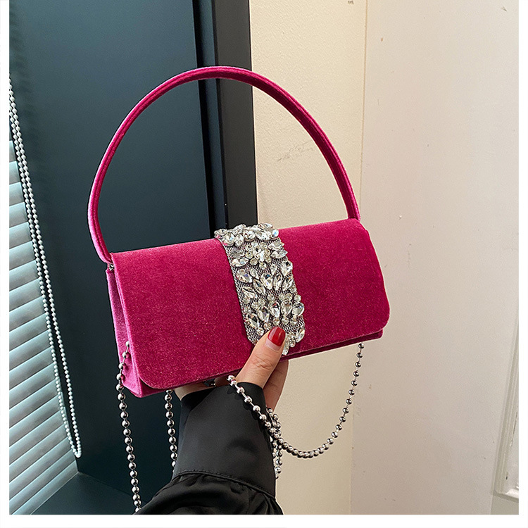 Bolsa de banquete retro francés rhinestone brillante pequeña bolsa cuadrada de gran capacidad simple bolsa de las axilas de color caramelo bolsa de mensajero de estilo occidental