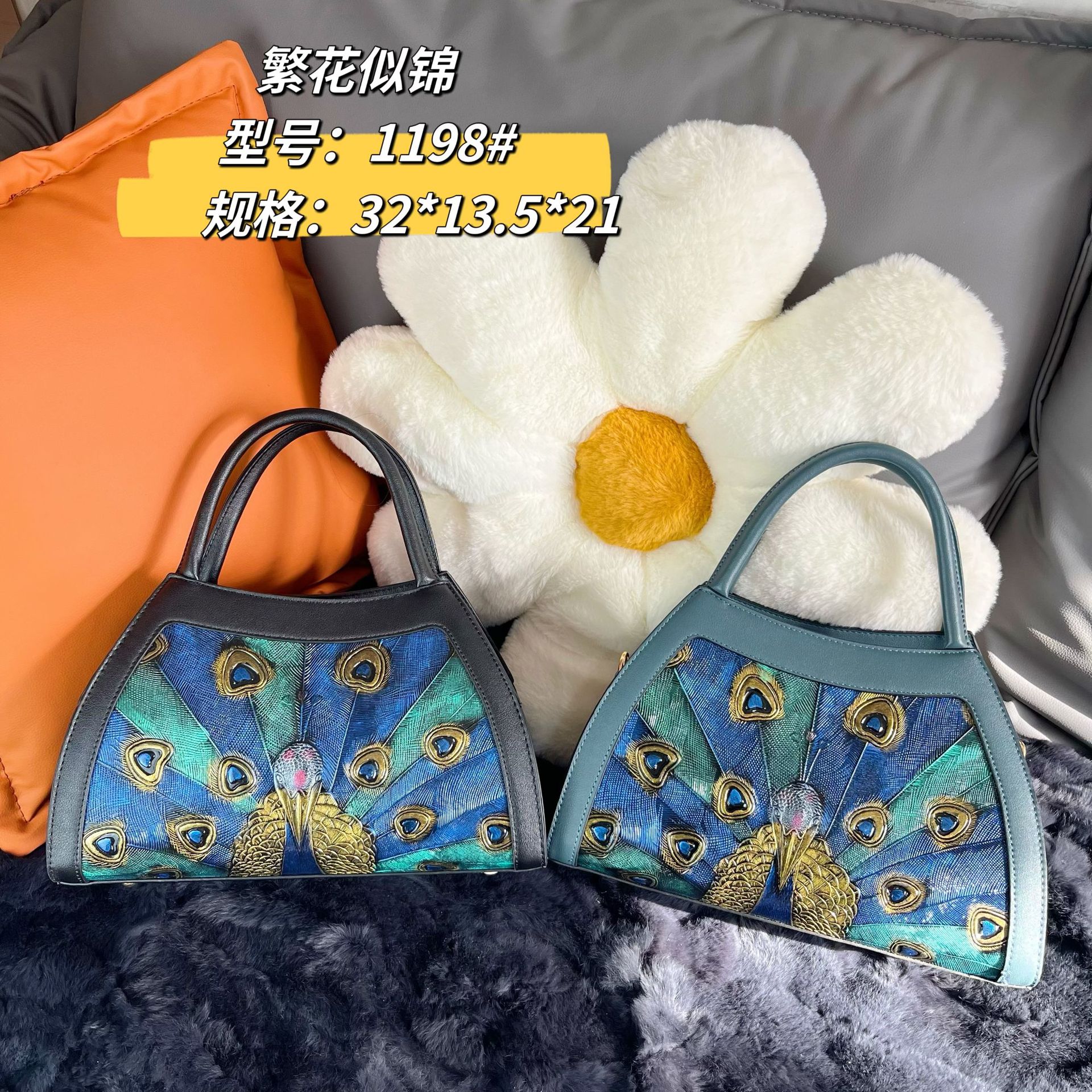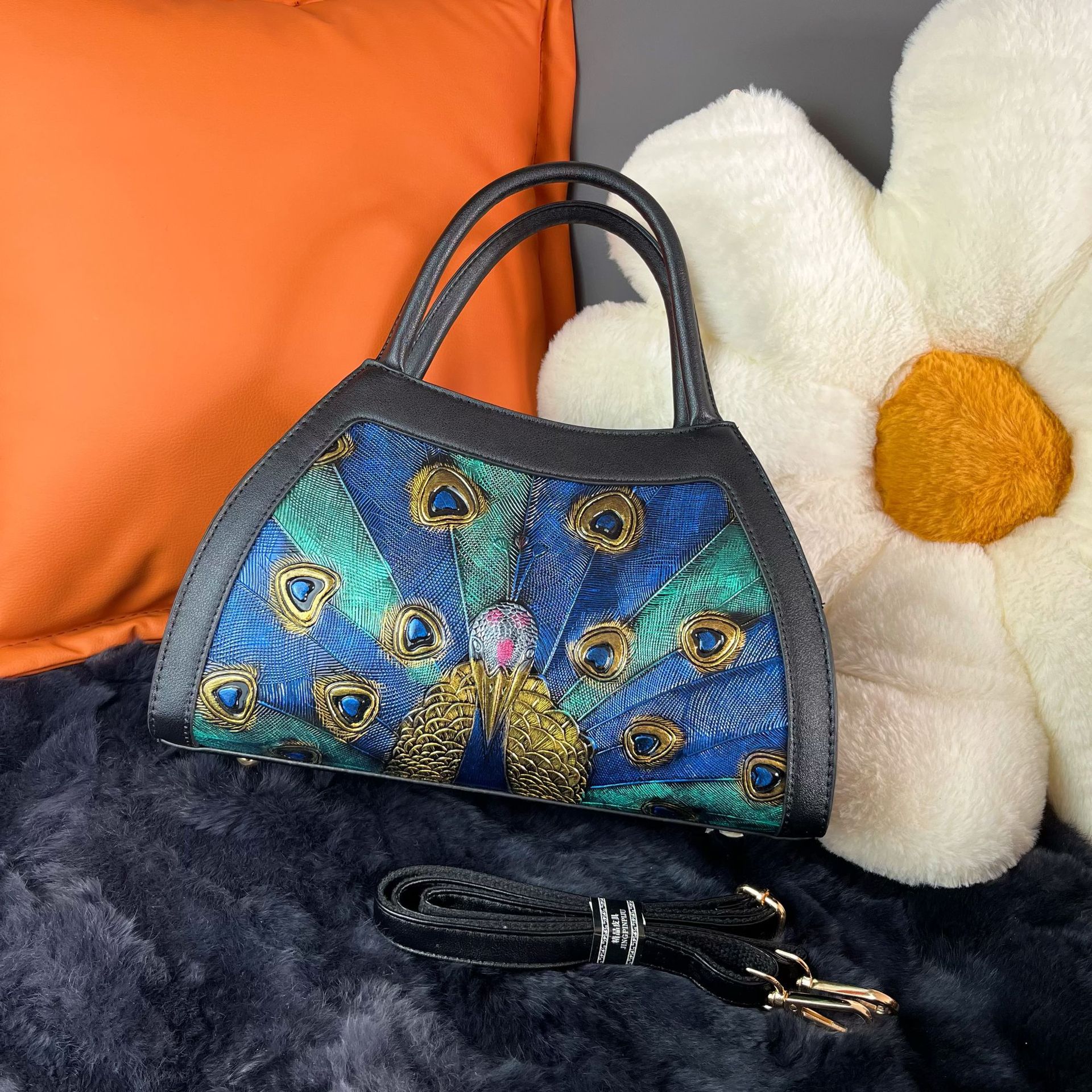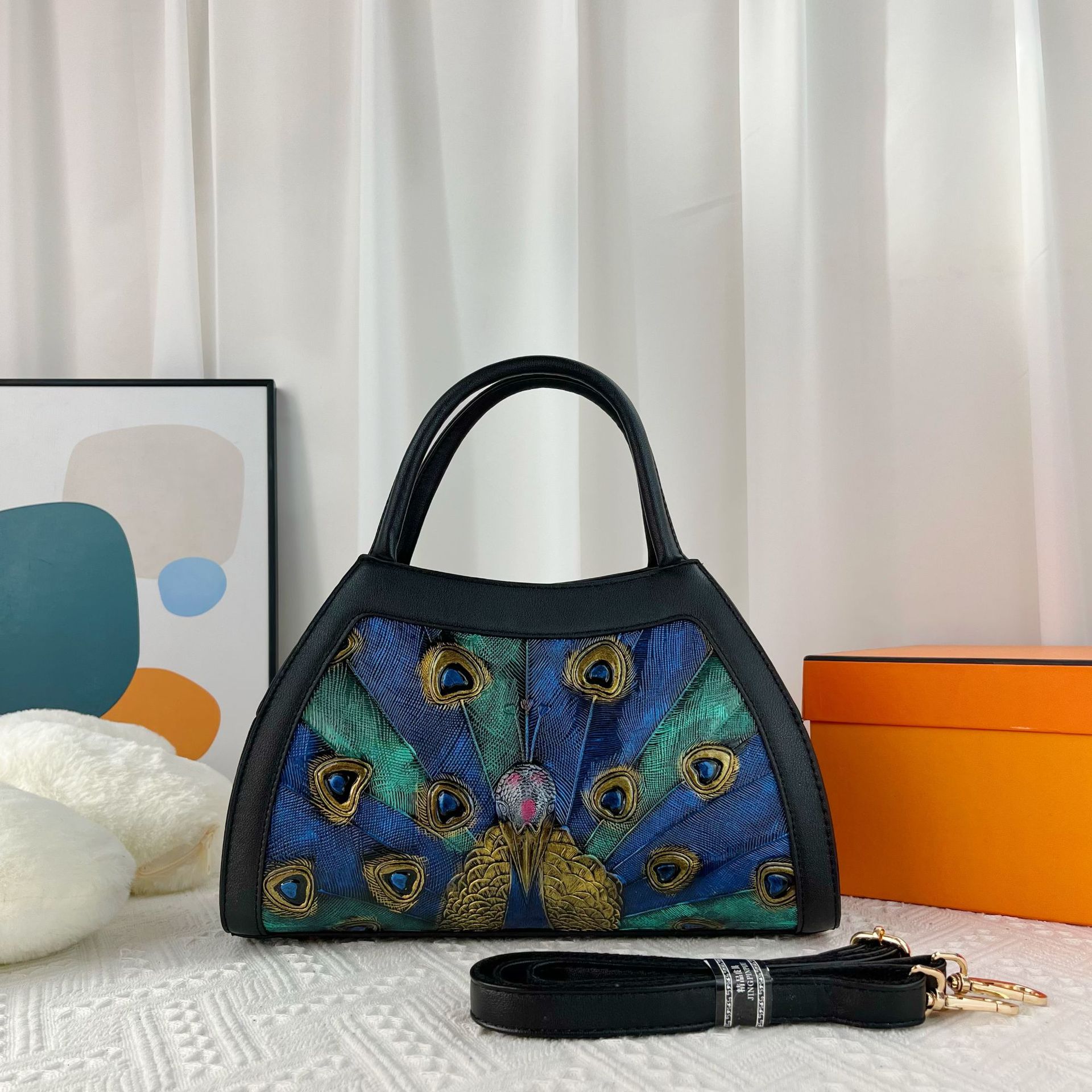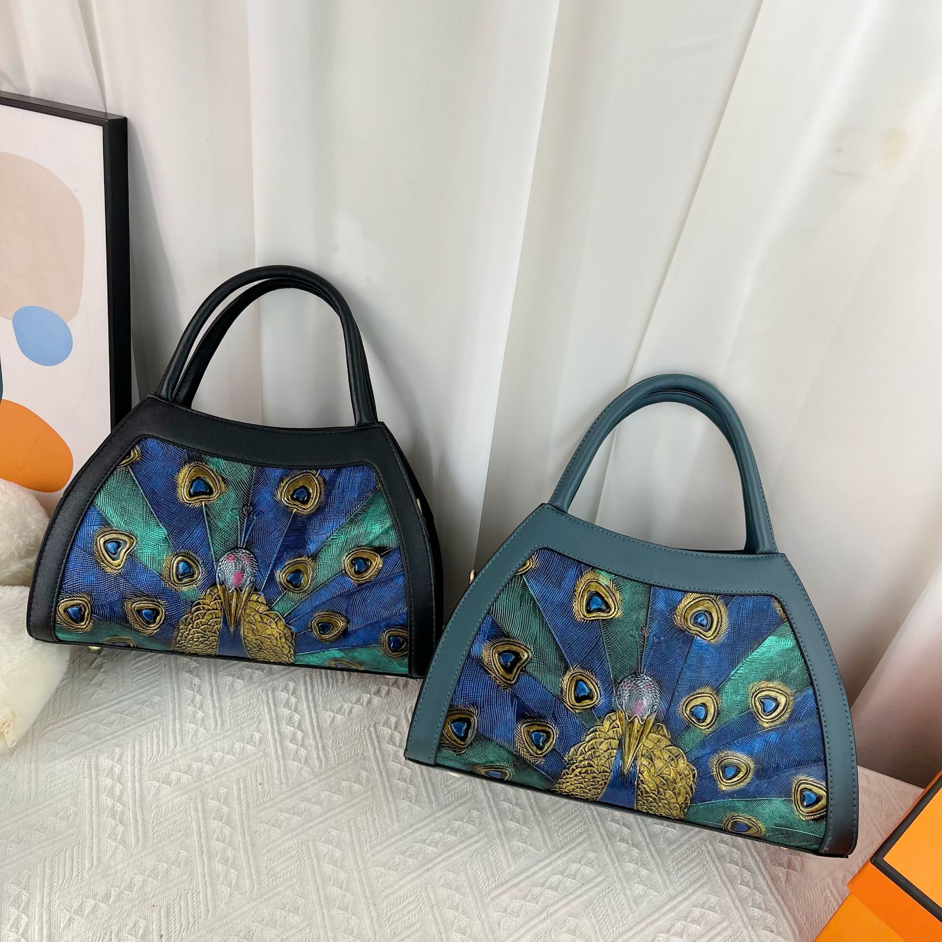 Bolsa de bolso elegante de lujo ligero 2023 nueva moda bolsa de cuero suave rosa patrón de Pavo Real Simple bolsa de mensajero del hombro