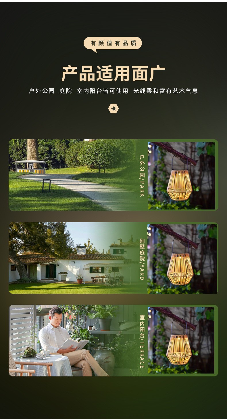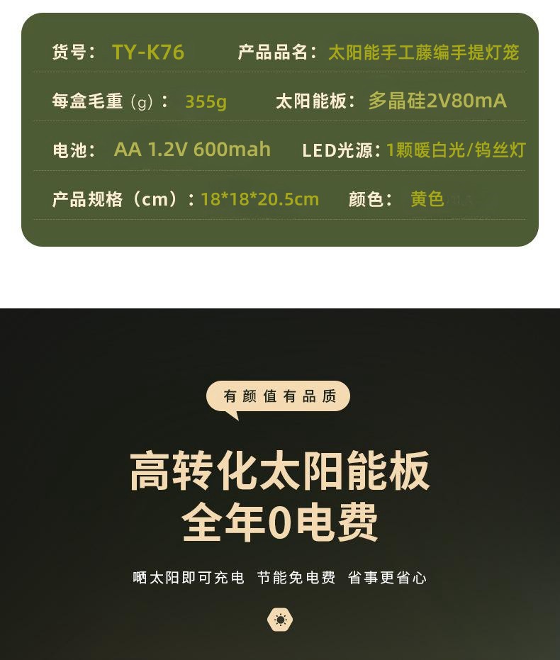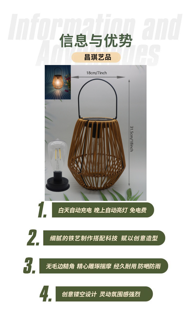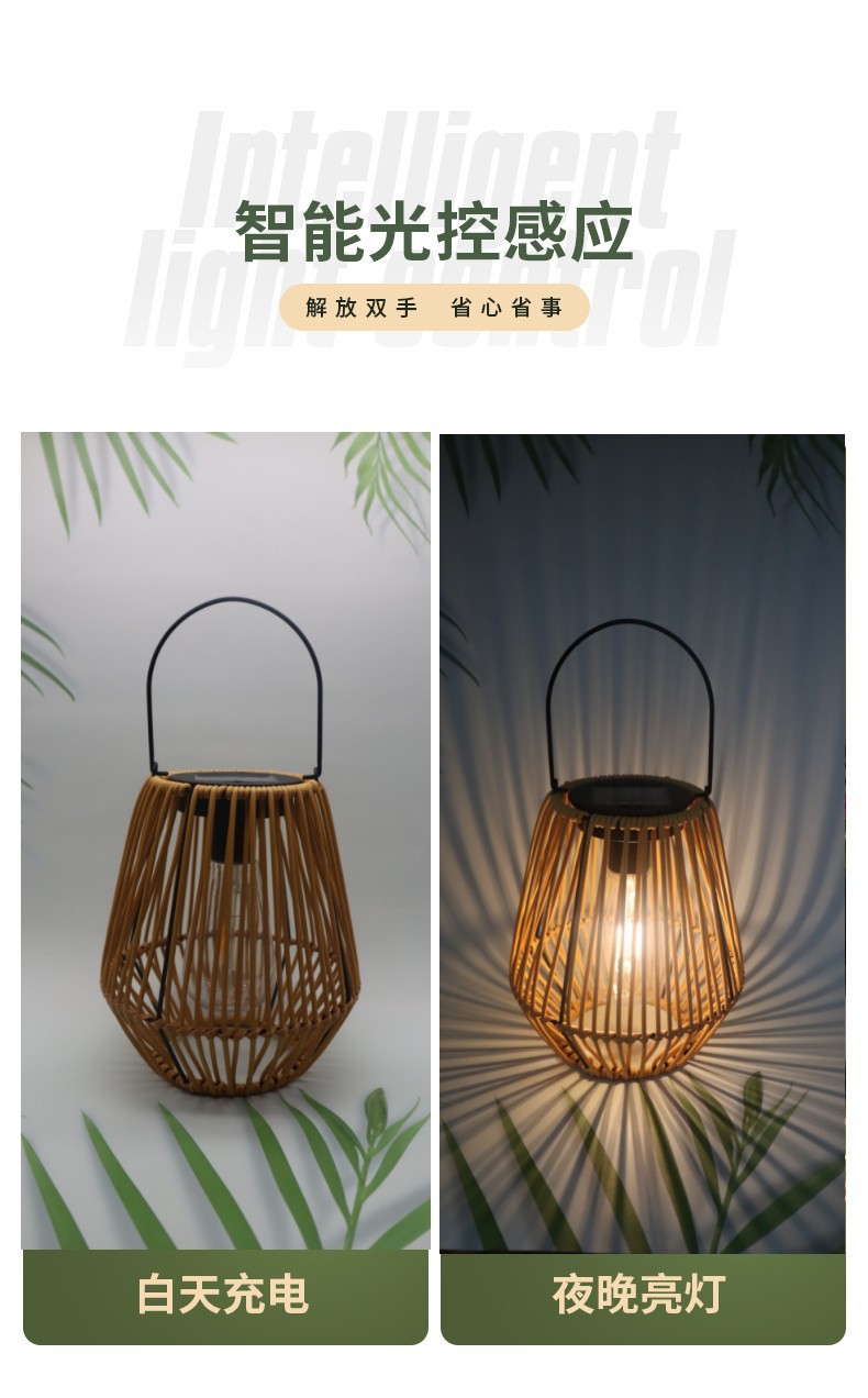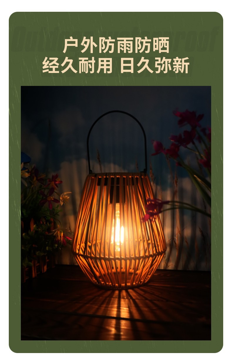 Nuevo comercio exterior transfronterizo solar tejido de ratán camping al aire libre casa patio jardín pabellón restaurante lámpara de patio led