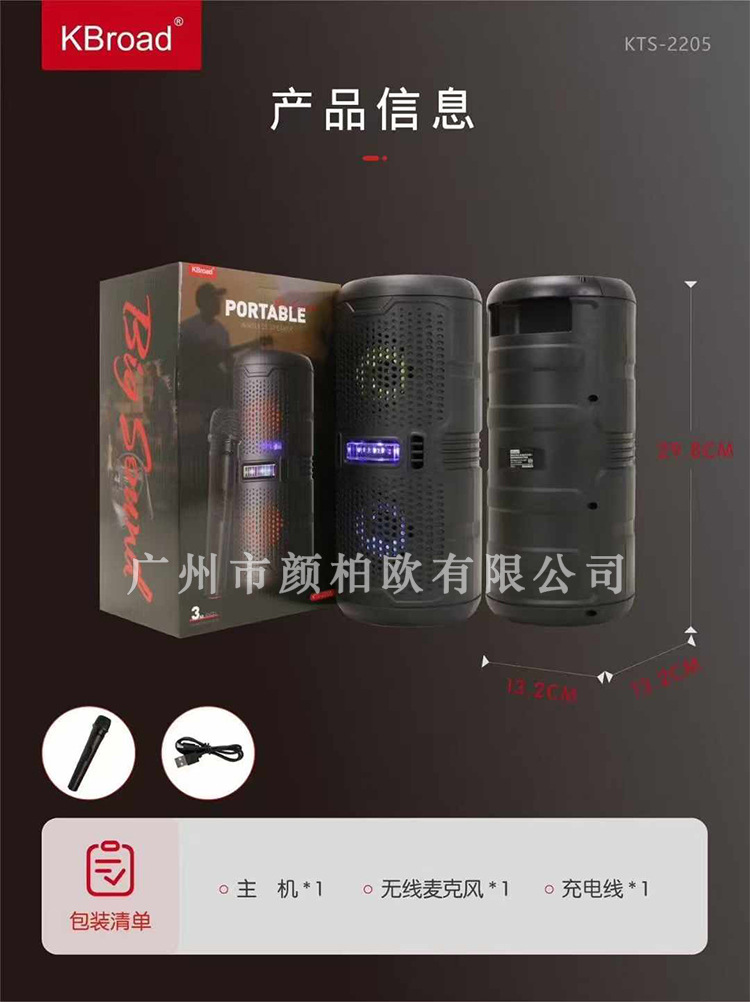 Venta directa de fábrica KTS al por mayor KTS-2205 al aire libre portátil doble altavoz Bluetooth inalámbrico de 3 pulgadas