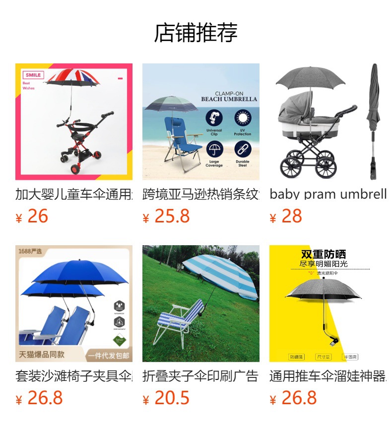 Sombrilla de Playa con Abrazadera para Silla de Playa, Silla de Pesca, Silla Reclinable, Sombrilla para la Playa, Éxito de Ventas en Amazon Internacional