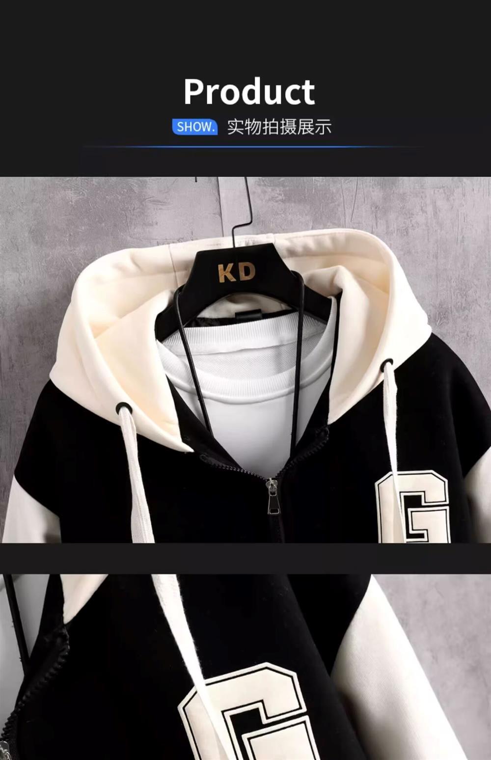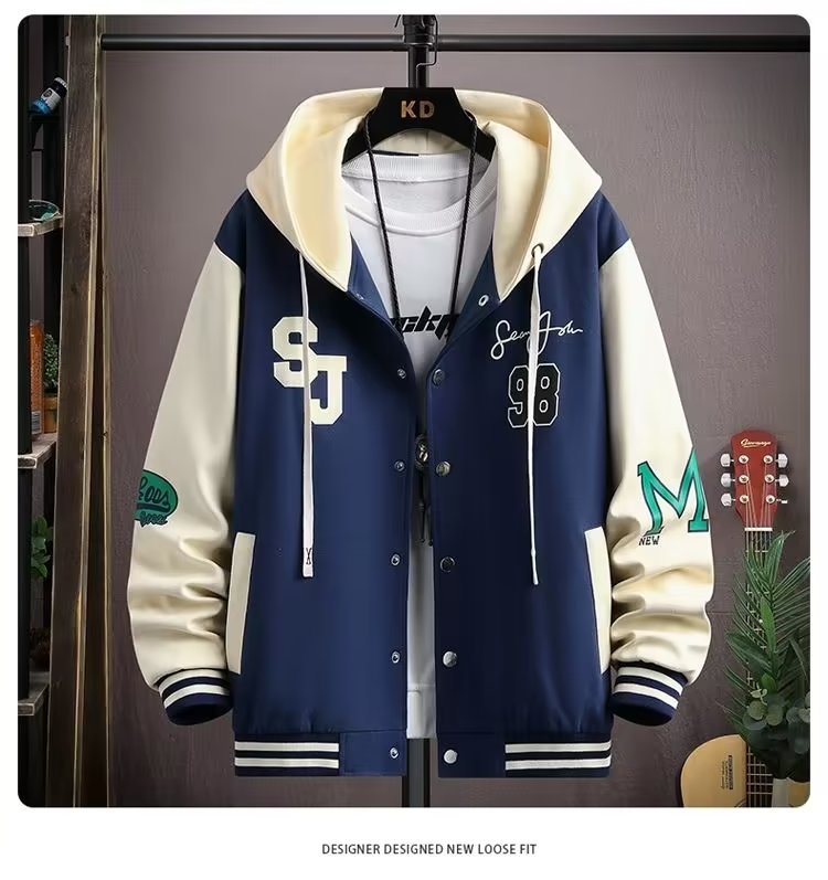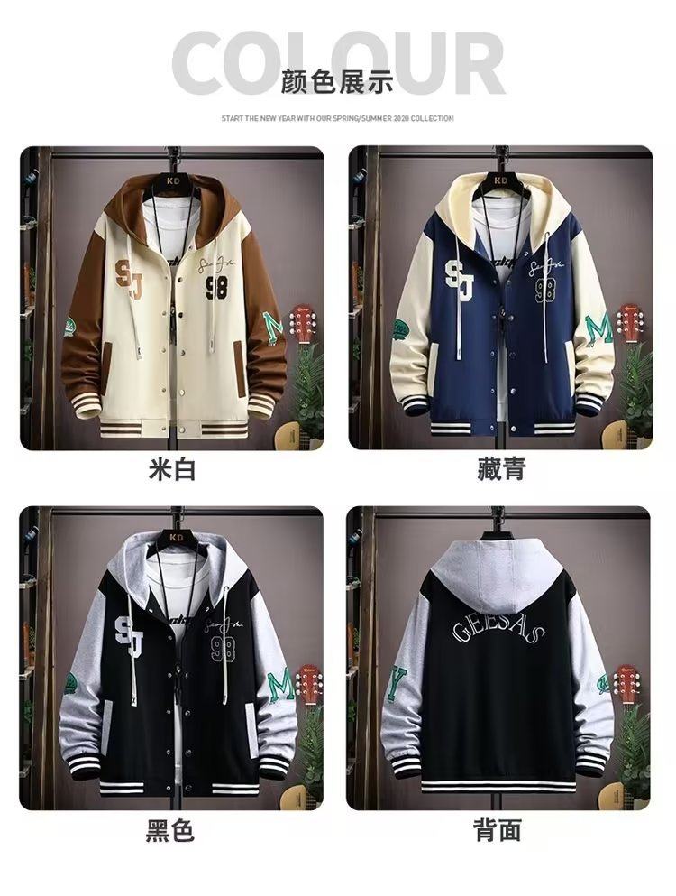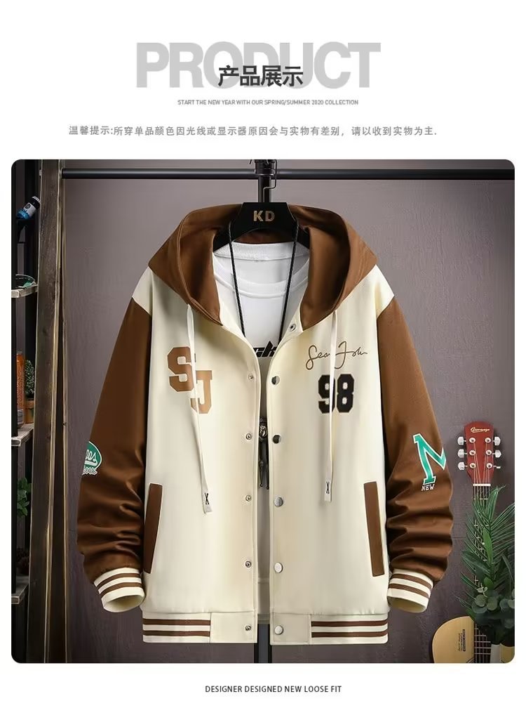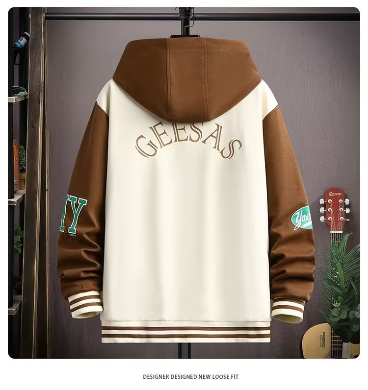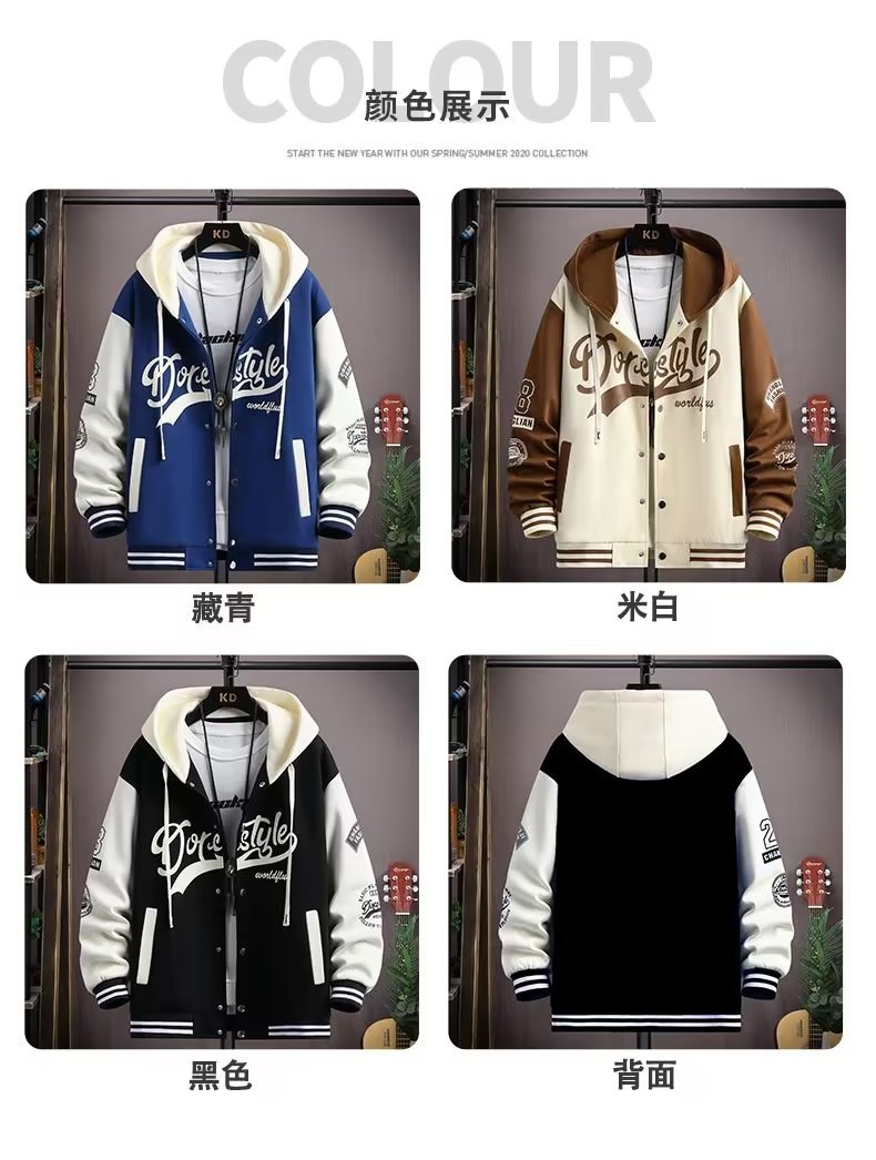 Traje de suéter de primavera y otoño, tendencia masculina, chaqueta con capucha suelta de talla grande para hombre, uniforme de béisbol deportivo atractivo para adolescentes