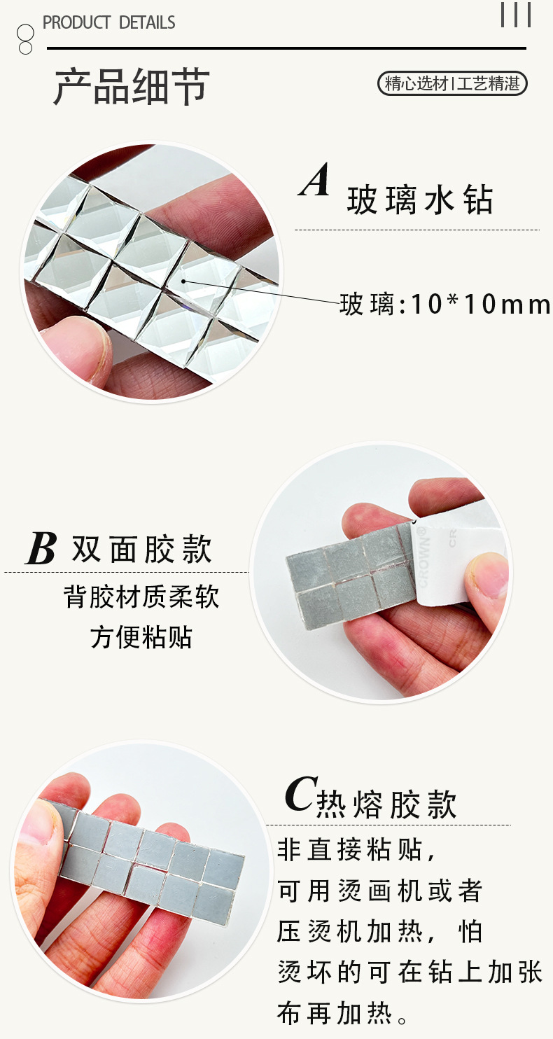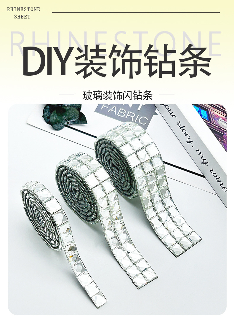 Nueva venta caliente de taladro de agua de vidrio cinta adhesiva de fusión en caliente tira de taladro de imitación autoadhesiva adhesivo adhesivo adhesivo de taladro de cristal caja de cosméticos diamante