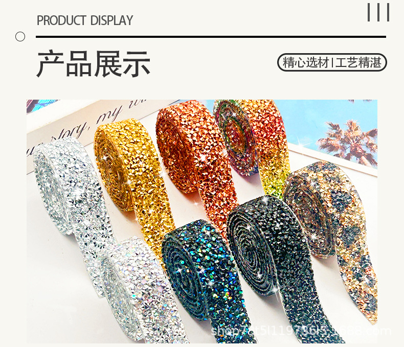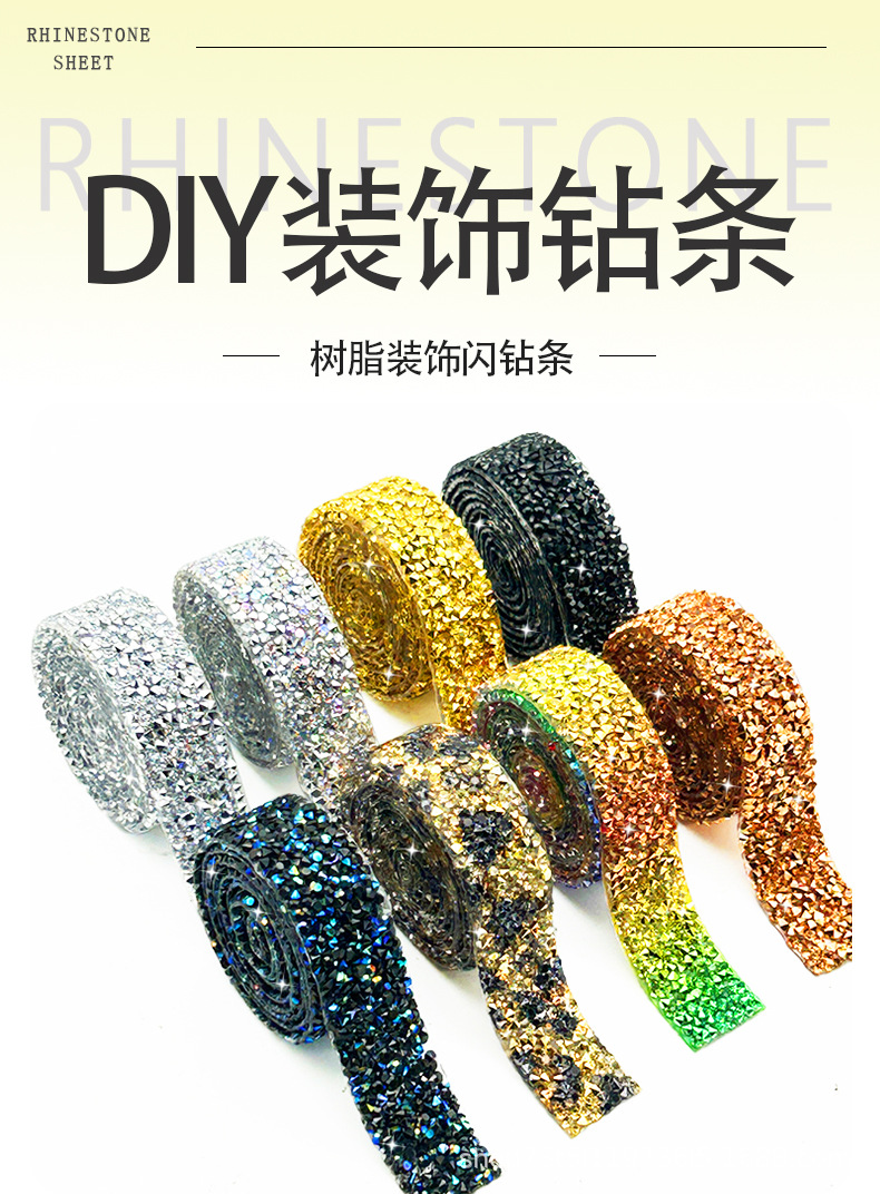Mayorista colorido barra de diamante sombrero decoración taladro correa de adhesivos de fusión en caliente accesorios de joyería diamante colorido
