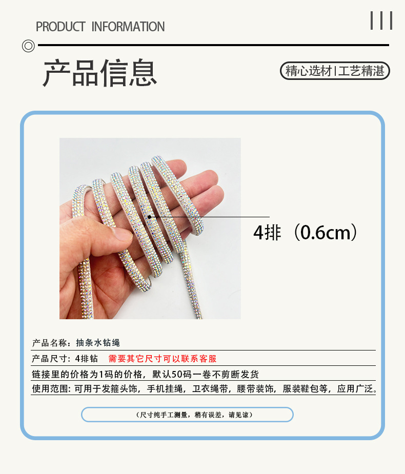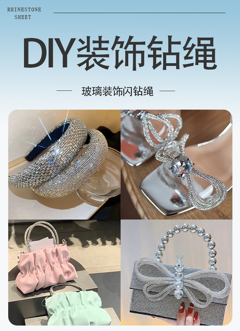 Correa de diamantes cuerda de diamantes accesorios de joyería de bricolaje tira de cordón decoración de lazo cordón accesorios de ropa diamantes de imitación en caliente núcleo de algodón