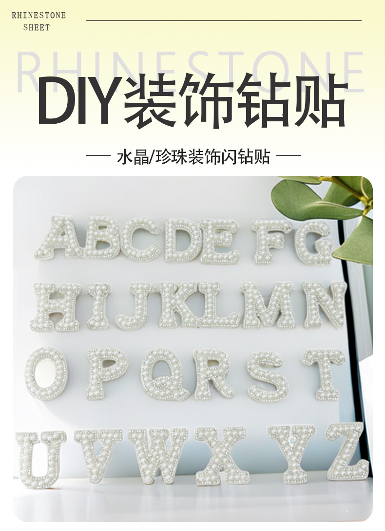 Granel 26 letras inglesas de perlas de diamante pegatinas de patrón de letras pegatinas de tela no tejida pegatinas diy accesorios de joyería pegatinas de perforación
