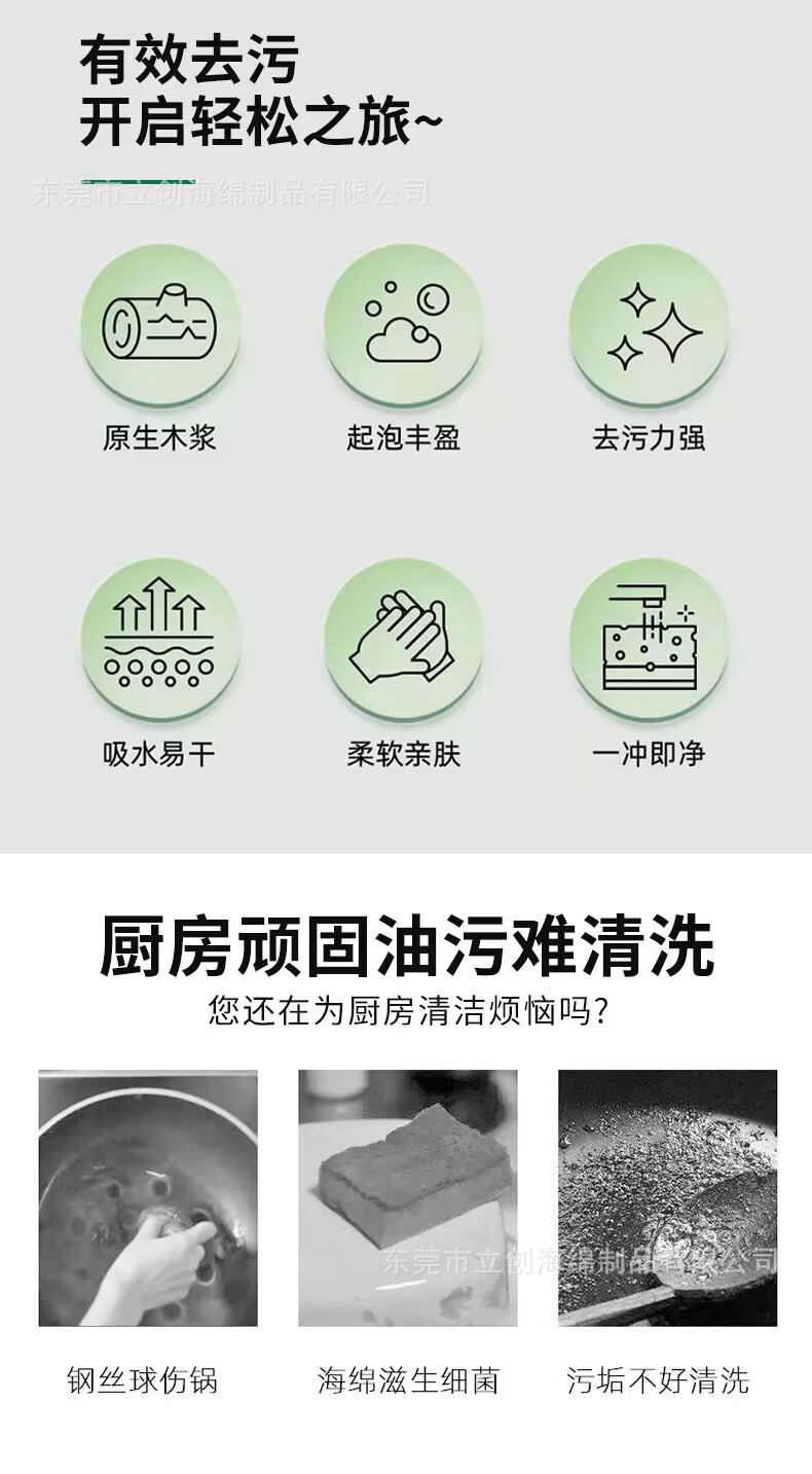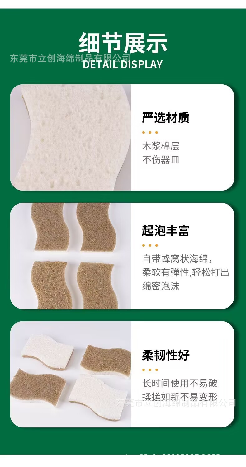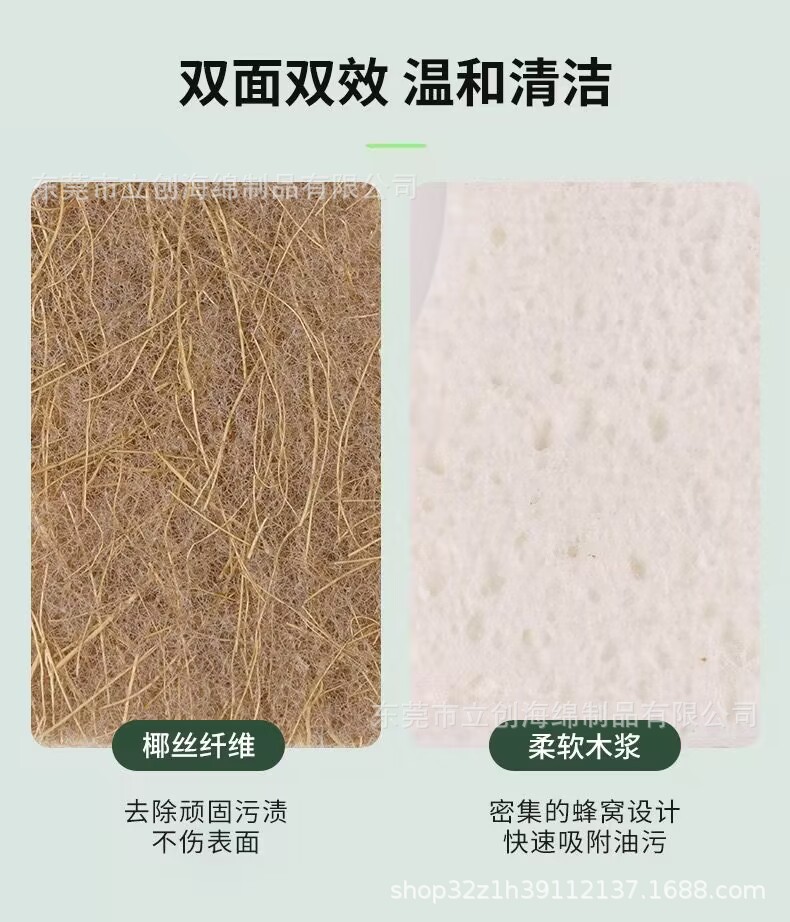Pulpa de madera de palma de coco biodegradable natural, limpieza de algodón, cocina doméstica, cepillo, artefacto, limpieza compuesta de doble cara, bloque de esponja para lavar platos