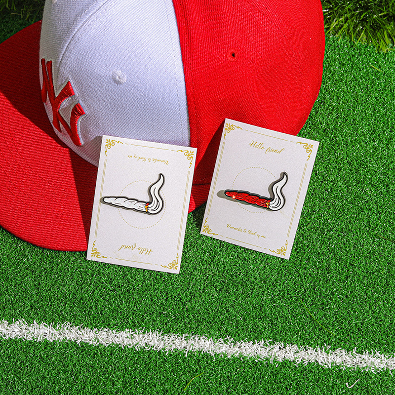Amazon creativo minimalista dibujos animados cigarro forma insignia personalidad gorra de golf gorra de béisbol accesorios de cigarrillos insignia de gorra
