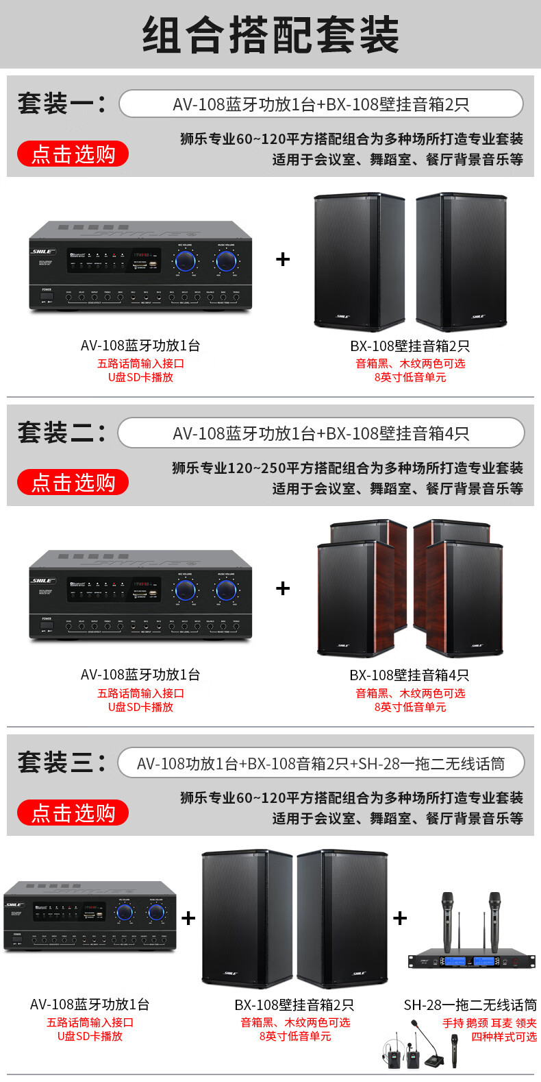 Lion Music AV108BX108 sala de conferencias conjunto de combinación de audio entrenamiento aula música de fondo equipo del sistema de refuerzo de sonido