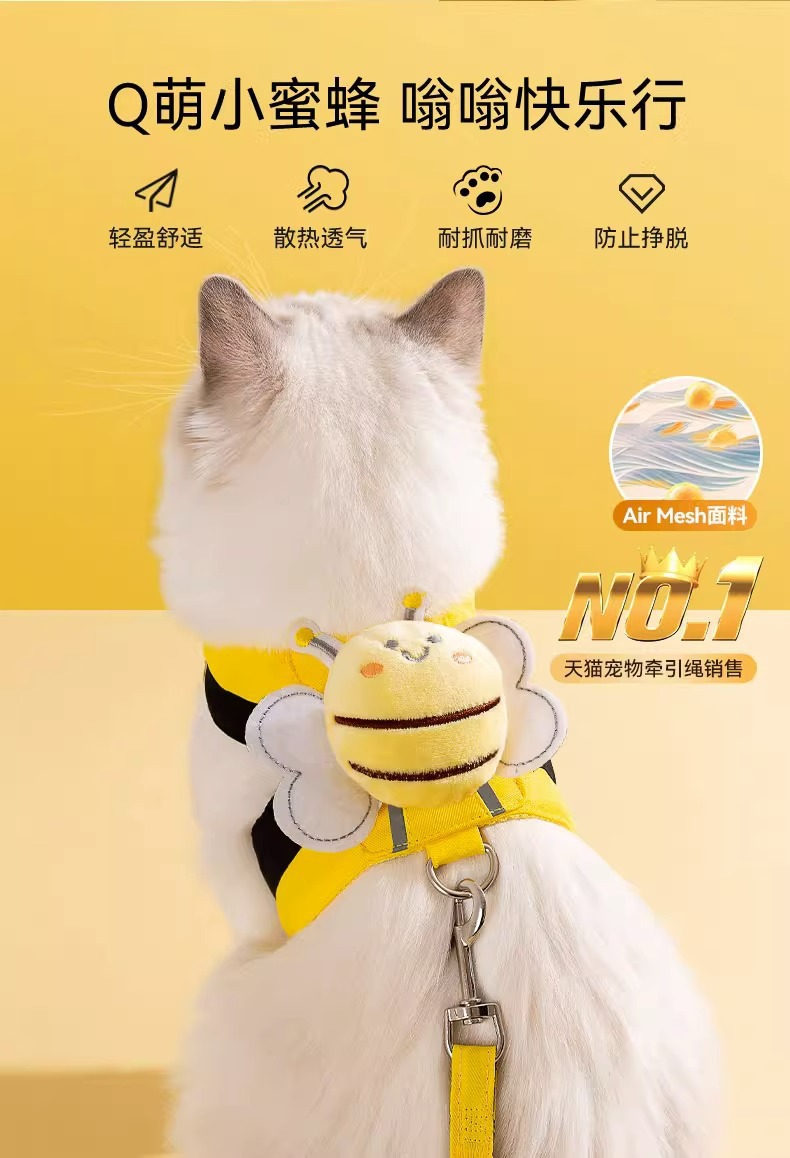 Cuerda de tracción para gatos, abejita, dibujos animados, anti-liberación, cuerda para caminar para gatos, correa para el pecho para perros, cuerda para mascotas, cadena para pasear perros