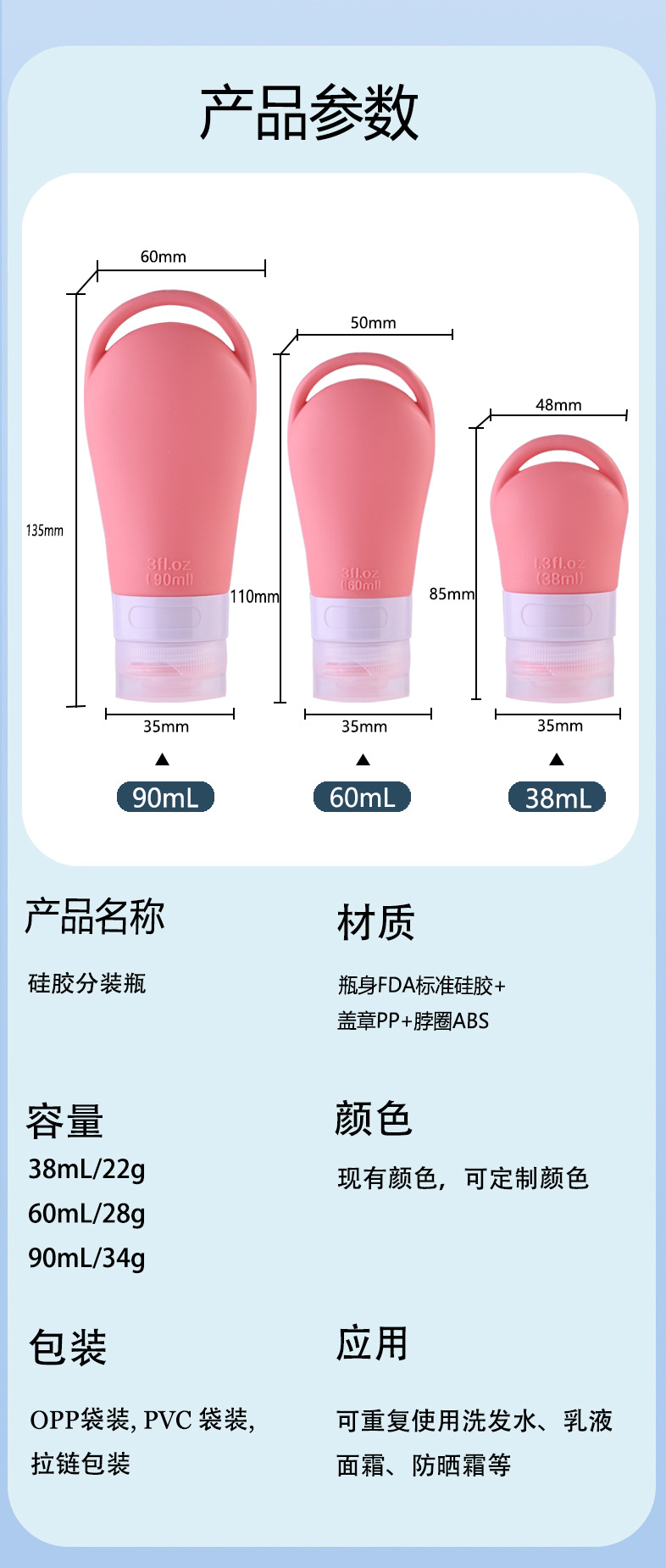 Botella de subenvasada de silicona especial transfronteriza, champú reutilizable, gel de ducha, botella portátil, botella de subenvasada a prueba de fugas al por mayor
