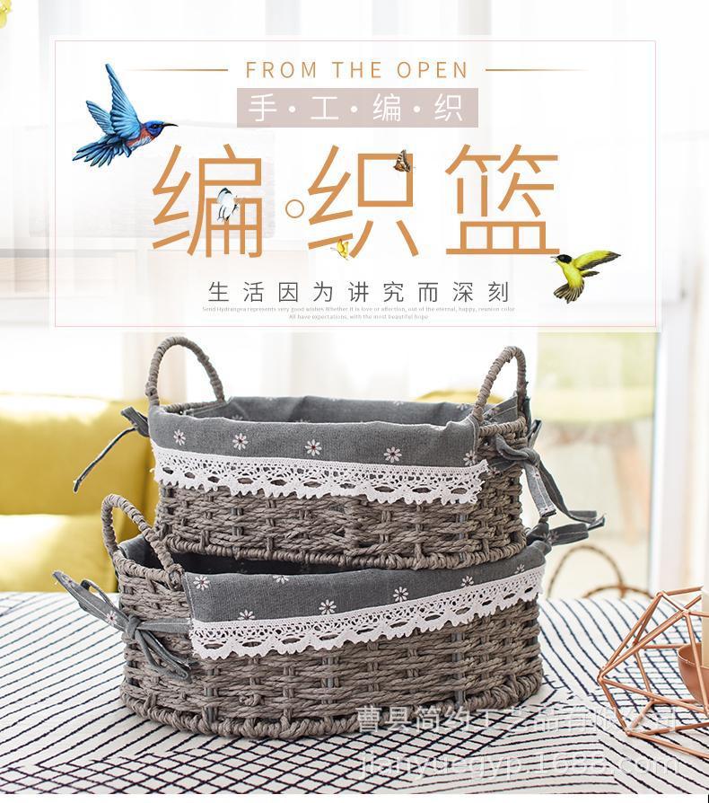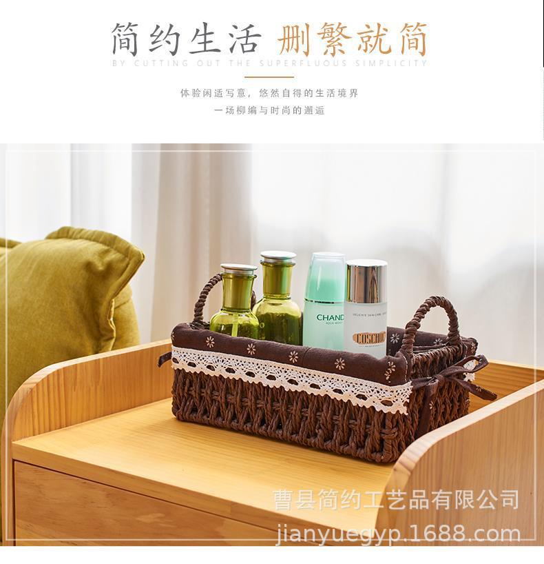 Cesta de almacenamiento tejido de escritorio organización cesta sundries merienda almacenamiento cesta juguete cosméticos almacenamiento cesta tela clave caja